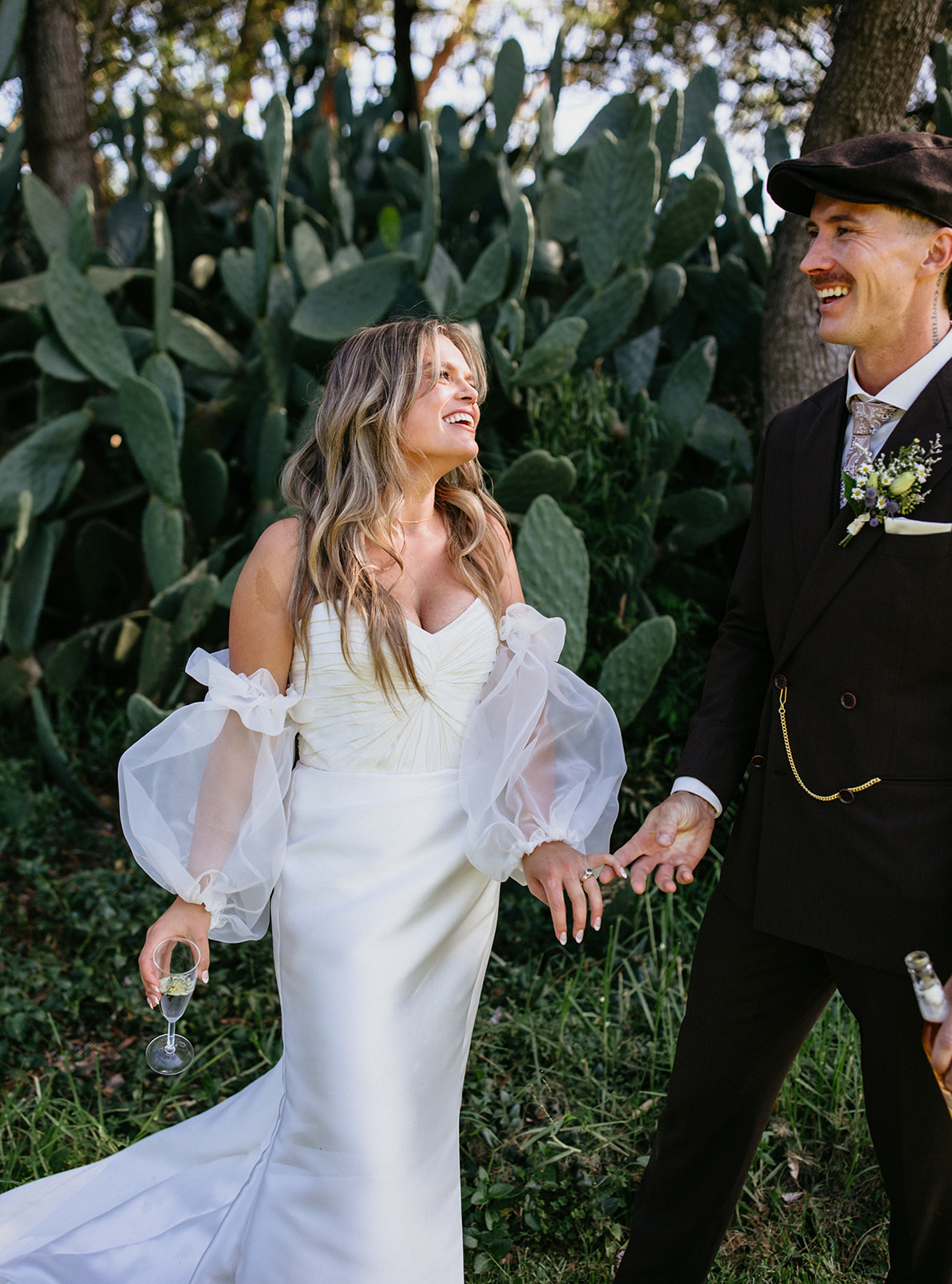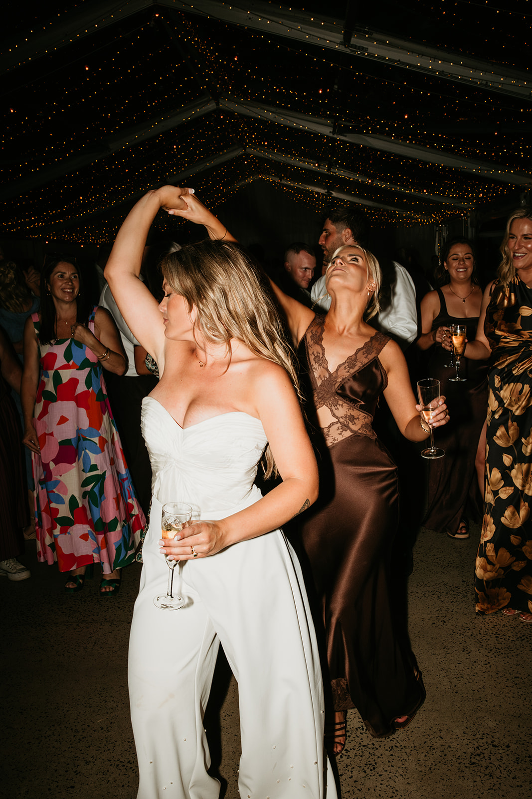Along with vintage-esque inspo, you’ll spy lots of Hello May favourites in Link and Nadine’s day. Like Bec + Bridge, Bared Footwear, legendary Love By Colour Captured behind the camera, and Karen Willis Holmes, who engineered the bride’s custom bodice/skirt combo, and matching pearl-adorned party pants.