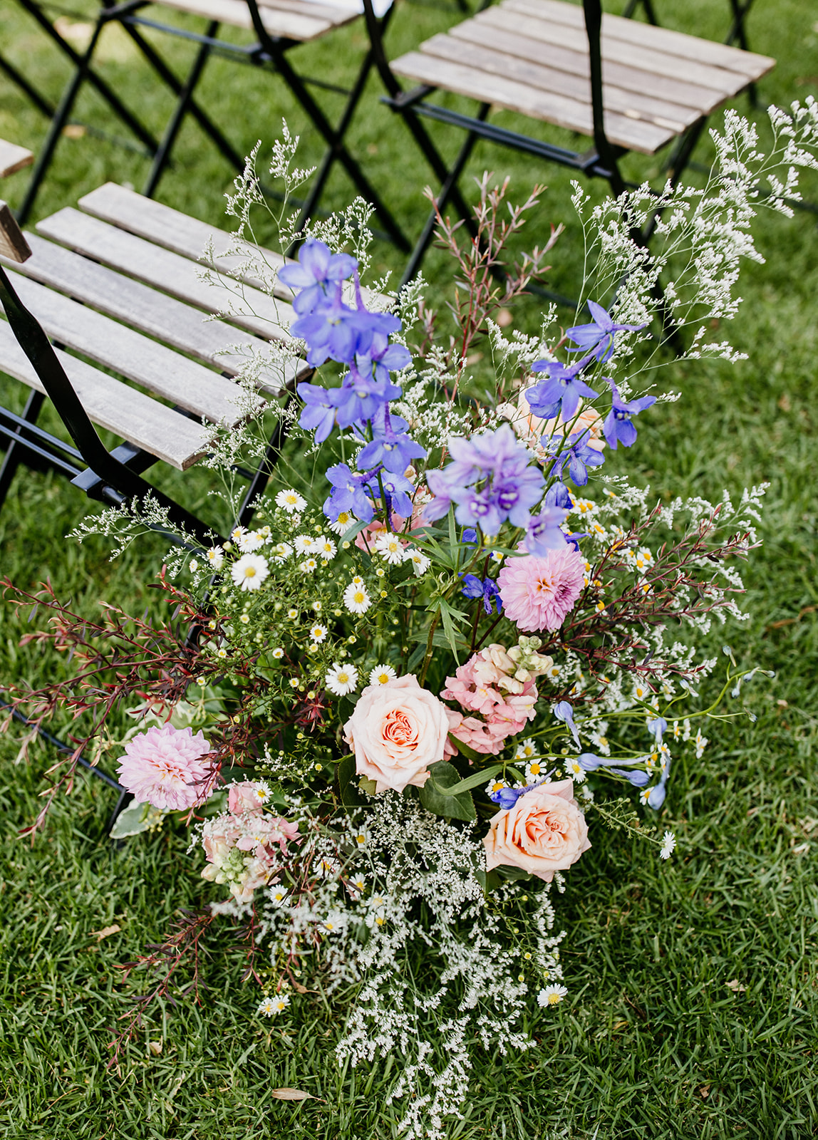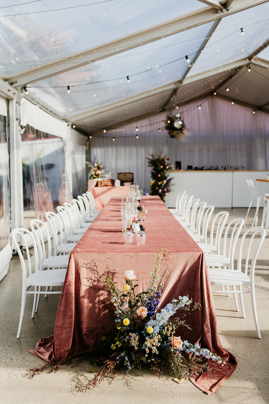 “My favourite detail was definitely the flowers. I wanted it to feel like I was walking down the aisle through a meadow, and it was the most ethereal experience. The colours were bursting like fireworks vibrant, lush, and full of life and they truly brought the whole day to life. I also absolutely loved the table settings. I never would have thought to use blush velvet on a table, and it was completely drool-worthy. Lauren from ETC is a magician; the way she brings everything together is just next level.”
