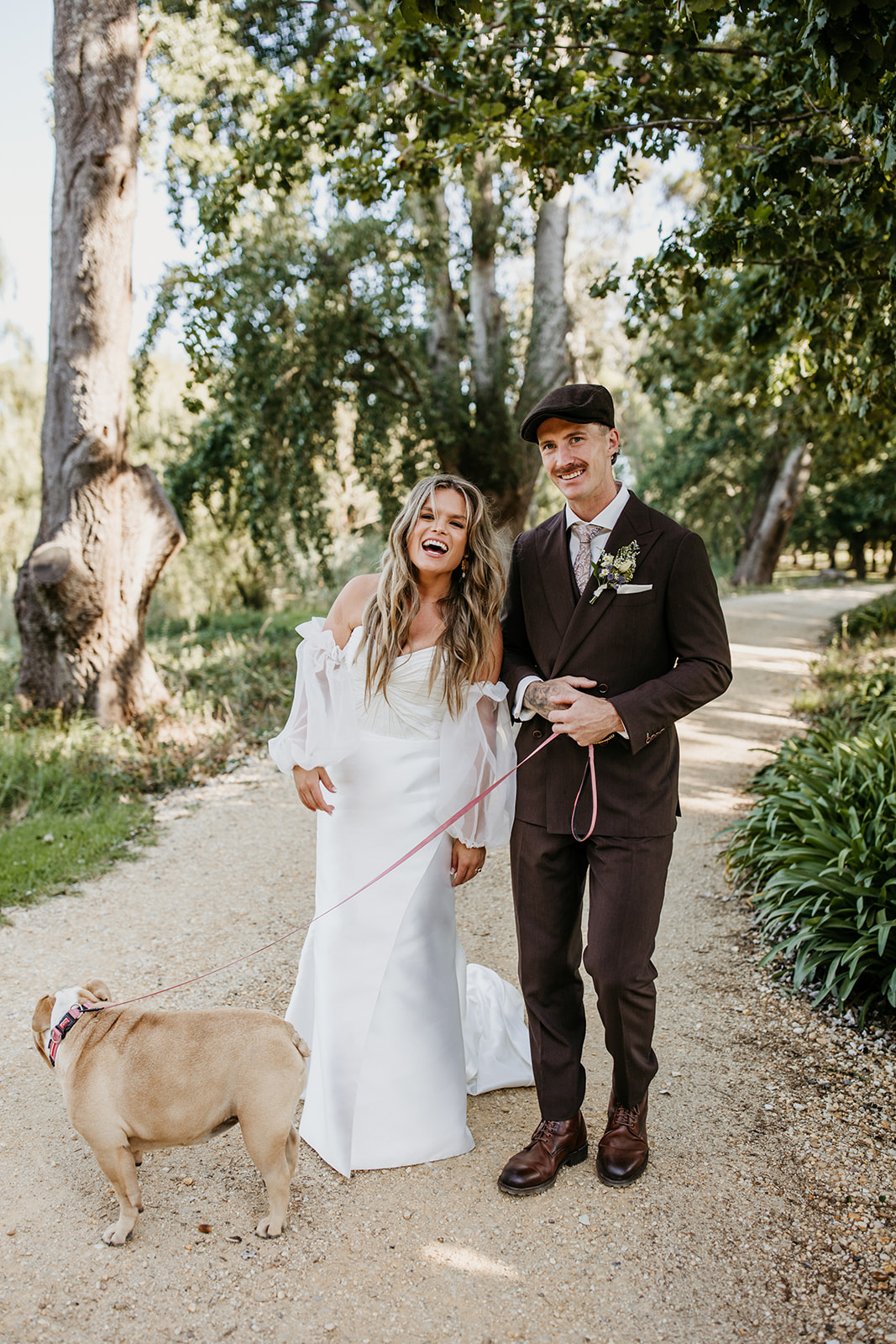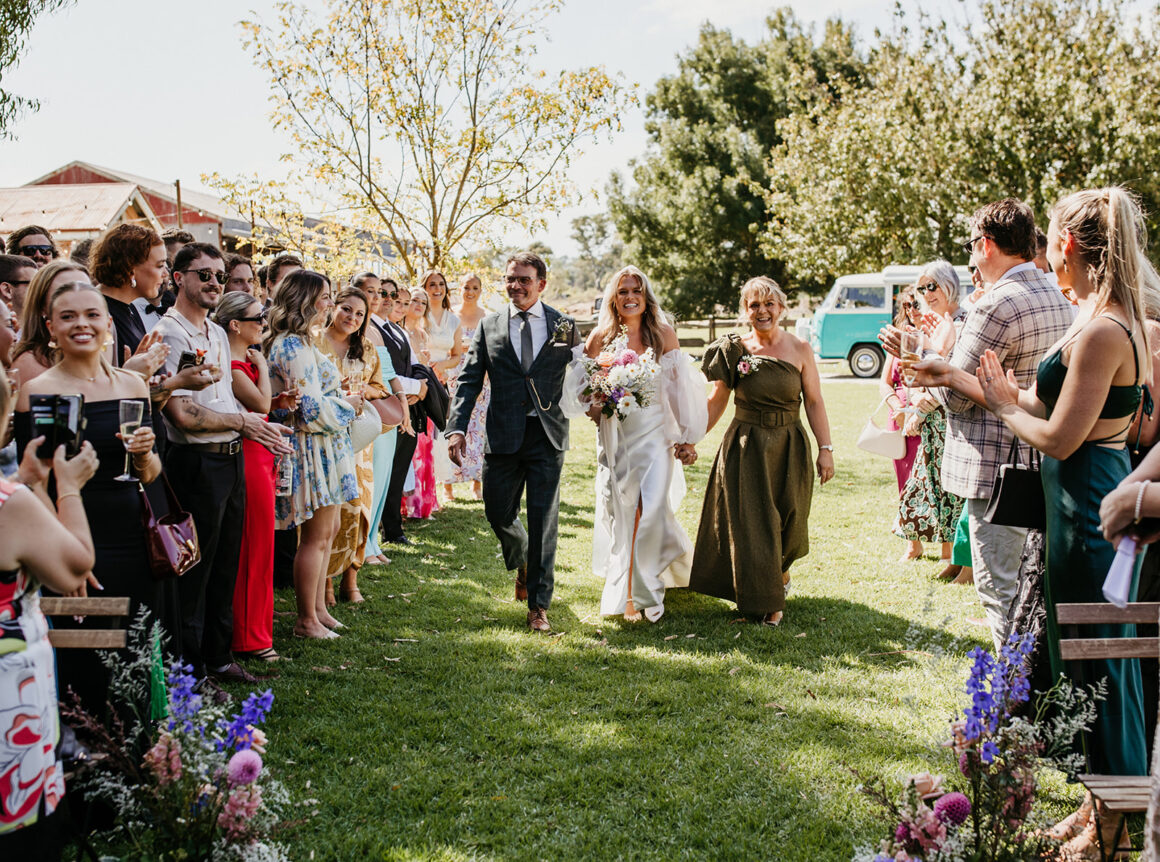 CONTRIBUTING VENDORS Photographer Love By Colour Captured Cinematographer Down The Road Weddings Stylist & Signage ETC. Wedding & Event Styling Florist & Cake Topper Benita Tscharke Floral Ring Box HundredHeartsHome via Etsy Venue Mewburn Park Homestead Catering Duart Events & Catering Cake Maker The Long Paddock Wedding Favours HouseOfWildfloStudio via Etsy Entertainment DJ Nige Celebrant Rachel Prince Rings Jeremy Fleming Jewellers Transport Sale Bus Lines THE BRIDE Bridal Boutique Karen Willis Holmes Veil Bo & Luca Getting Ready BrasNThings Shoes Bared Footwear Accessories Bianc Hair ThePeacock & The Hair Makeup Tara Rose Makeup Fragrance Versace Bridesmaid Dresses Sir the Label, Bec + Bridge Bridesmaid Shoes Jo Mercer THE GROOM Suit & Groomsmen Suits YSG Tailors Tie Next Shoes Rodd & Gunn Pocket Watch & Groomsmen Gifts EternityEngraving via Etsy