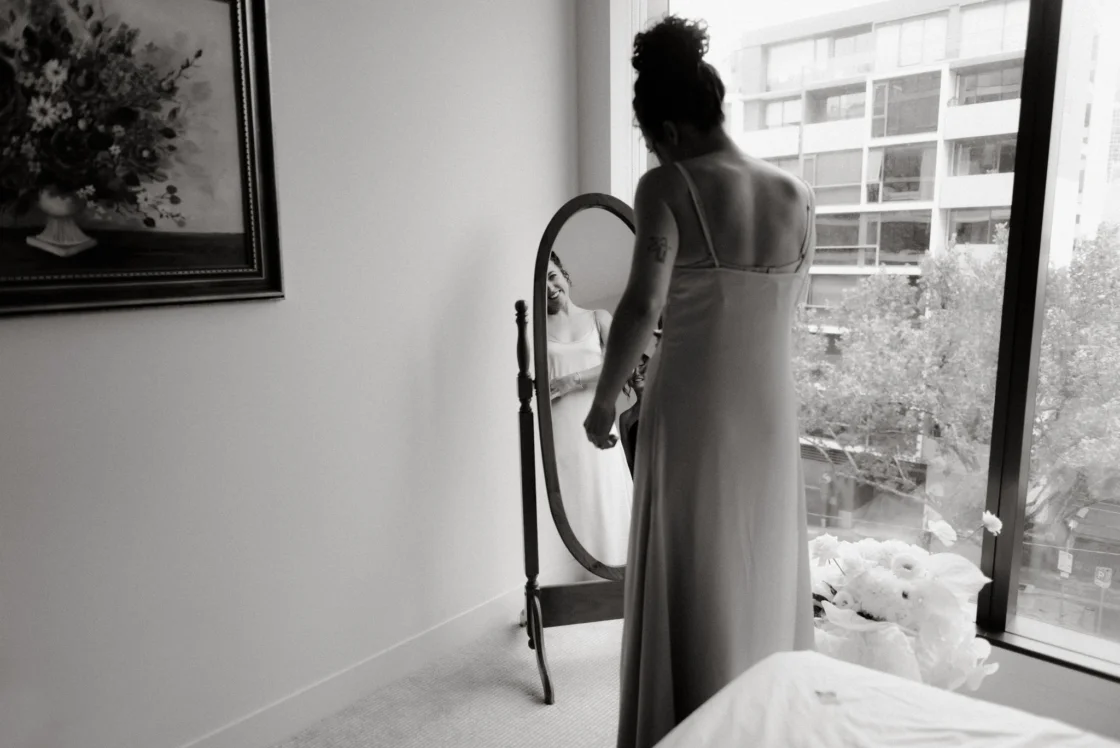 “Nancy got engaged in her 20’s in Amsterdam (age 29 years 364 days)” laughs Chris, proving these two are just as fun as their pictures depict. “We went boating on the canals with close friends followed by a little impromptu party. It ruined her birthday the next day as everyone was too hungover to join. Brilliant.” Fast forward 20 months and they tied the knot in these very cool Melbourne nuptials with florals from Pomp & Splendour and cake from Ladybird Cakes. She Takes Pictures He Makes Films was behind the lens and you can scroll down for all the details now…<