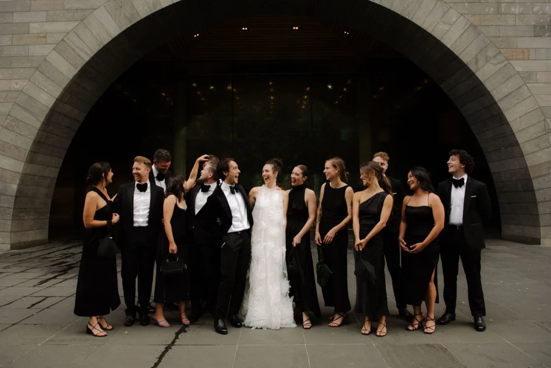 CONTRIBUTING VENDORS Photographer She Takes Pictures He Makes Films Florist Pomp & Splendour Stationery George Saad Printer D&D Letter Press Ceremony Greek Orthodox Community of Melbourne and Victoria (Holy Church of “The Annunciation of Our Lady”) Reception NGV Cake Ladybird Cakes Hire Items Harry the Hirer (Linen) Entertainment Sway (Jazz Ensemble) Photo Booth & DJ Heartbreak Hotel Signage DIY Rings Lott Studio Transport Cassars Limousine Service First Dance Lessons The Next Step Co. THE BRIDE Bridal Gown Viktor & Rolf Bridal Boutique Le Louvre Getting Ready Shirt Uniqlo Shorts Cotton On Shoes Aeyde Accessories Romance Was Born (Ceremony Earrings), Lott Studio (Reception Earrings) Vermeer Studio (Pearl Bracelet and Bridesmaid Earrings) & Sarah & Sebastian Bag DIY (Handmade by bride) Hair & Makeup Mae Taylor Fragrance Le Labo Bridesmaid Dresses Nanushka, Bec + Bridge & Manning Cartell Bridesmaid Shoes Nelson Made & Alias Mae THE GROOM Jacket Gucci Shirt & Pants Joe Black Shoes Thomas George Collection Grooming All The King’s Men Groomsmen Suits Joe Black