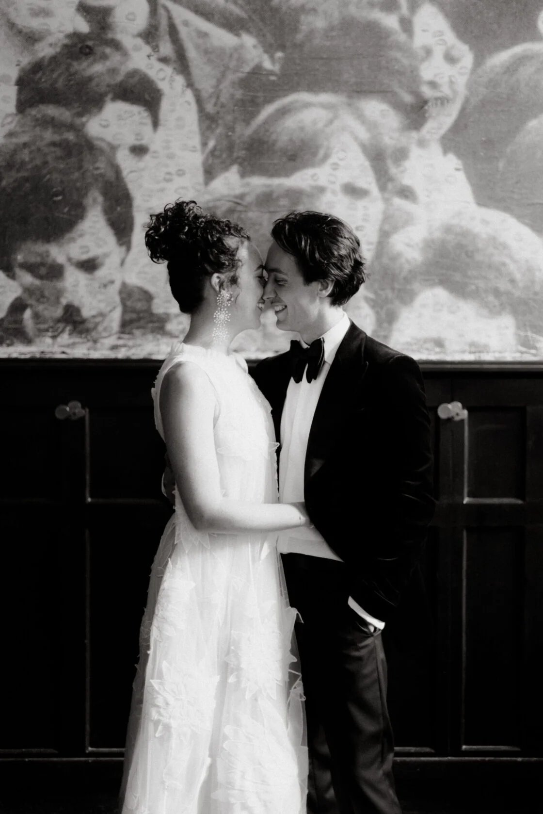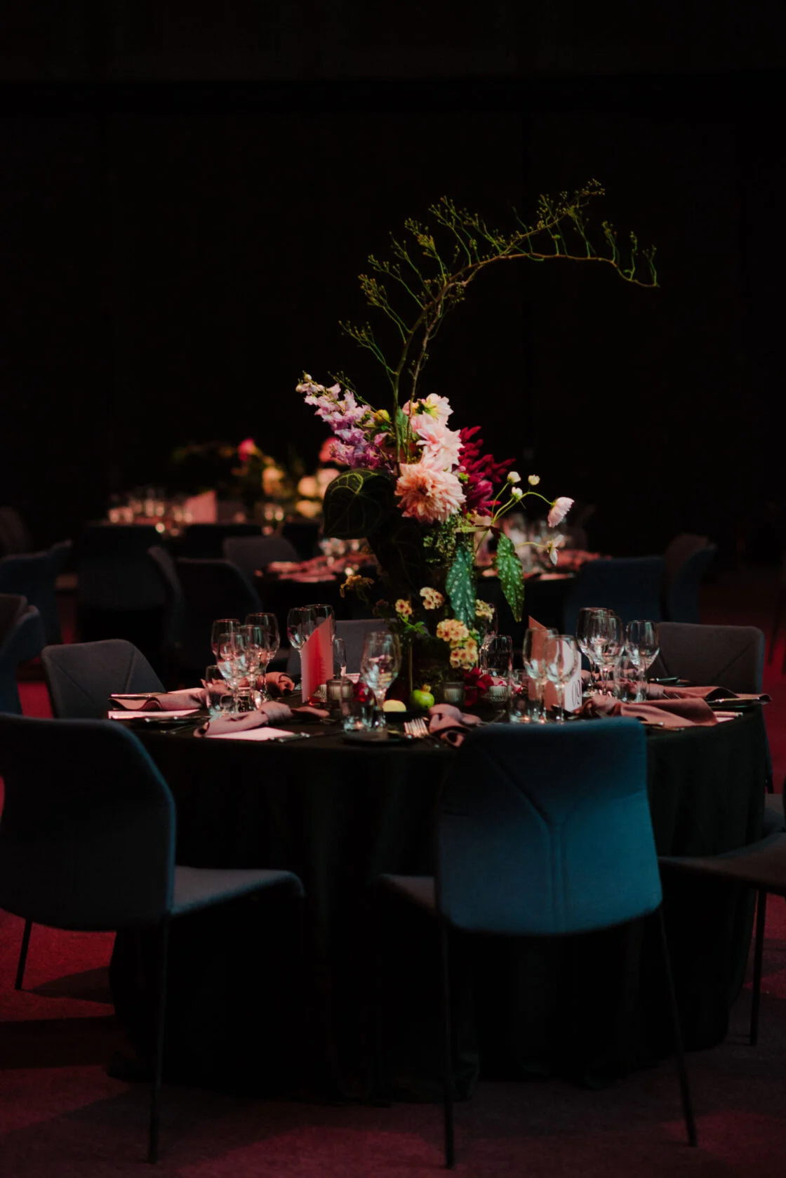 THE INSPO “The stained glass roof and the carpet of the Great Hall (NGV) – I wanted them to sing. Which is why we went with a romantic, moody theme with reference to Renaissance & Dutch still life paintings of Flower art. It was pretty overwhelming seeing the great hall for the first time (flowers, cake, table settings, place cards, napkins), this was something I was dreaming up for 18 months (and rescheduled three times). I didn’t have a stylist making decisions for me, I didn’t have a showroom to see what the table layout would look like, it was all in my head and seeing it come together was incredible.”