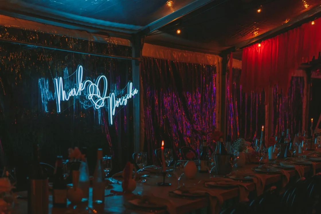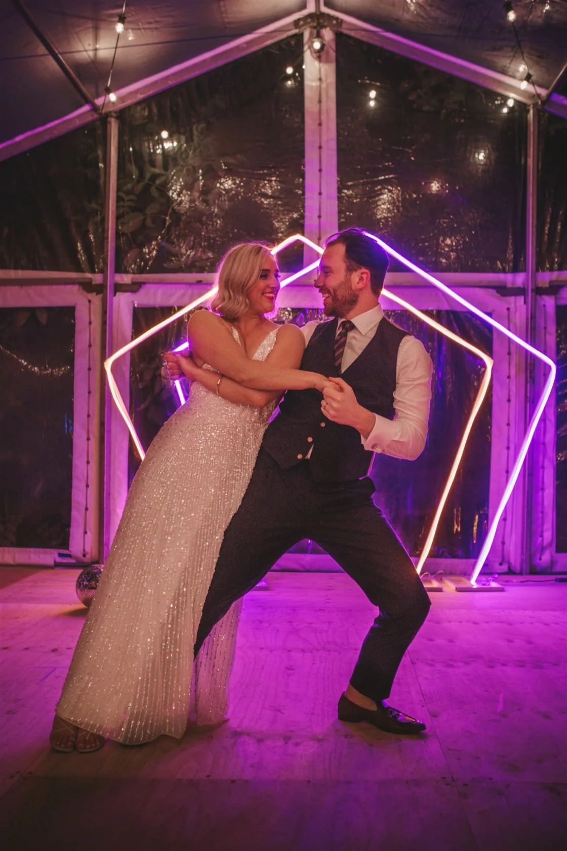 CONTRIBUTING VENDORS Photographer Jessica Clark Photography Florist She Runs Wild Printer VistaPrint Ceremony Stangate House & Garden Reception Comida Food Trucks Olive the Champagne Cart by Vintage Caravan Bar Hire Items, Marquee & Festoon Lighting Festival Hire Signage Hand-Painted DIY & Acrylic Blanks Entertainment, Photo Booth & Sound Hire DJ AK Celebrant Por Vida Rings Sofia Zakia (Bride) Uniform Black (Groom) Transport JC Mini Buses Neon Custom Neon Transport (Neon Arch from Ceremony to Reception) Airtasker Dance Lessons Quicksteps THE BRIDE Bridal Gown & Veil Couture Love Madness Second Dress ASOS Alterations Chapel Sewing Solutions Jacket Third Form via The Iconic Shoes Song of Style via Revolve Accessories The Jewel Jar UK (Earrings) Hair & Makeup Myst Hair and Beauty Bridesmaid Dresses Shona Joy, Third Form, Hello Molly Bridesmaid Shoes SPURR via The Iconic Bridesmaid Earrings AJE THE GROOM Suit & Shirt InStitchu Bow Tie OTAA Cufflinks Sudlow Jewellery via Etsy Shoes Aquila via The Iconic Grooming Myst Hair and Beauty Groomsmen Jacket Jack London Groomsmen Tie OTAA Groomsmen Pants & Shoes Own