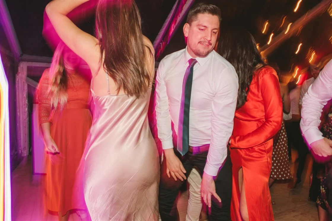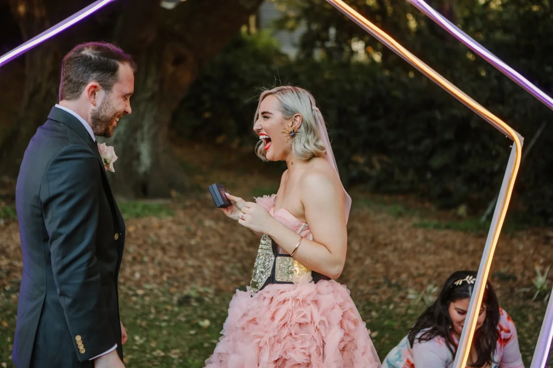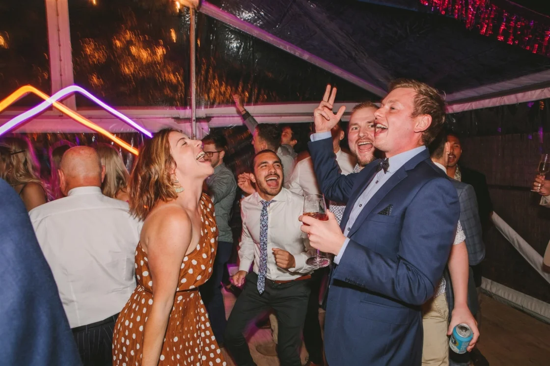 CONTRIBUTING VENDORS Photographer Jessica Clark Photography Florist She Runs Wild Printer VistaPrint Ceremony Stangate House & Garden Reception Comida Food Trucks Olive the Champagne Cart by Vintage Caravan Bar Hire Items, Marquee & Festoon Lighting Festival Hire Signage Hand-Painted DIY & Acrylic Blanks Entertainment, Photo Booth & Sound Hire DJ AK Celebrant Por Vida Rings Sofia Zakia (Bride) Uniform Black (Groom) Transport JC Mini Buses Neon Custom Neon Transport (Neon Arch from Ceremony to Reception) Airtasker Dance Lessons Quicksteps THE BRIDE Bridal Gown & Veil Couture Love Madness Second Dress ASOS Alterations Chapel Sewing Solutions Jacket Third Form via The Iconic Shoes Song of Style via Revolve Accessories The Jewel Jar UK (Earrings) Hair & Makeup Myst Hair and Beauty Bridesmaid Dresses Shona Joy, Third Form, Hello Molly Bridesmaid Shoes SPURR via The Iconic Bridesmaid Earrings AJE THE GROOM Suit & Shirt InStitchu Bow Tie OTAA Cufflinks Sudlow Jewellery via Etsy Shoes Aquila via The Iconic Grooming Myst Hair and Beauty Groomsmen Jacket Jack London Groomsmen Tie OTAA Groomsmen Pants & Shoes Own