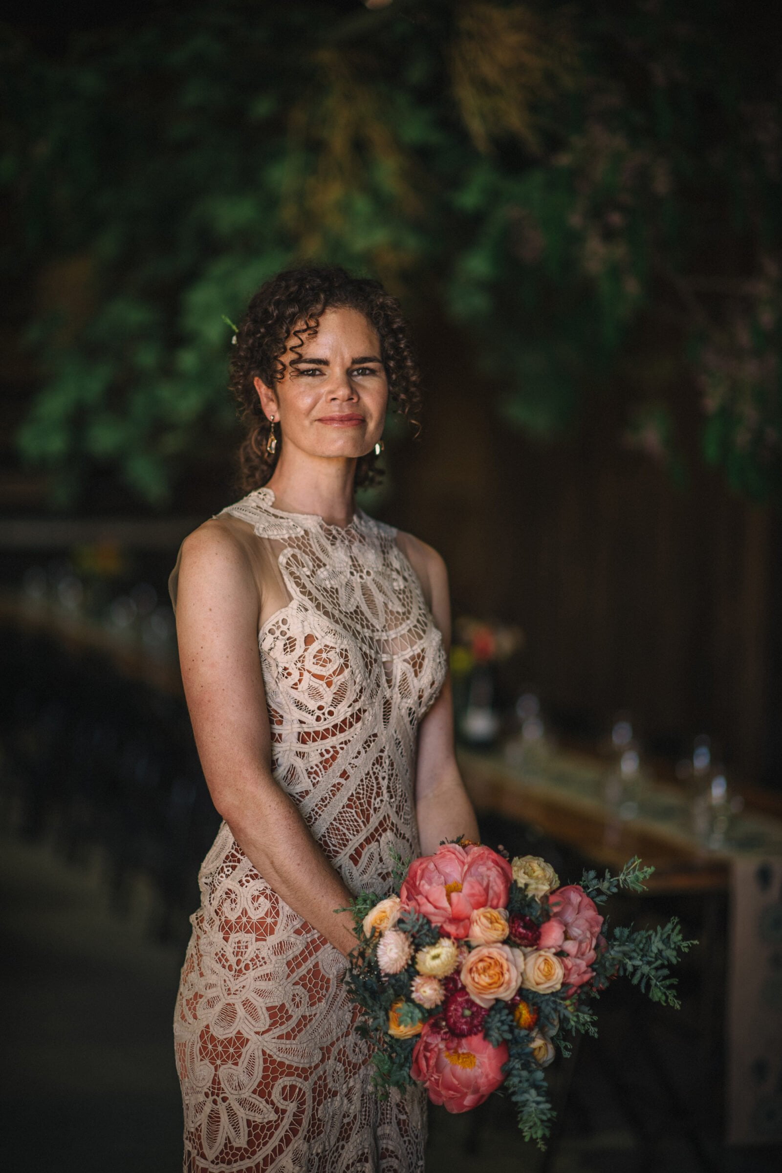 FAVOURITE MOMENT “My favourite moment was just before we walked down the aisle. It was so fun hiding around the back of the farmhouse, spying on all our guests and trying to work out if they were ready for us to appear. I’m glad we decided to be non-traditional and walk down the aisle together.”