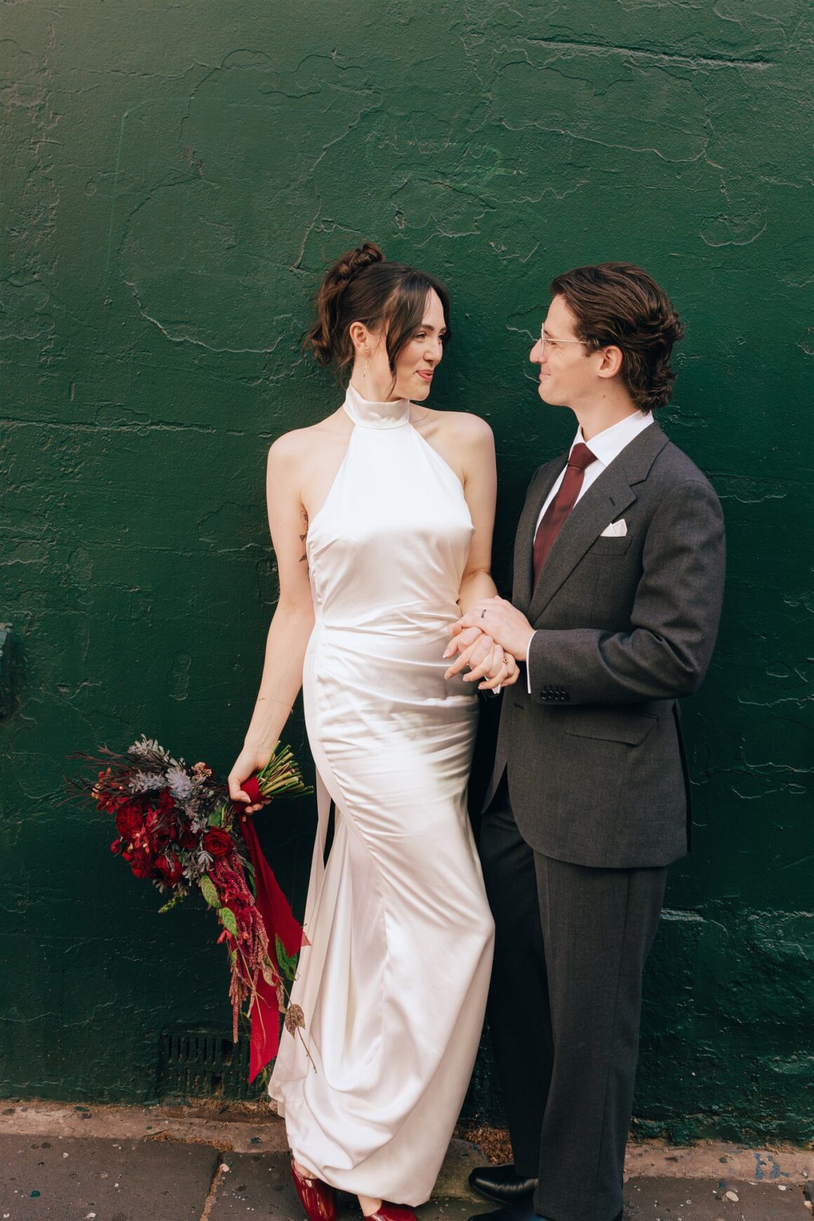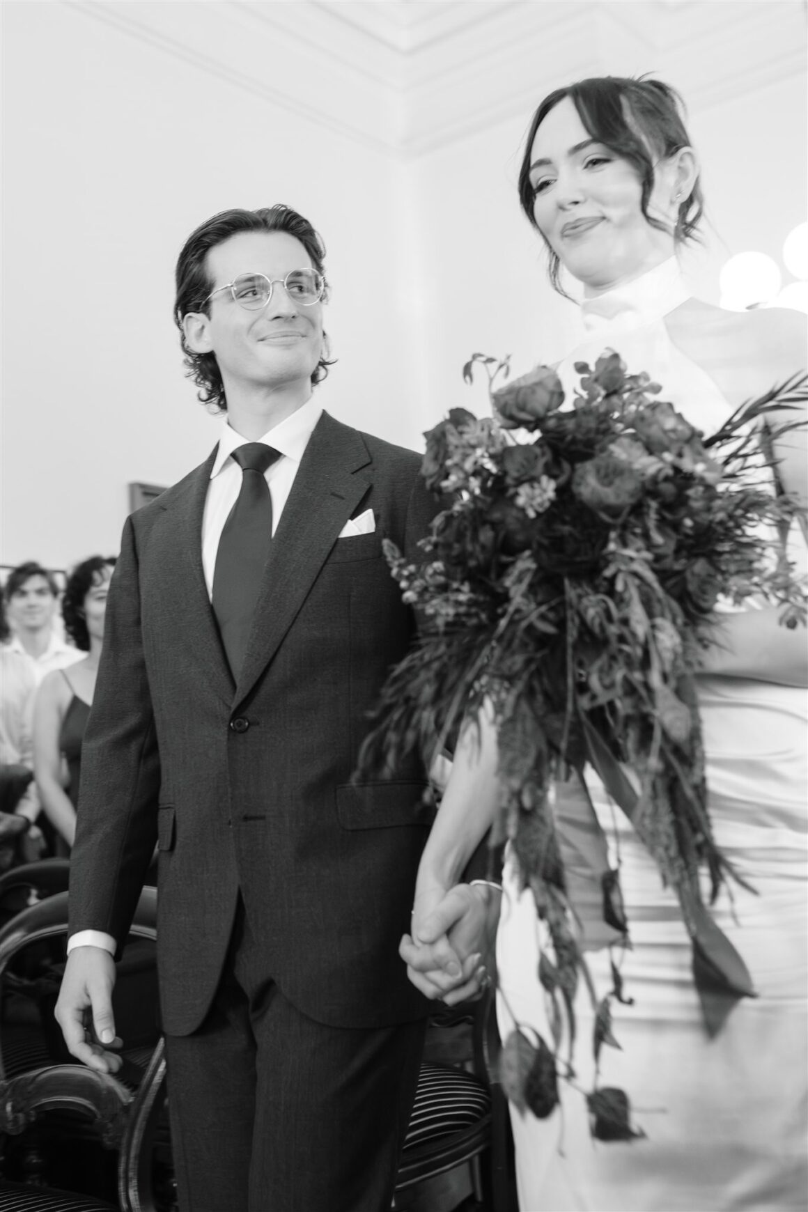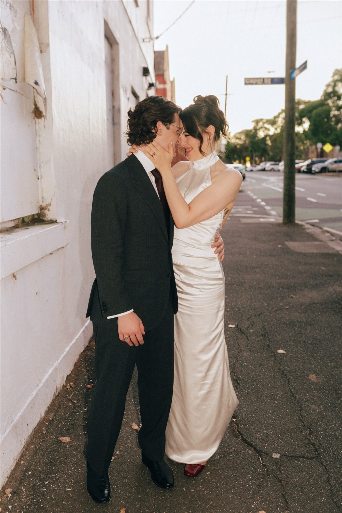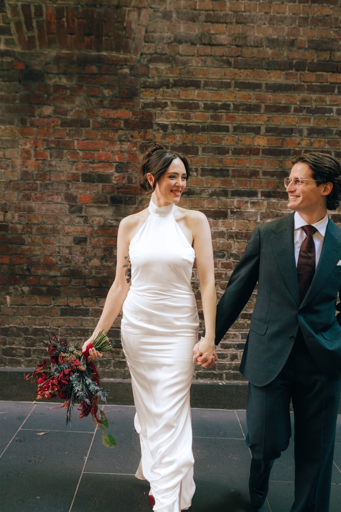 “I think the part of the day that sticks in my mind the most was walking around the city for our couples photos,” adds the groom, who opted for a P. Johnson suit and heirloom cufflinks. In a sentiment shared by many getting married, the groom told us that the lead up to the ceremony had been a blur, but in those moments with Roxanne, (and photographer Georgia Wiggs capturing the candids) everything settled. “Although Georgia was, of course, documenting the whole time, she did a wonderful job of giving us plenty of space while still being present enough to get some fantastic shots.”