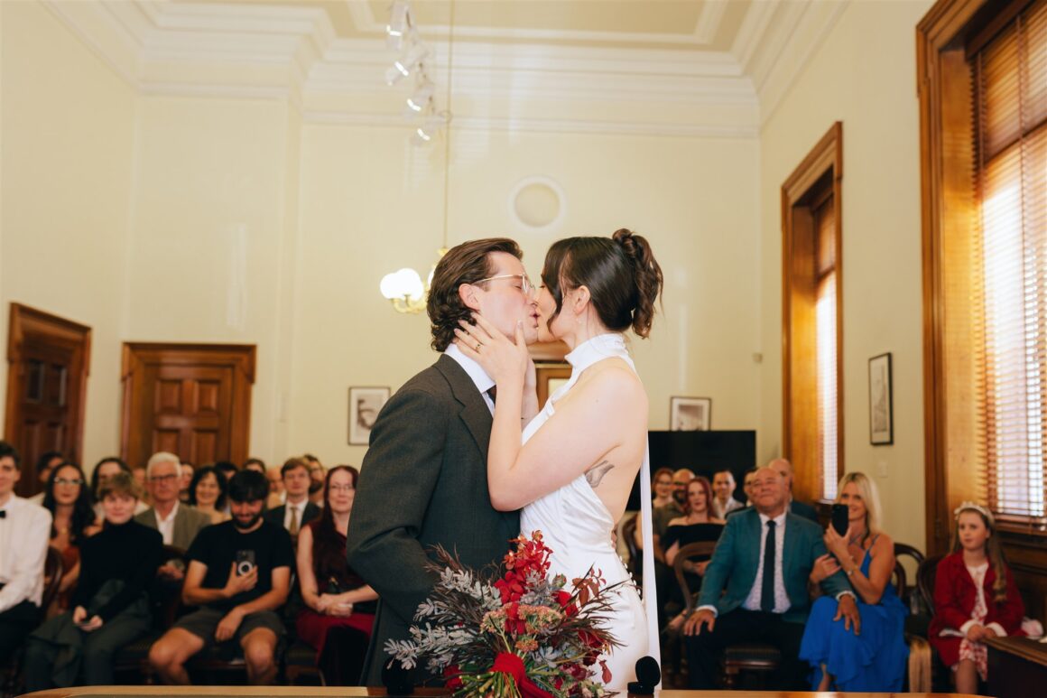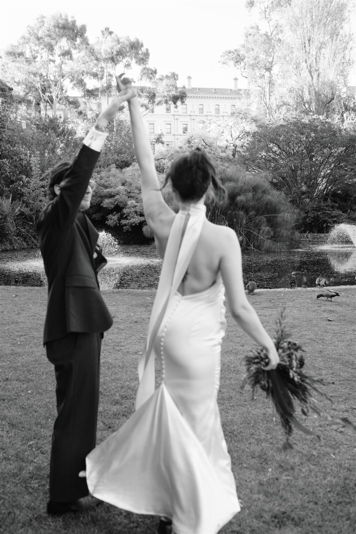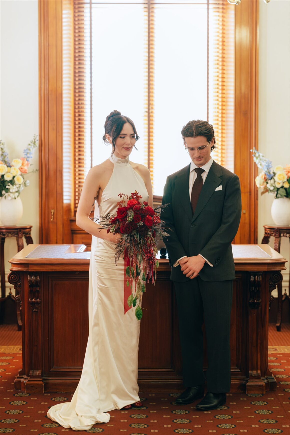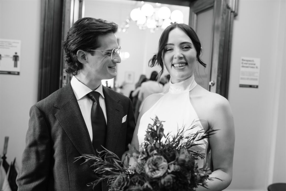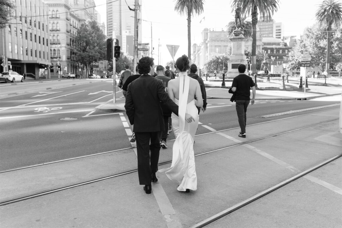 “I think the part of the day that sticks in my mind the most was walking around the city for our couples photos,” adds the groom, who opted for a P. Johnson suit and heirloom cufflinks. In a sentiment shared by many getting married, the groom told us that the lead up to the ceremony had been a blur, but in those moments with Roxanne, (and photographer Georgia Wiggs capturing the candids) everything settled. “Although Georgia was, of course, documenting the whole time, she did a wonderful job of giving us plenty of space while still being present enough to get some fantastic shots.”
