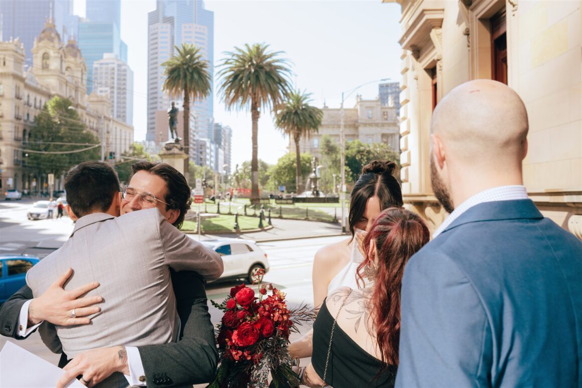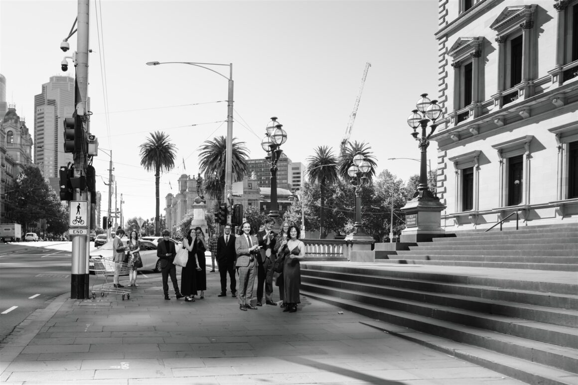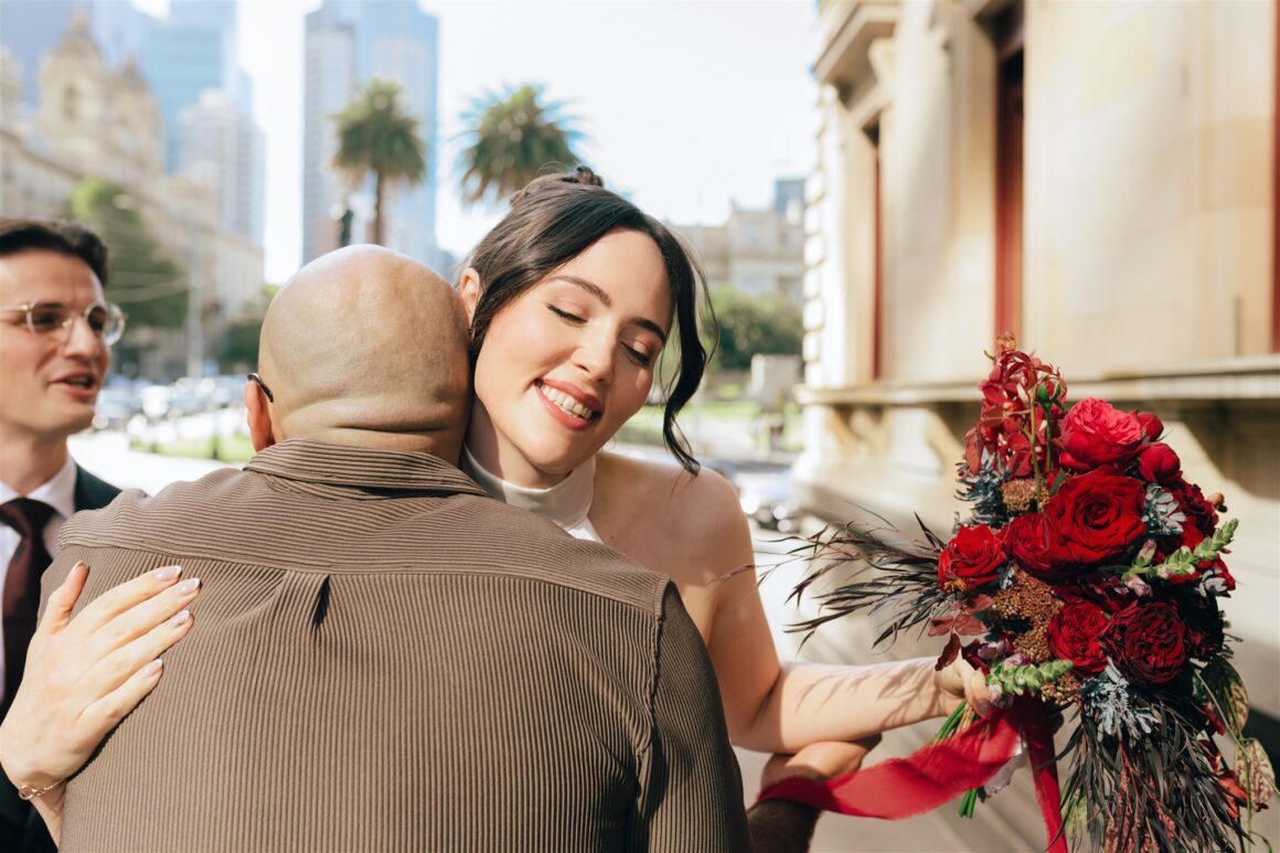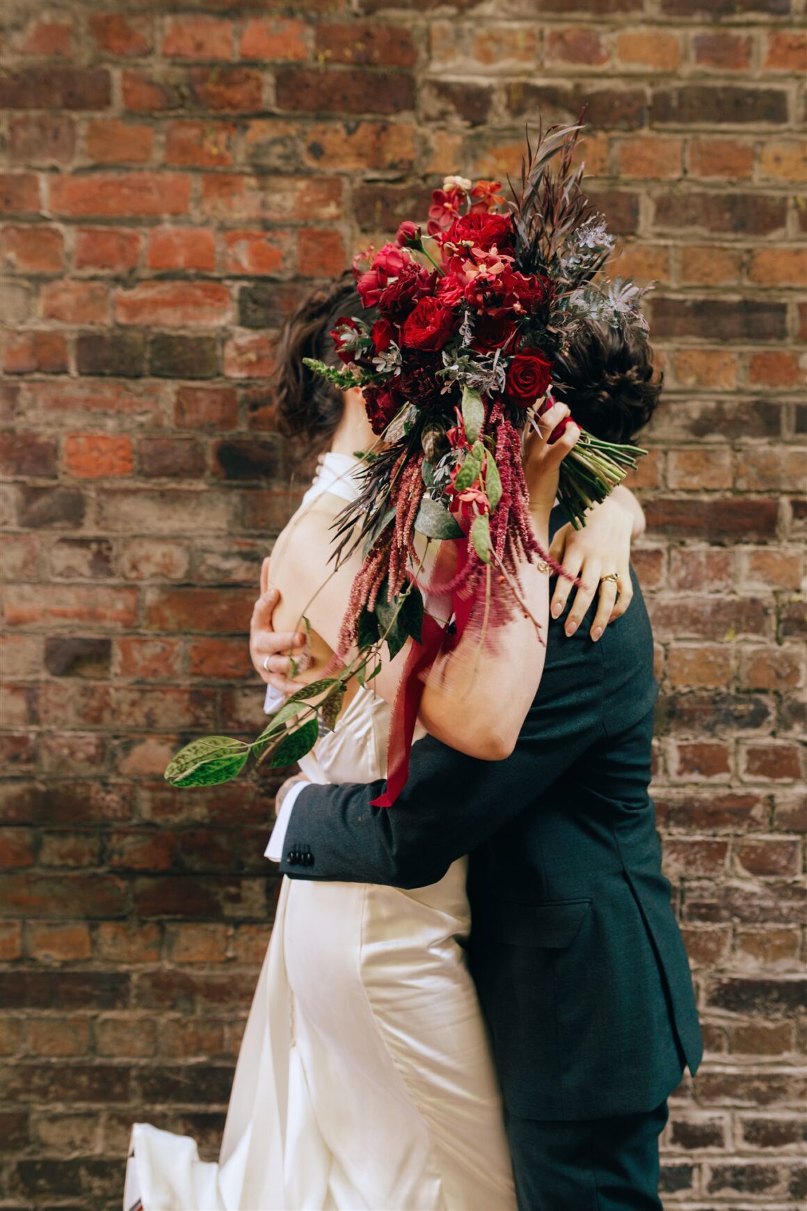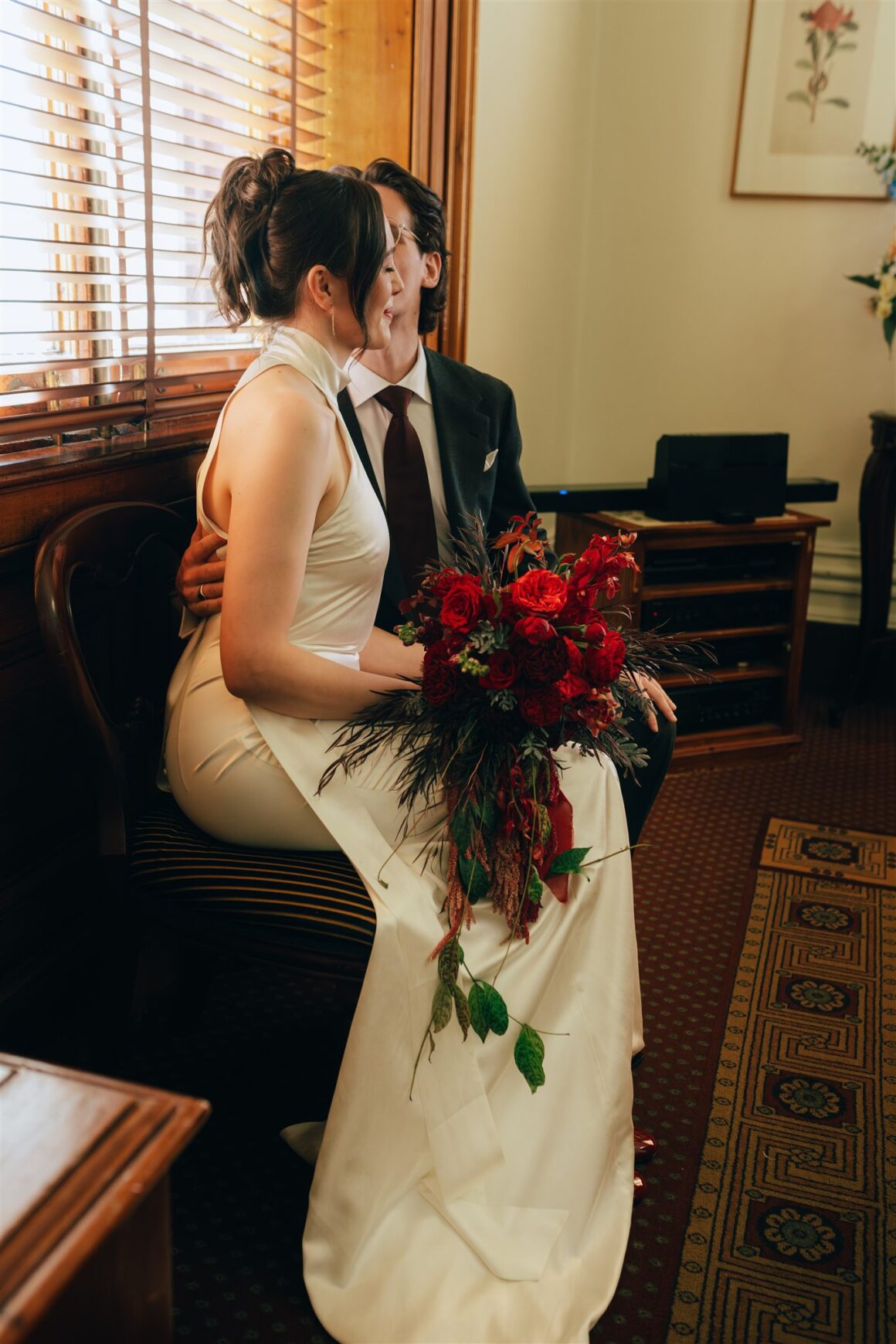“I think the part of the day that sticks in my mind the most was walking around the city for our couples photos,” adds the groom, who opted for a P. Johnson suit and heirloom cufflinks. In a sentiment shared by many getting married, the groom told us that the lead up to the ceremony had been a blur, but in those moments with Roxanne, (and photographer Georgia Wiggs capturing the candids) everything settled. “Although Georgia was, of course, documenting the whole time, she did a wonderful job of giving us plenty of space while still being present enough to get some fantastic shots.”
