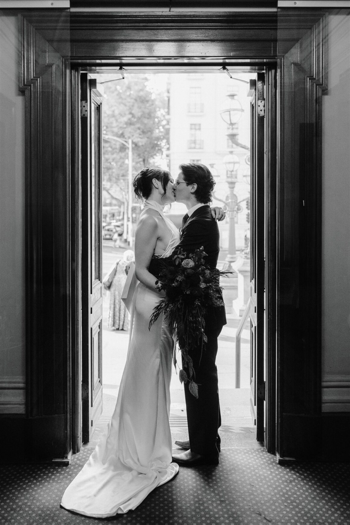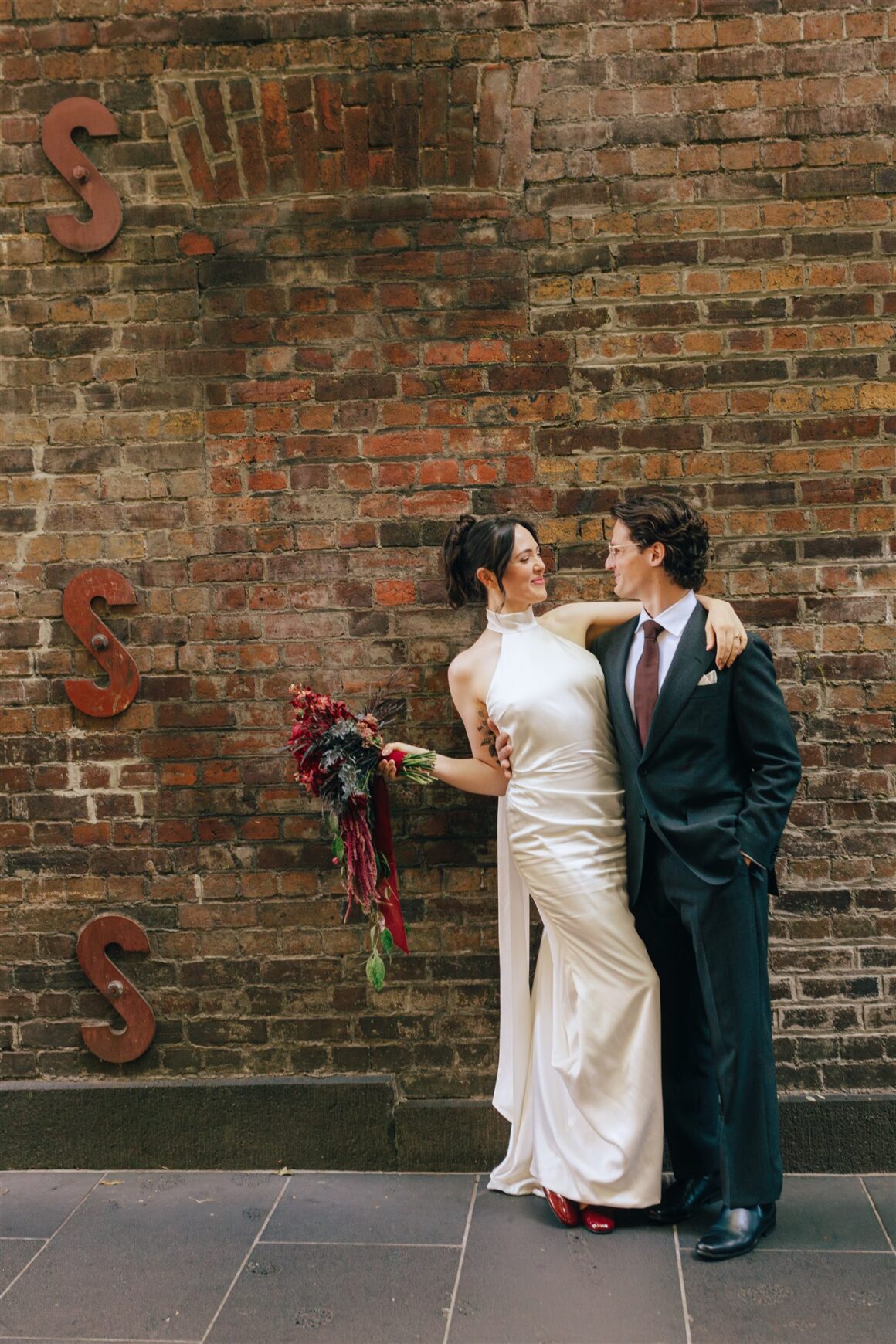 This couple’a cool cats, Roxanne and Alexander, got hitched in Melbourne with a celebration that was aesthetically dark, moody, romantic and fun – all rolled up in one. The local registry office was where the official bits took place and reception followed at Bobbie Peels (the first wedding the space had hosted, and what a banger!)