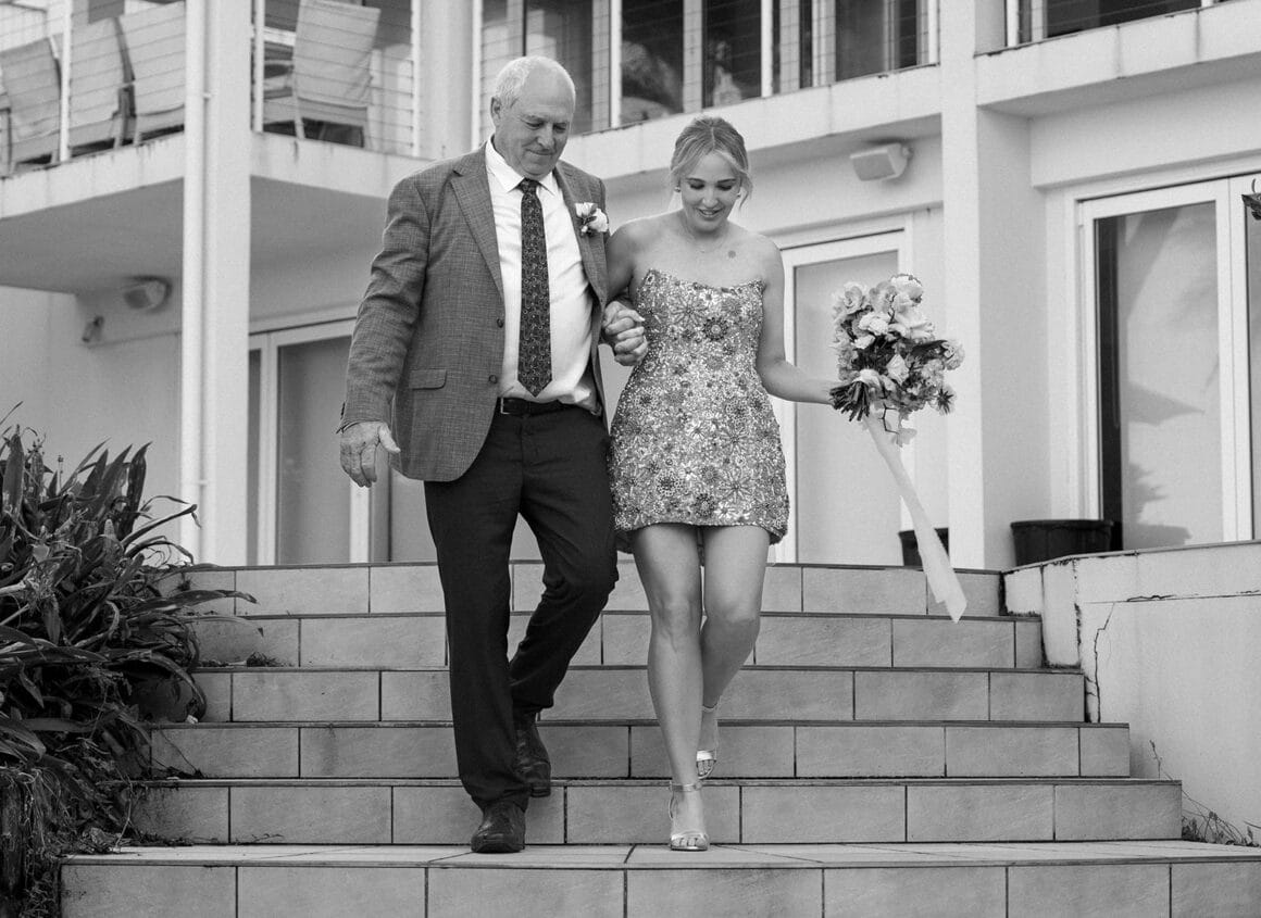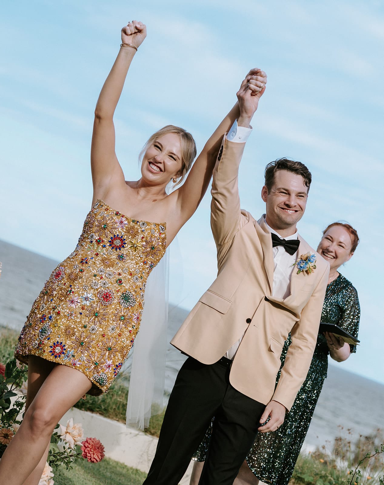 “I knew I wanted a short dress and nothing too traditional. I had seen my Rachel Gilbert dress online and thought it was just such an awesome dress for something special (not necessarily the wedding). It was sold out but I signed up for a restock notification to entertain the idea that one day I could own something so cool. Between a busy day of appointments and meetings I checked my phone to see it had been restocked and I ordered it right then before thinking. The dress arrived and while it was incredible, it was the wrong size so I sadly had to return it. The dress occupied my mind for a while so I went on the hunt and found it in a boutique in Sydney who were so lovely and excited for me to have found it.”