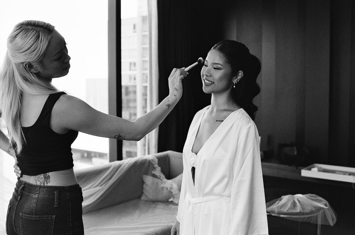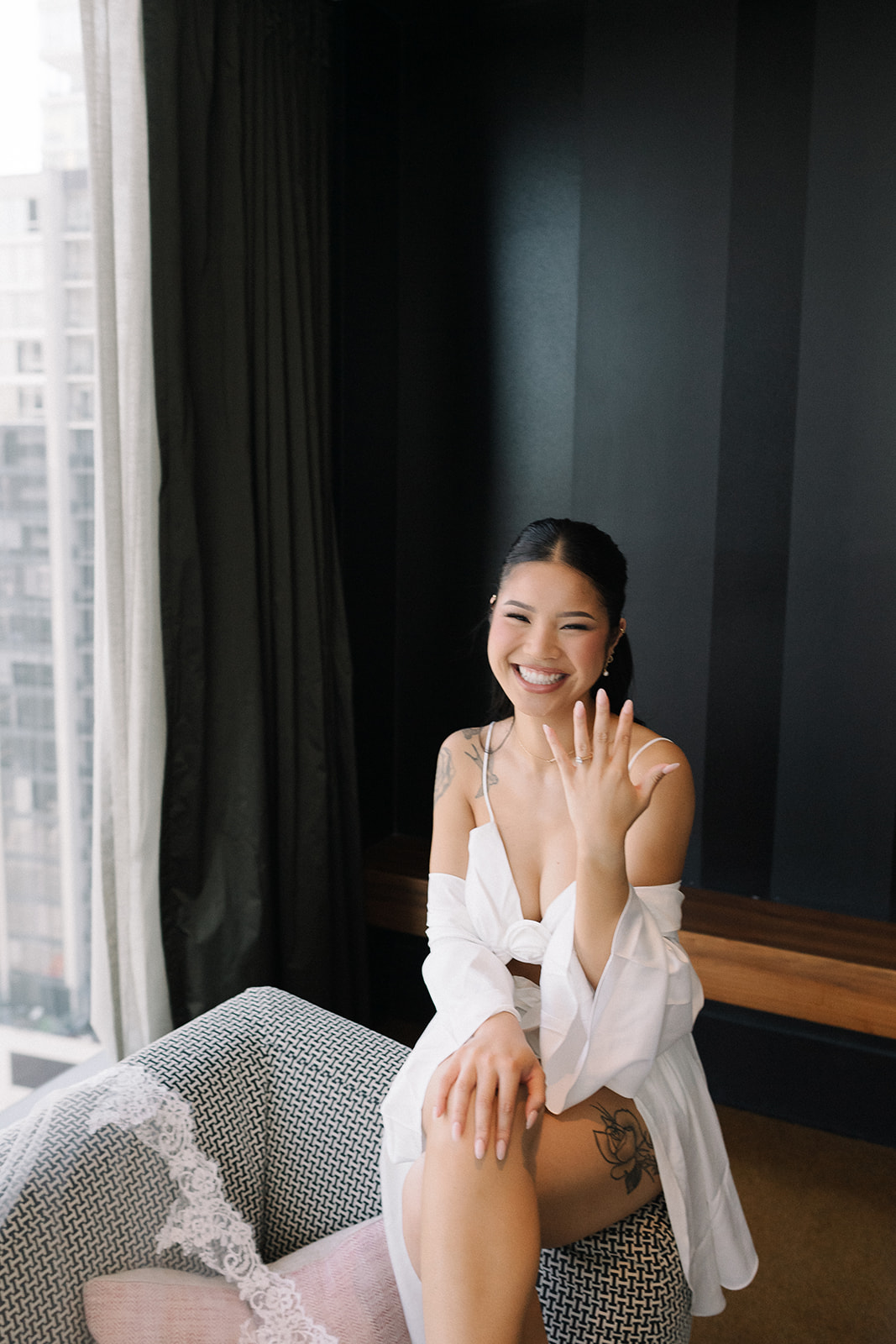 “Figure out your non-negotiables versus the ‘nice-to-haves’ and don’t feel pressured to include things just because they’re traditional. For example, we didn’t have a wedding cake since dessert was already being served, and we didn’t have official bridesmaids or groomsmen. We got ready with our friends, who were a big part of the day, but that structure just wasn’t important to us. Another tip is to balance taking photos with being present with your guests. The day goes by so quickly, so figure out a schedule that allows you to enjoy the moments rather than just ticking things off a list. The best advice is to stay true to who you are as a couple, that’s what will make the day feel special and unique to you.”
