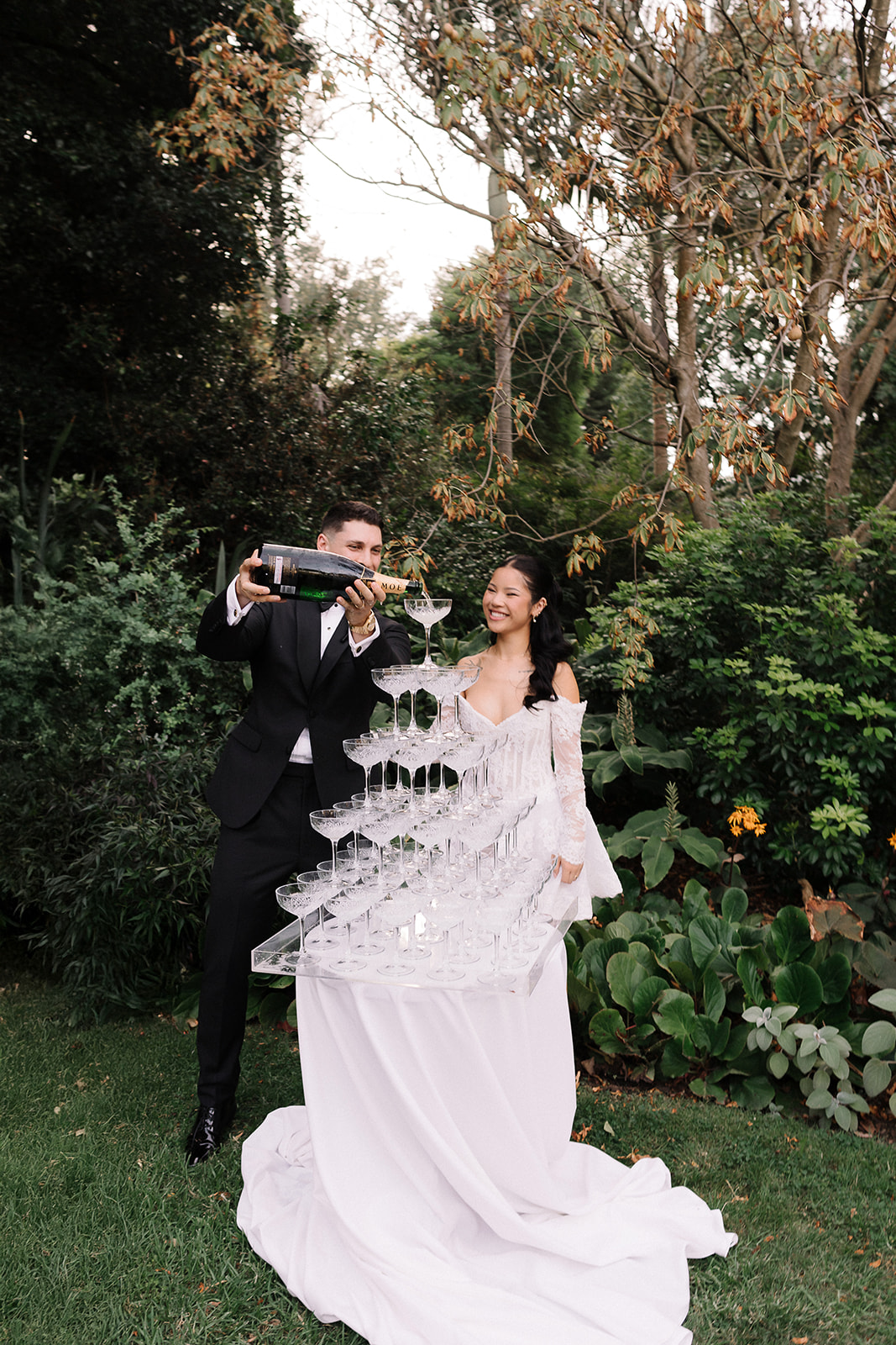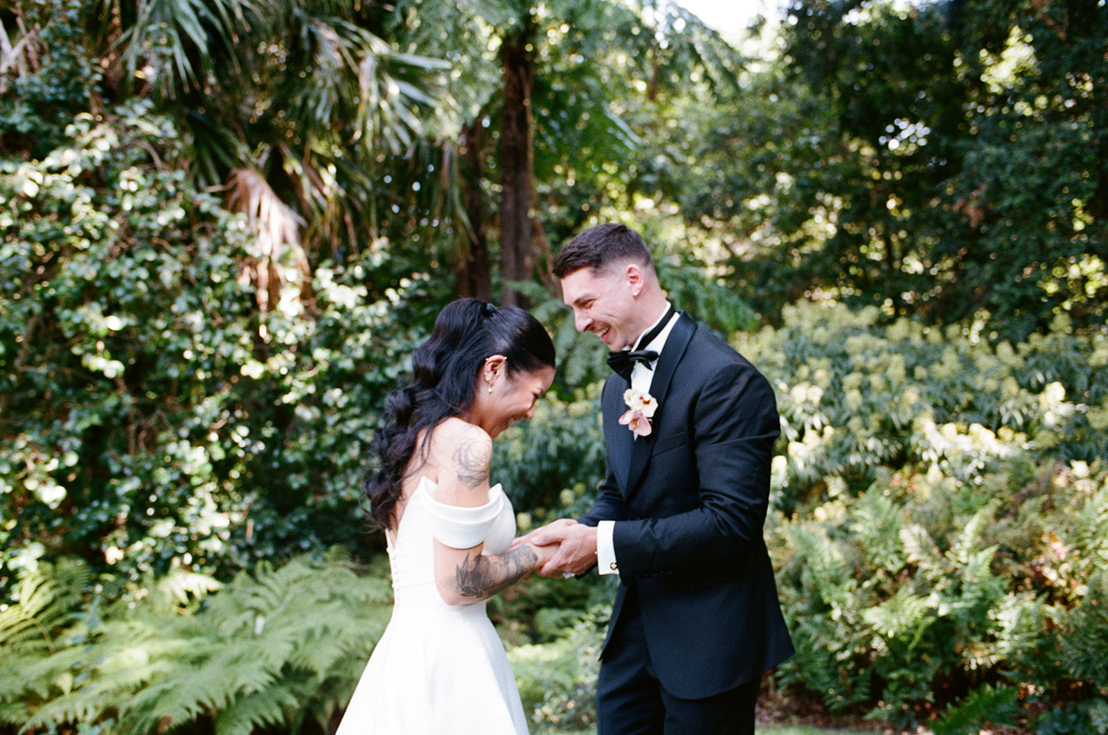 “Our dream was to get married in Tuscany, but we wanted to make sure our loved ones could be there, so we looked for the closest thing in Melbourne. We wanted an outdoor ceremony and reception, with beautiful summer lighting to capture that Tuscan style atmosphere. We also knew we wanted an intimate wedding, and Gardens House was perfect. It could host 60 guests without needing a marquee, which was exactly what we were looking for.”