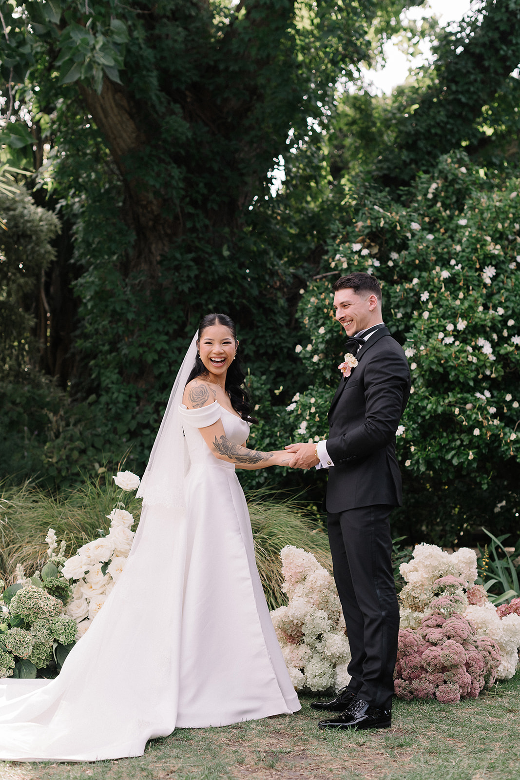 “If we had to pick some favourite moments, it would be the first look. It was a whirlwind of emotions… excitement, nervousness, adrenaline, happiness, and even tears of joy. It was the first time we embraced and kissed that day, and it felt incredibly special. To make it even more magical, our song started playing in the background completely unplanned. Another moment that really stands out is standing together at the ceremony in front of our loved ones. and realising we had everyone we cared about in one place, celebrating us. It was so meaningful to have our families and friends come together (especially when some live overseas and interstate) and share that day with us.”