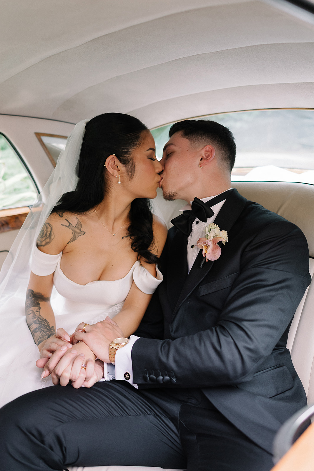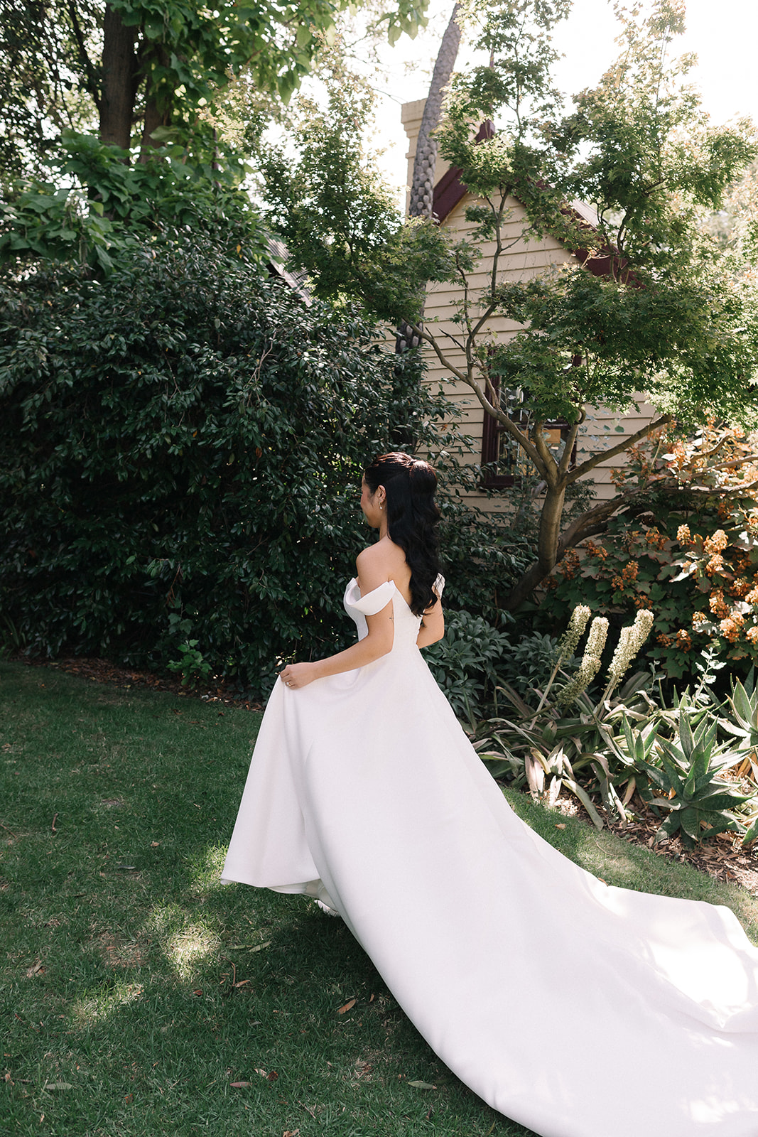 CONTRIBUTING VENDORS Photographer Wild Romantic Photography Cinematographer Dylan Dirks Content Creator MTL Socials Event Planner, Catering, Lighting & Sound Hire Atlantic Group Stylist & Florist Evolve Floral Stationery & Signage Natalie Deluca (Family) Printer Officeworks Venue Gardens House via Atlantic Group Entertainment Hey Jack, Abel Firew Celebrant/MC Yarra Events Rings Cartier Transport Always Classic Cars Parasols & Paper Fans Facebook Marketplace, Amazon THE BRIDE Bridal Gown Designer Khya Veil Bridal by Valeria via Etsy Second Dress Drenusha Xharra Getting Ready Le Rose Shoes Charles & Keith Accessories Tenmashow via Etsy, Cartier Hair Kyrstal Hairstylist Makeup Makeup by Rachel Qi Fragrance D.S. & Durga via MECCA THE GROOM Suit, Jacket, Shirt, Pants & Tie The Suit Concierge Cufflinks Love Stones Australia via Etsy Shoes Aquila Watch Tissot