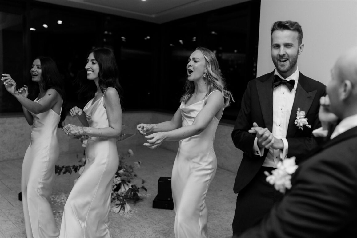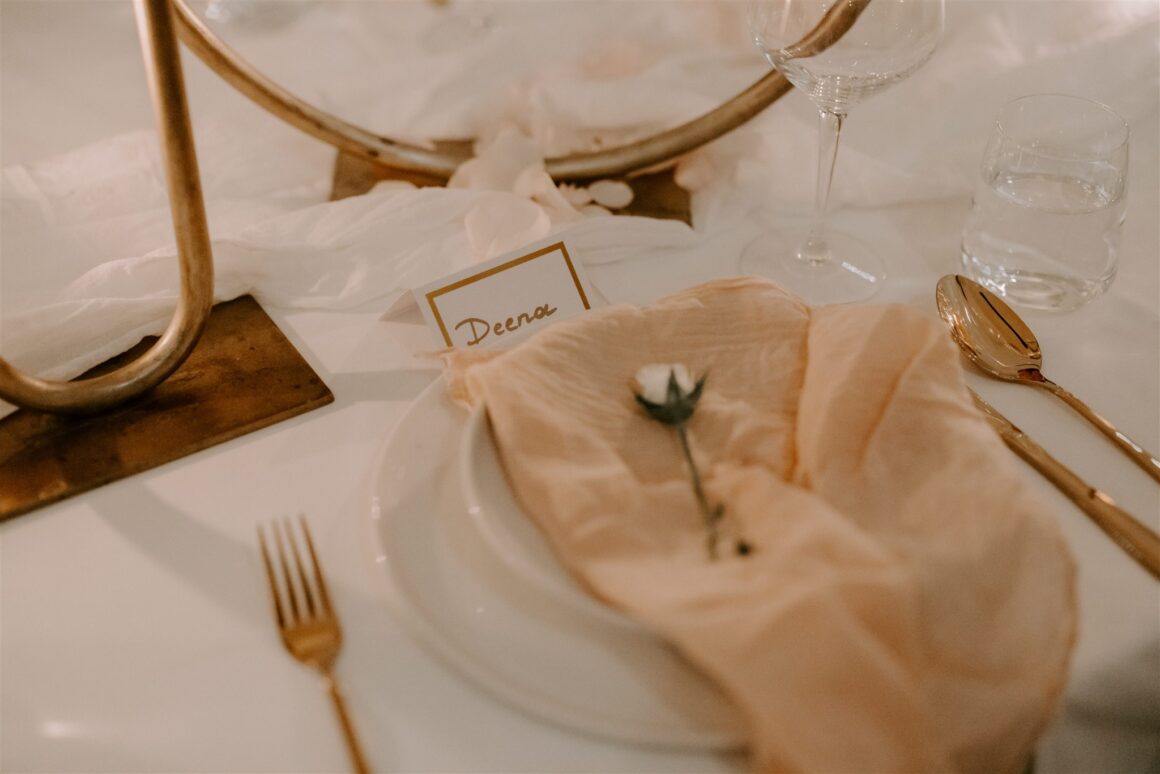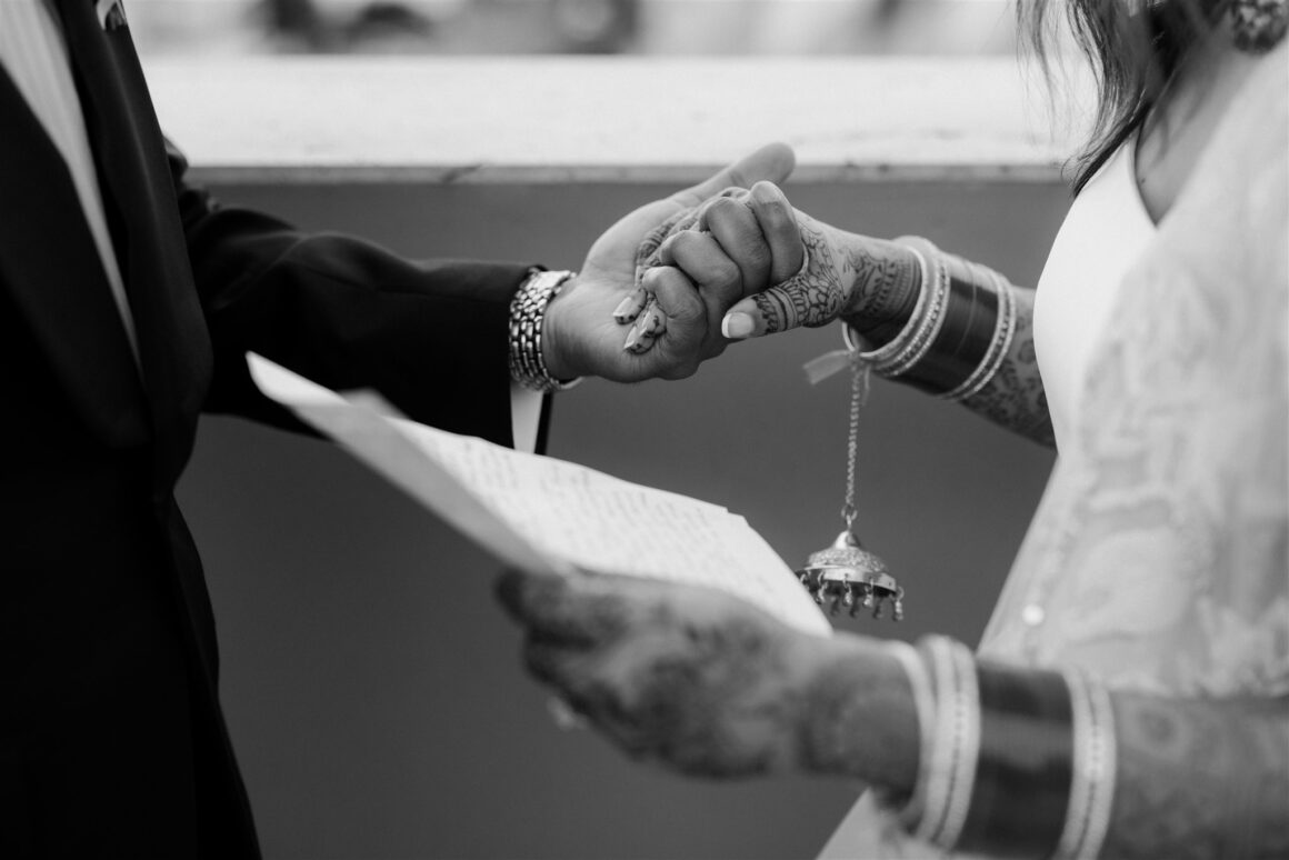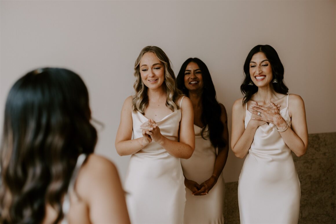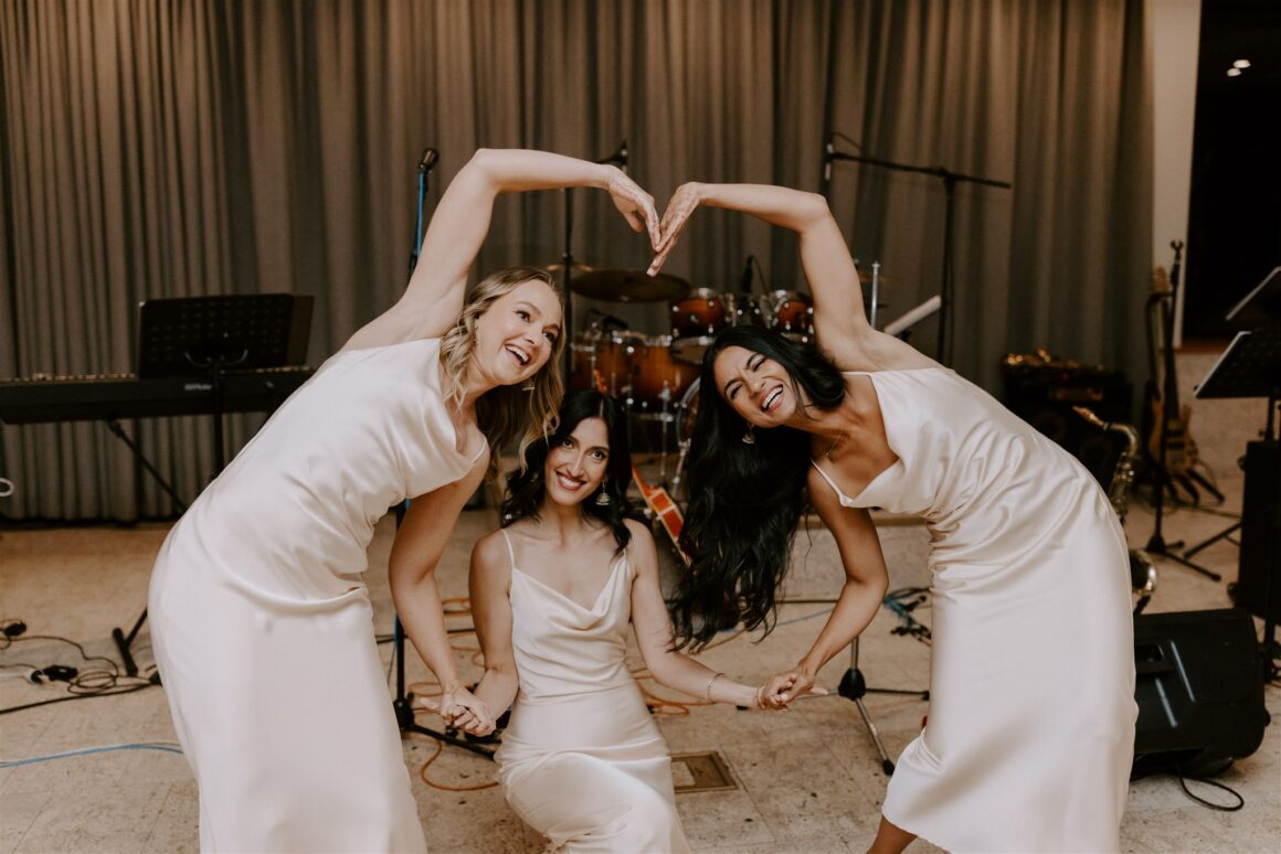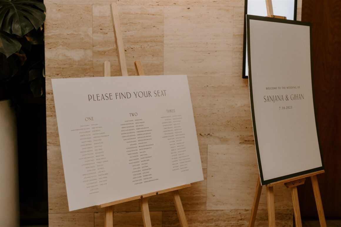 “We had a first look about an hour before the ceremony began. It was just the two of us (and our photographer Janneke and videographer Luke) while we read our vows to each other. It was nice to share more intimate and calm moments together beforehand. The second special memory was sitting down to do the Hindu blessing, we looked out and saw a sea of our favourite people – words cannot describe the happiness that we felt in that moment. We were really lucky to have family come all the way from various parts of the world to celebrate us. Last and definitely not least, Gihan, the groomsmen, our MC and my brother prepared a dance to surprise me at the reception. Gihan made a mix of all my favourite songs and instagram reels, and incorporated lots of my own, “cool” dance moves of the day!”