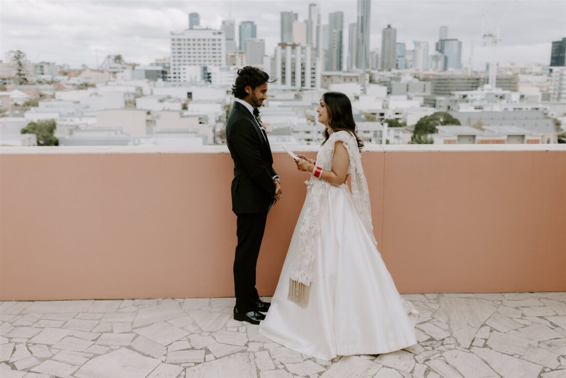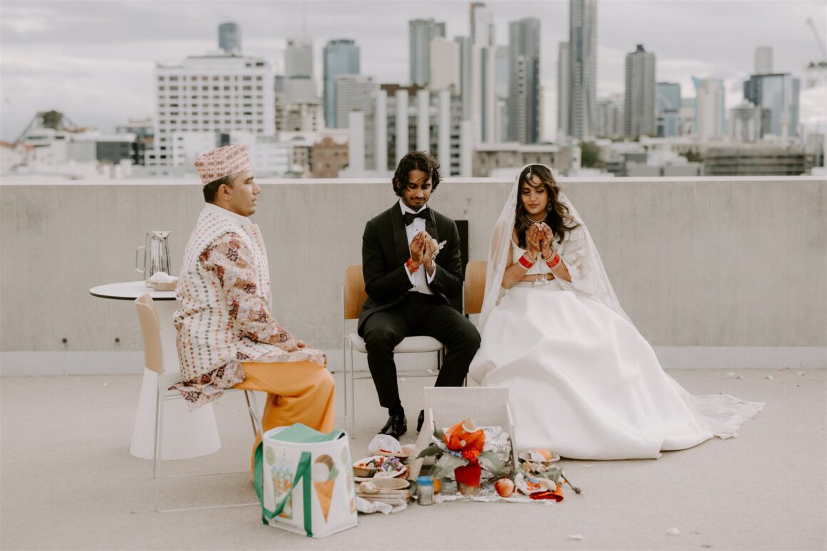 Hosted at Brisbane’s well-known The Calile Hotel, Sanj and Gihan’s day was a recipe of heartfelt moments, giggle-inducing moments, a whole lot of happy times, and meaningful cultural traditions. “We both come from different cultural backgrounds – Gihan is Sri Lankan (Catholic) and I am Indian (Hindu). We wanted a ceremony that honoured both of these cultures equally and, as such, got creative,” explains Sanj.