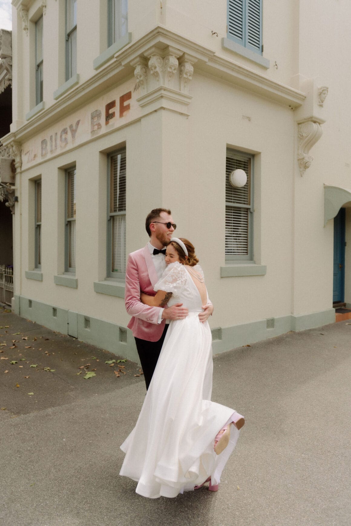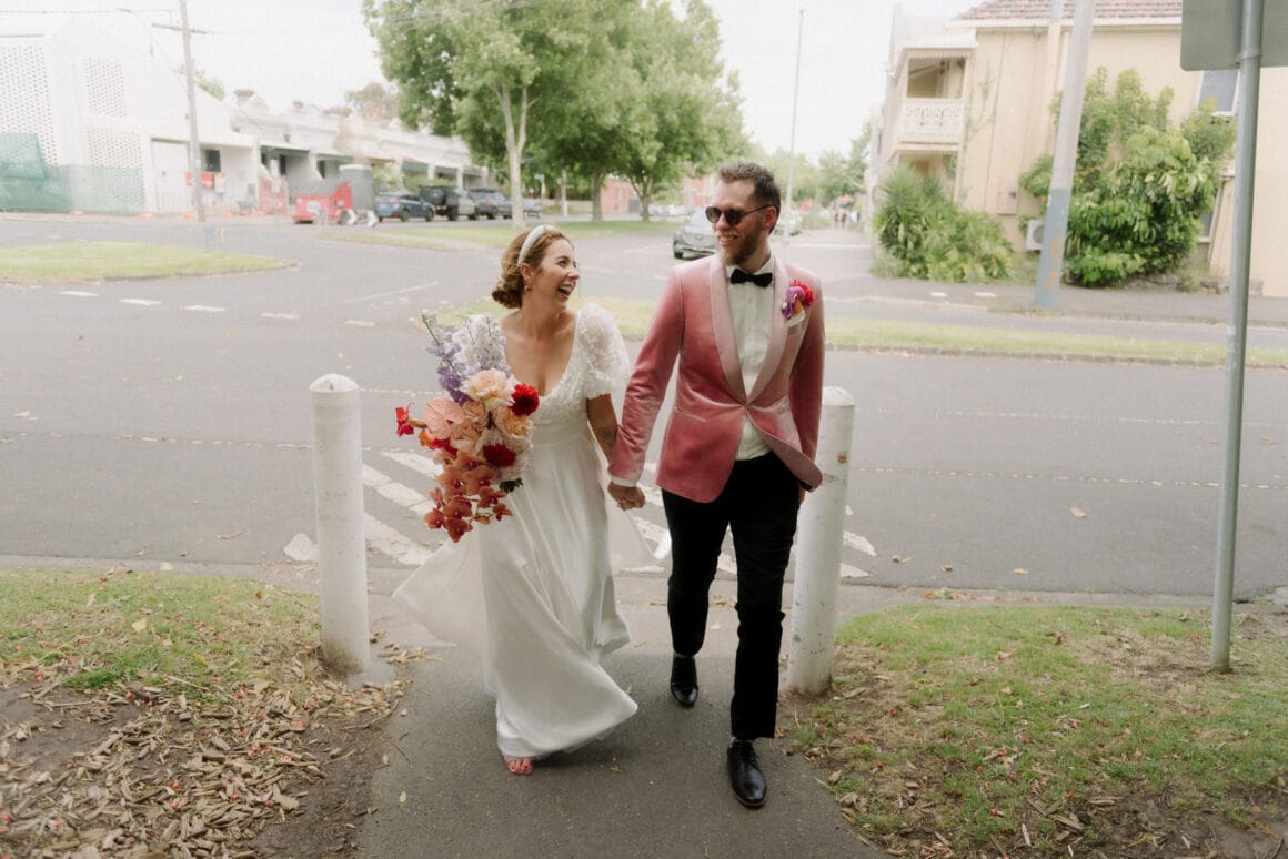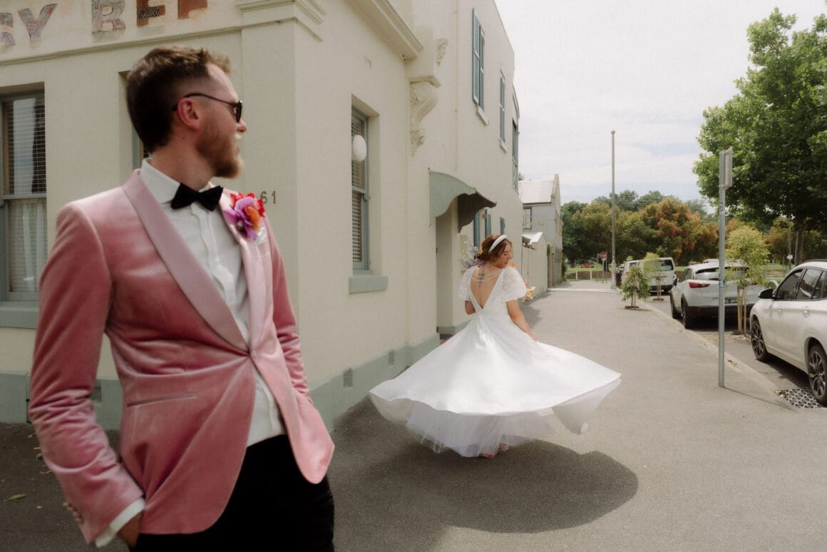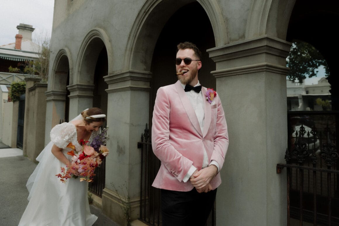 WE’RE GLAD WE… “We did the first look! We wavered on this initially because the whole ‘seeing each other at the aisle for the first time’ moment is special, but, honestly, the first look was so much fun and gave us some time to just be together before the madness. During the reception we had a two-hour long projection of our favourite film clips (expertly edited by Cam) playing on a loop. One of my best memories is boogying on the dancefloor and glancing over to catch a snippet of Heath Ledger blasting Frank Sinatra’s I love you baby in 10 Things I Hate About You.”