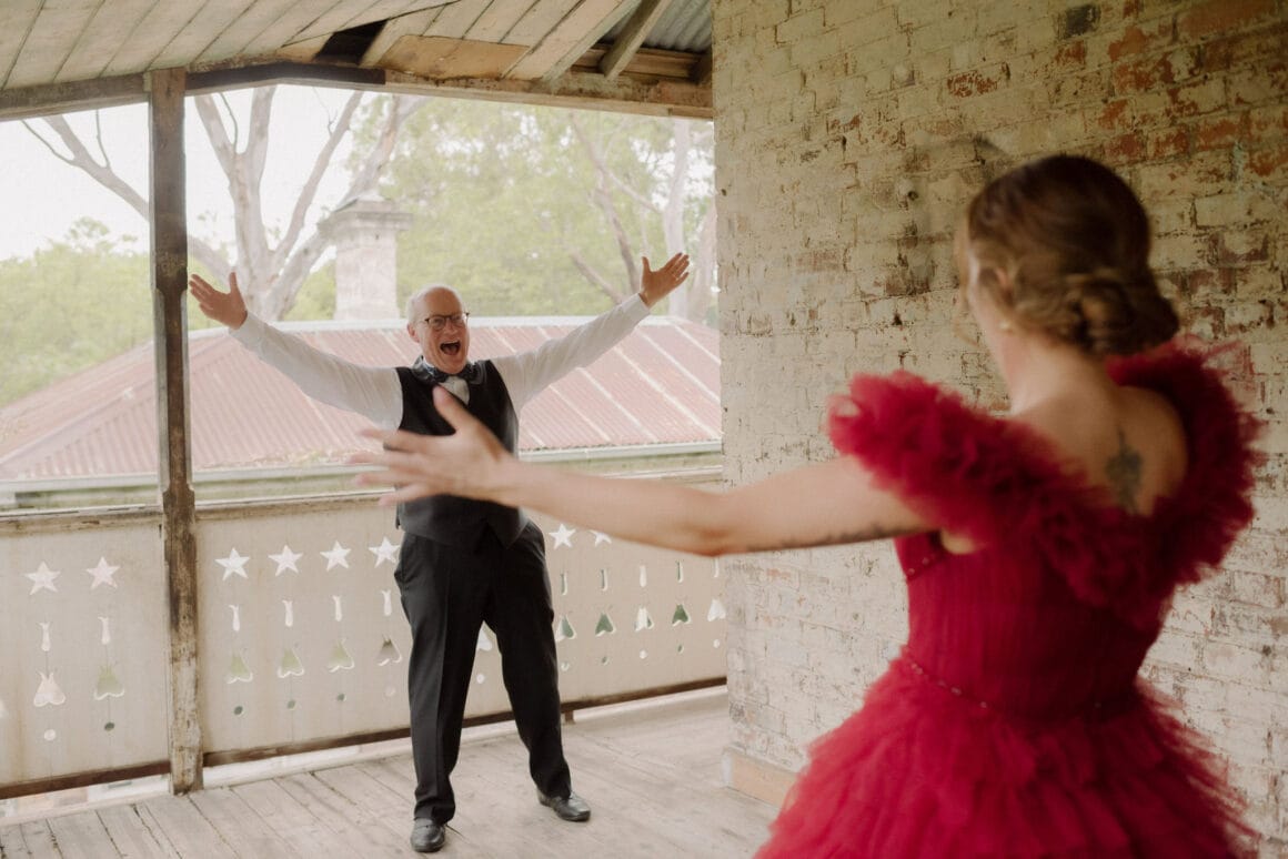 LITTLE LOL “In the lead-up to the wedding my (Sarah) dad kept asking what he should wear. I told him as long as he was there, I didn’t care – he could wear a clown suit if he really wanted to. My dad is not one to back down from a challenge. He arrived, thankfully, in a perfectly respectable wedding suit, but during his speech whipped out a clown hat and nose from his pocket. I never saw it coming (although really I should have).”