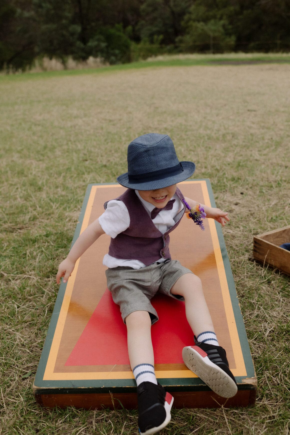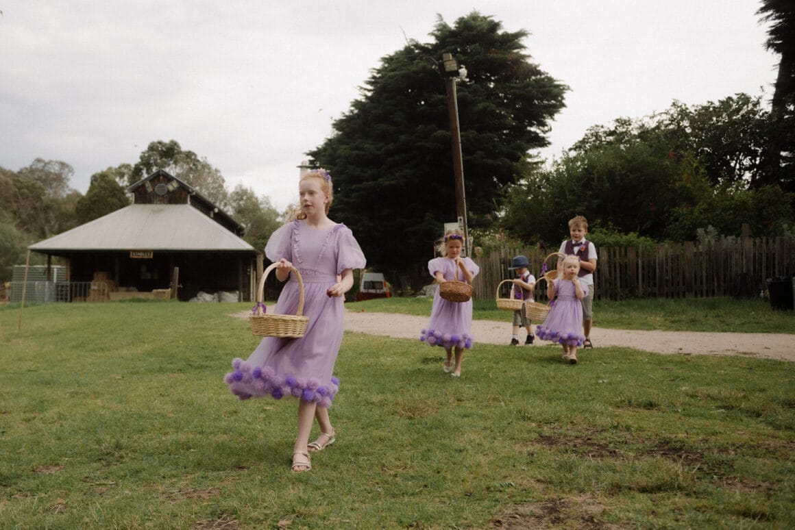 THE VENUE “I grew up in the rural South Island of New Zealand, so I wanted something that felt reminiscent of home: rolling green hills, fresh air, maybe a rogue chicken wandering past. But since my family was flying over, I also didn’t want to drag them too far out of Melbourne. The moment we were shown around the outdoor space at Collingwood Children’s Farm, we just knew, it was like a gut punch. We looked at one other venue to be sure, but really, the farm had already won.”