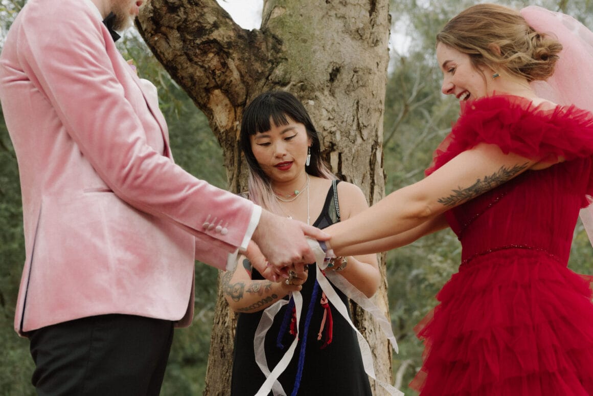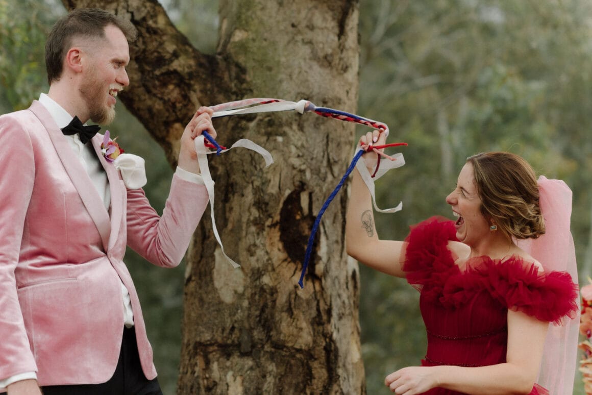 A TOUCH OF TRADITION “Neither of us are religious but we are sentimental suckers, so we wanted something symbolic that felt meaningful. Our celebrant, Jam, suggested a handfasting ritual, and we were immediately on board.”