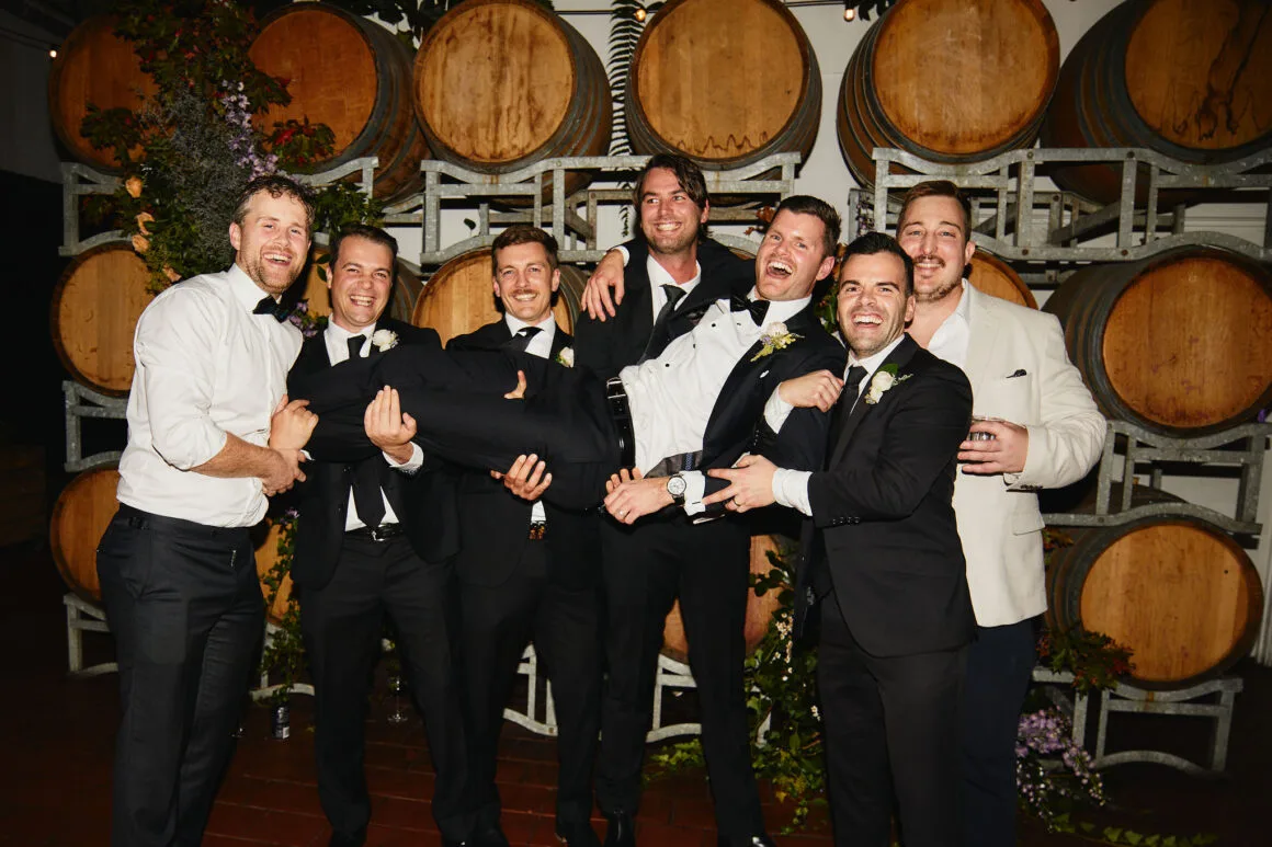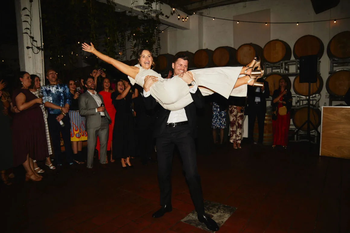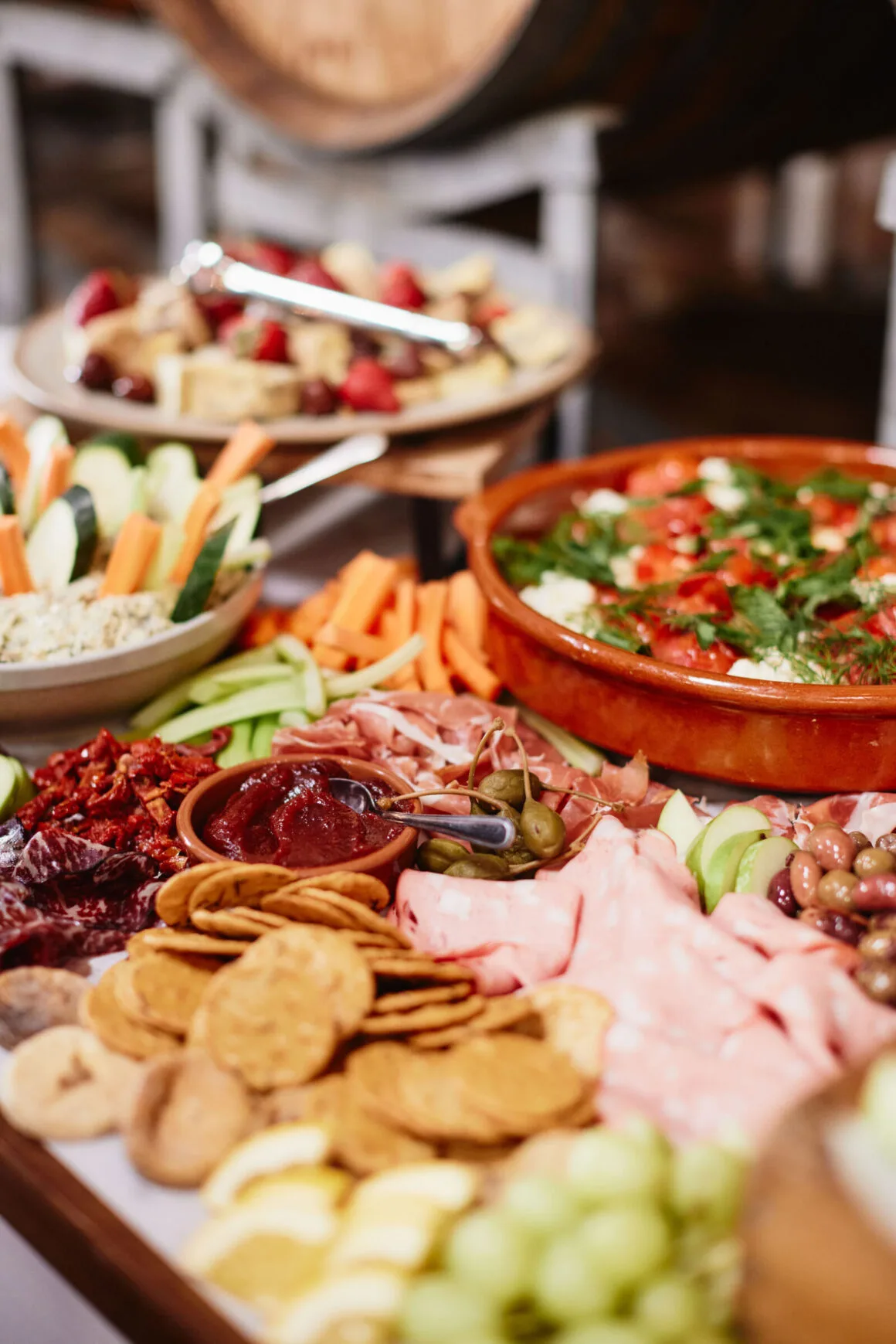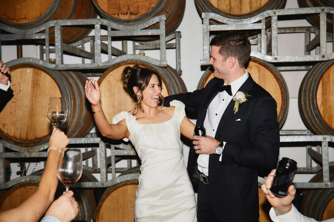 THE VIBE “We didn’t go into it with a theme; however, looking back, I would say autumn and vino. In terms of a vibe, we wanted the day to be stress-free, which meant minimal intervention on ‘extras’ such as hire items. And also relaxed for our guests, which is why we opted for cocktail style [which] also allowed extra guests. We also wanted it to be fun with lots of dancing, so music was a key criterion.”