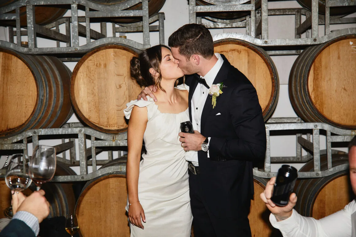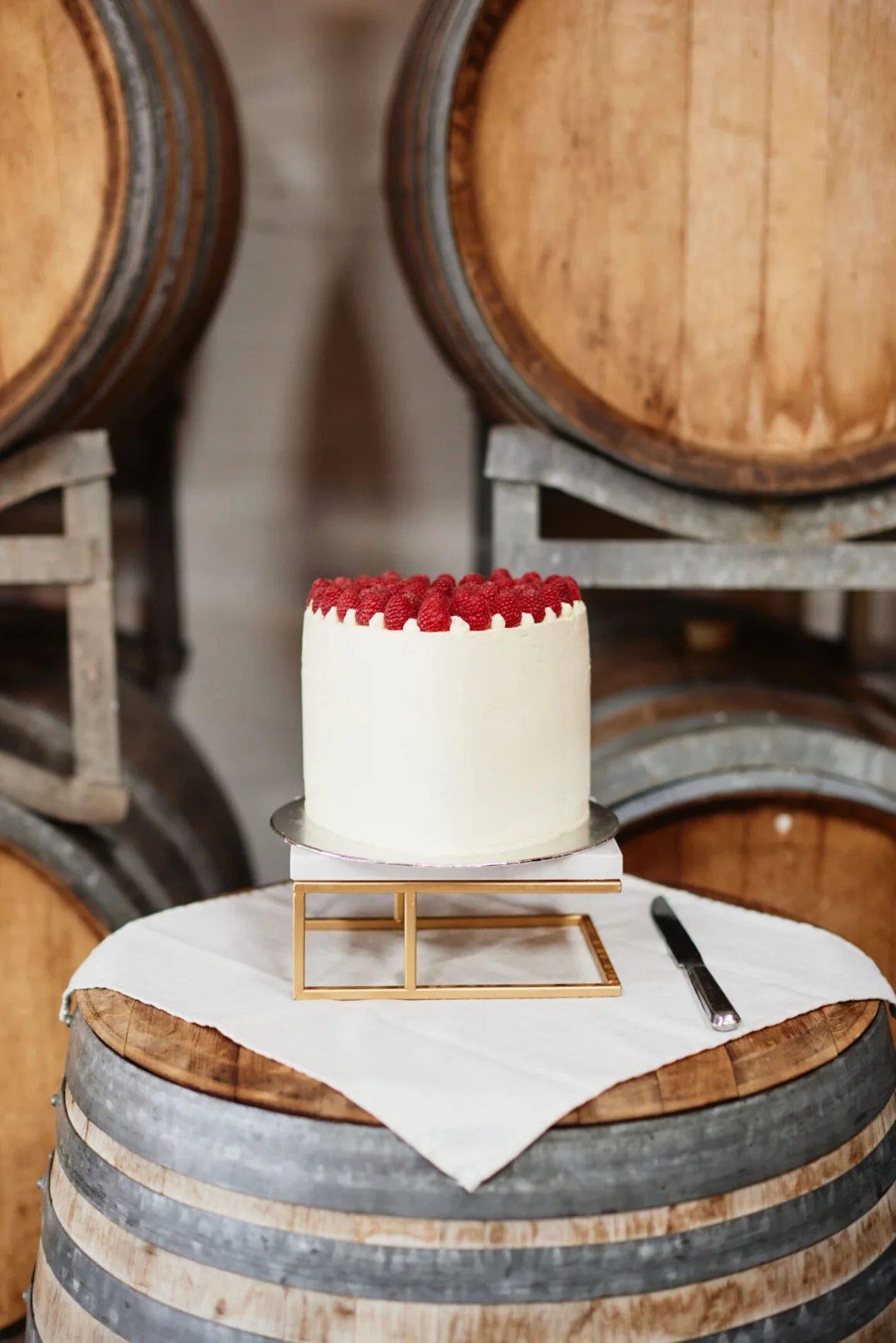 DIY “Tim made the wedding cake himself [and] came up with the shape heart, which he had never done before. He only showed me elements of the making and kept the final reveal a surprise. The wedding invitations and the signage my brother designed. He’s so talented coming up with a design that encompassed the time of year getting married being autumn in the colour of the paper and the design having hints of wine grapes to link to Noisy Ritual and also our love for delicious wine.”