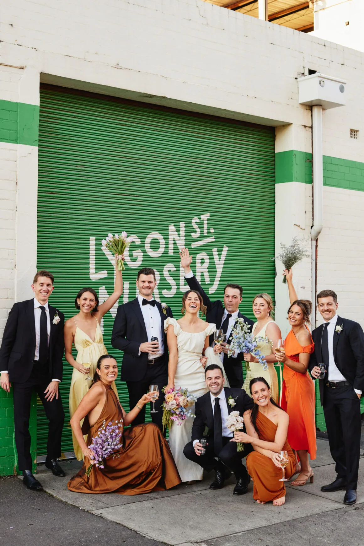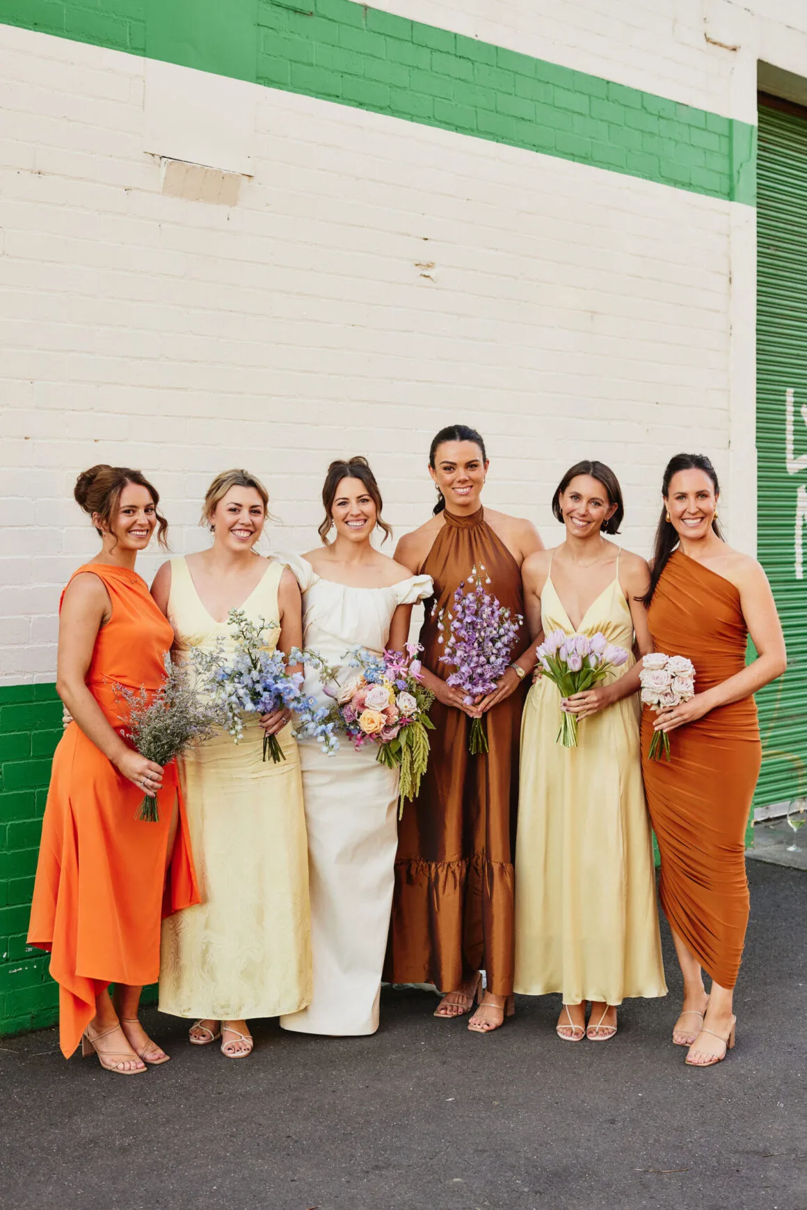 FAVE DETAILS “The flowers were absolutely stunning and turned out even better than I had imagined. Hilary (Billie Jean Botanicals) was so lovely. I told her the theme I was going for with my bridesmaids’ dresses, and she immediately loved that I was going with so much colour. Only a few weeks before the wedding, she suggested having different bouquets for each bridesmaid and gave a colour scheme of ‘lilacs and blues’ but indicated it would be difficult to provide an exact flower until seeing what’s available at the market. I will admit I couldn’t picture it and was a little unsure. We had a phone call, and I thought, let’s go with it! Hilary is the expert, and boy, did she deliver! I loved how each bridesmaid bouquet worked so well with the dresses [and] my bouquet picked up all five and was just stunning and so unique.”