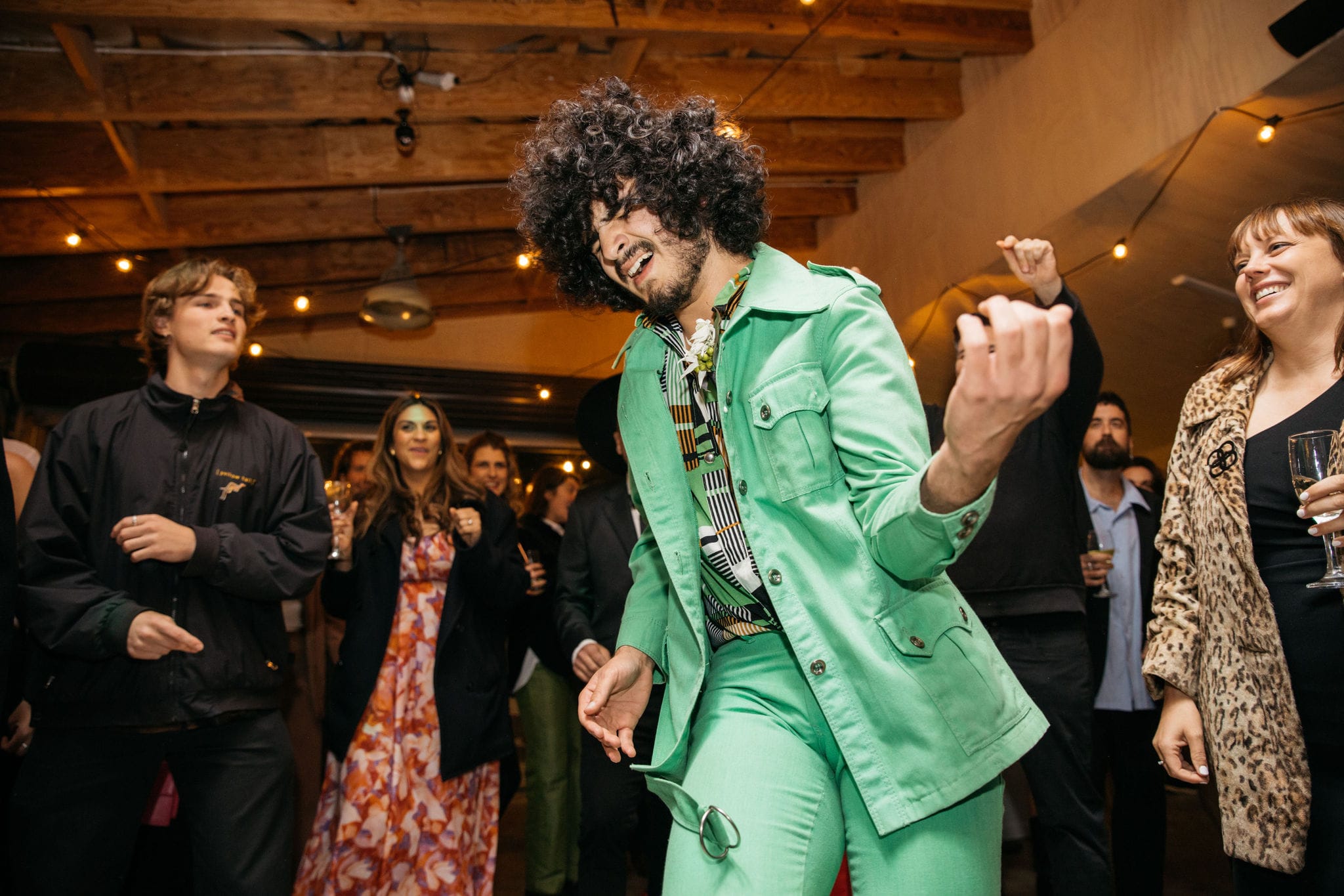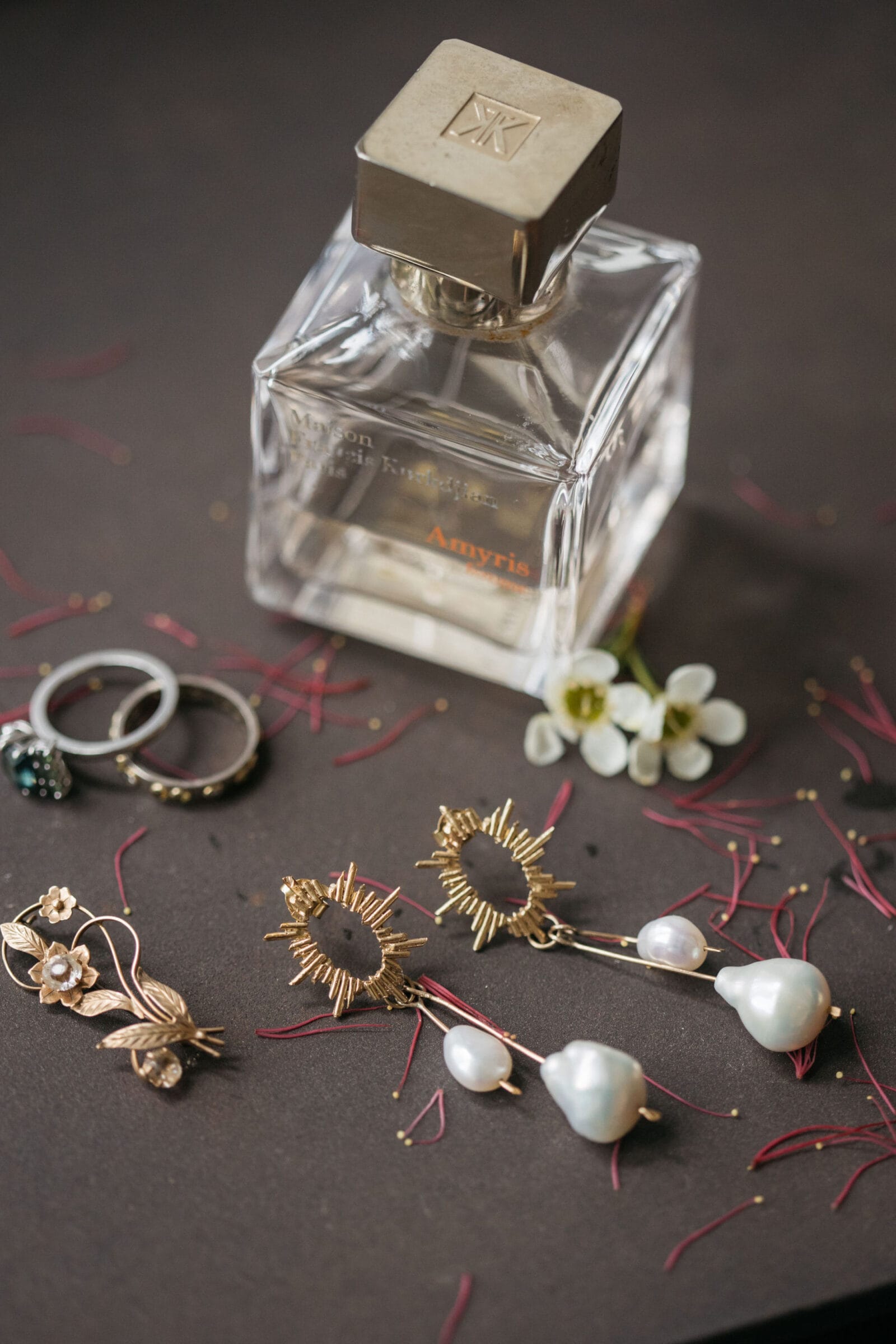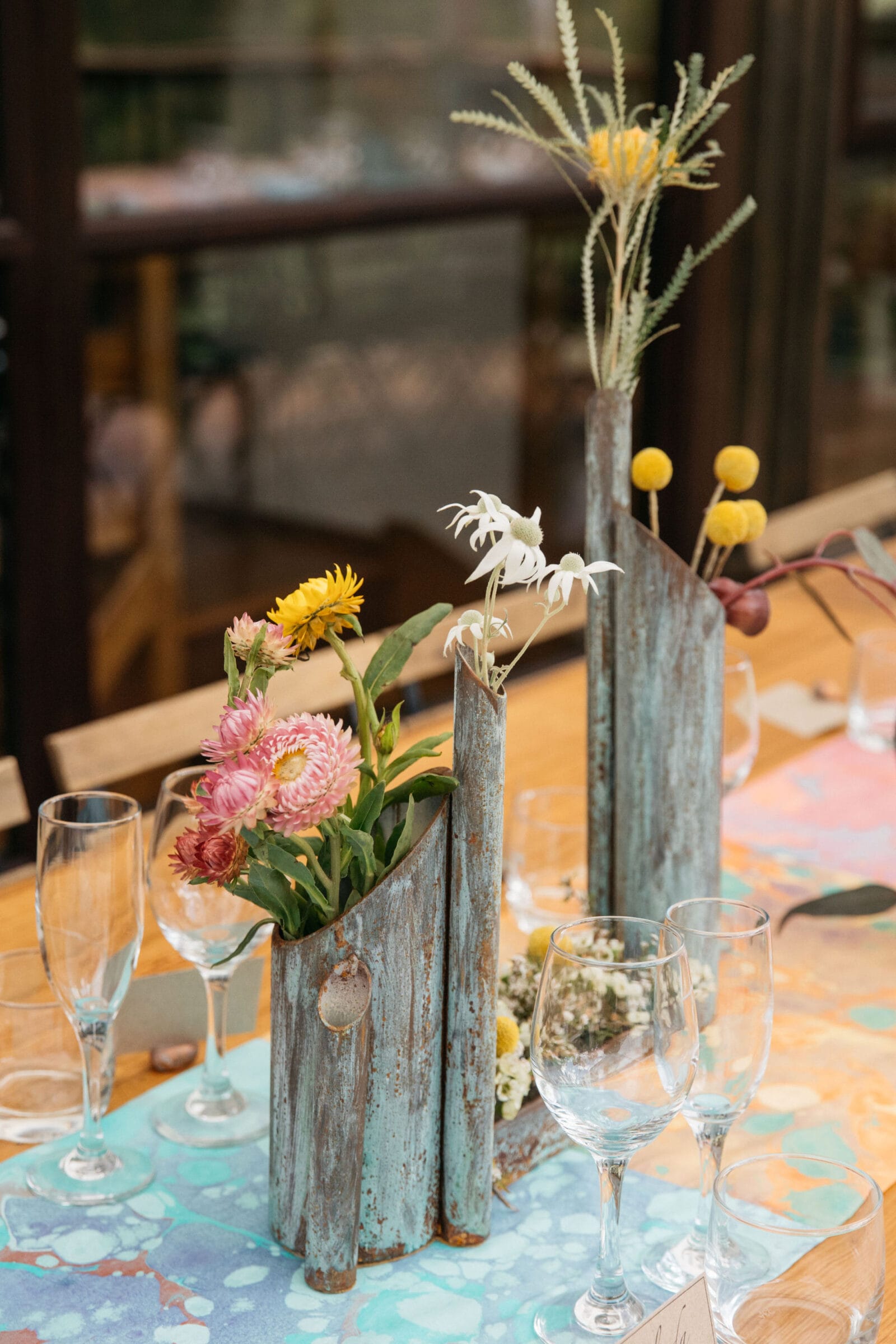 “There was no overarching theme. We just wanted it to be vibrant, fun and ‘us’. Both of us love to create, and we pulled things from our own collection and collaborated on the decorations. We were both really drawn to gold and, amazingly, had two green suits for the kids that worked really well with our outfits.”