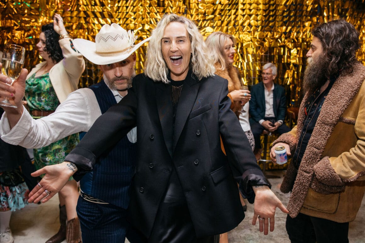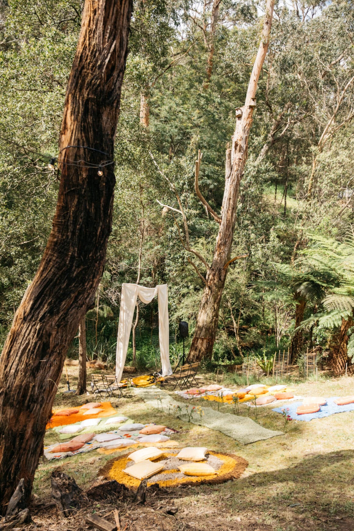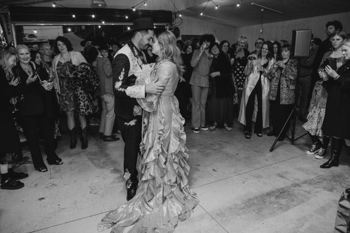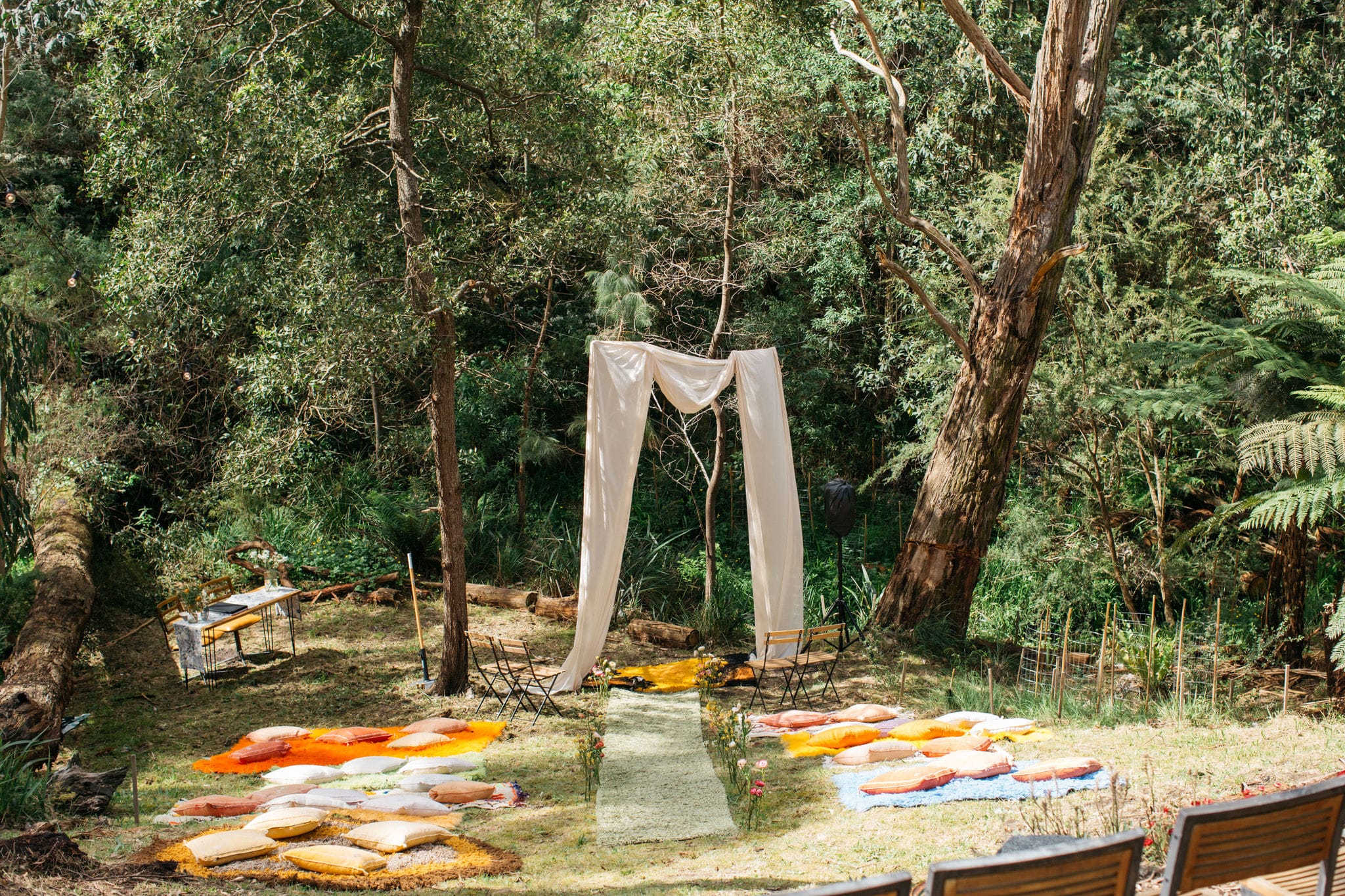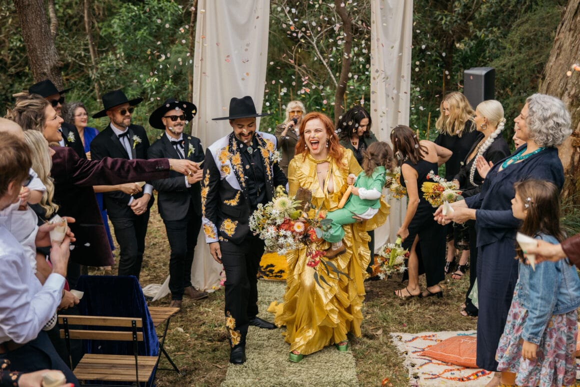 “Our backyard leading down to the creek made a natural amphitheatre, which became our aisle and arbour. Looking back up at everyone’s faces was a really special moment. Amazingly, no one fell over down the aisle; it was a lot steeper than it looked. Tom danced down it because he forgot how to walk normally under that much pressure. The conga line and multiple dance-offs must get a special mention.”