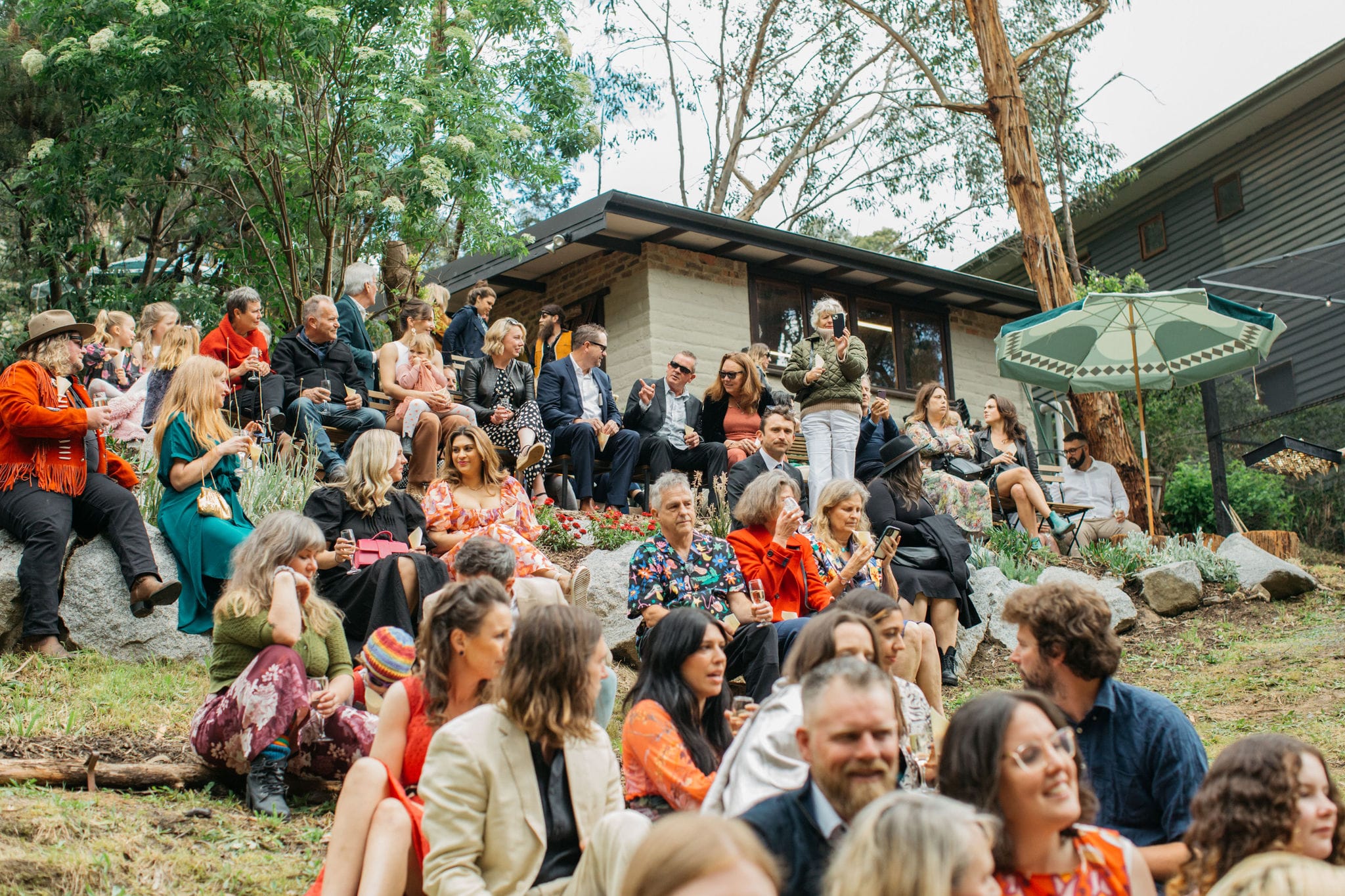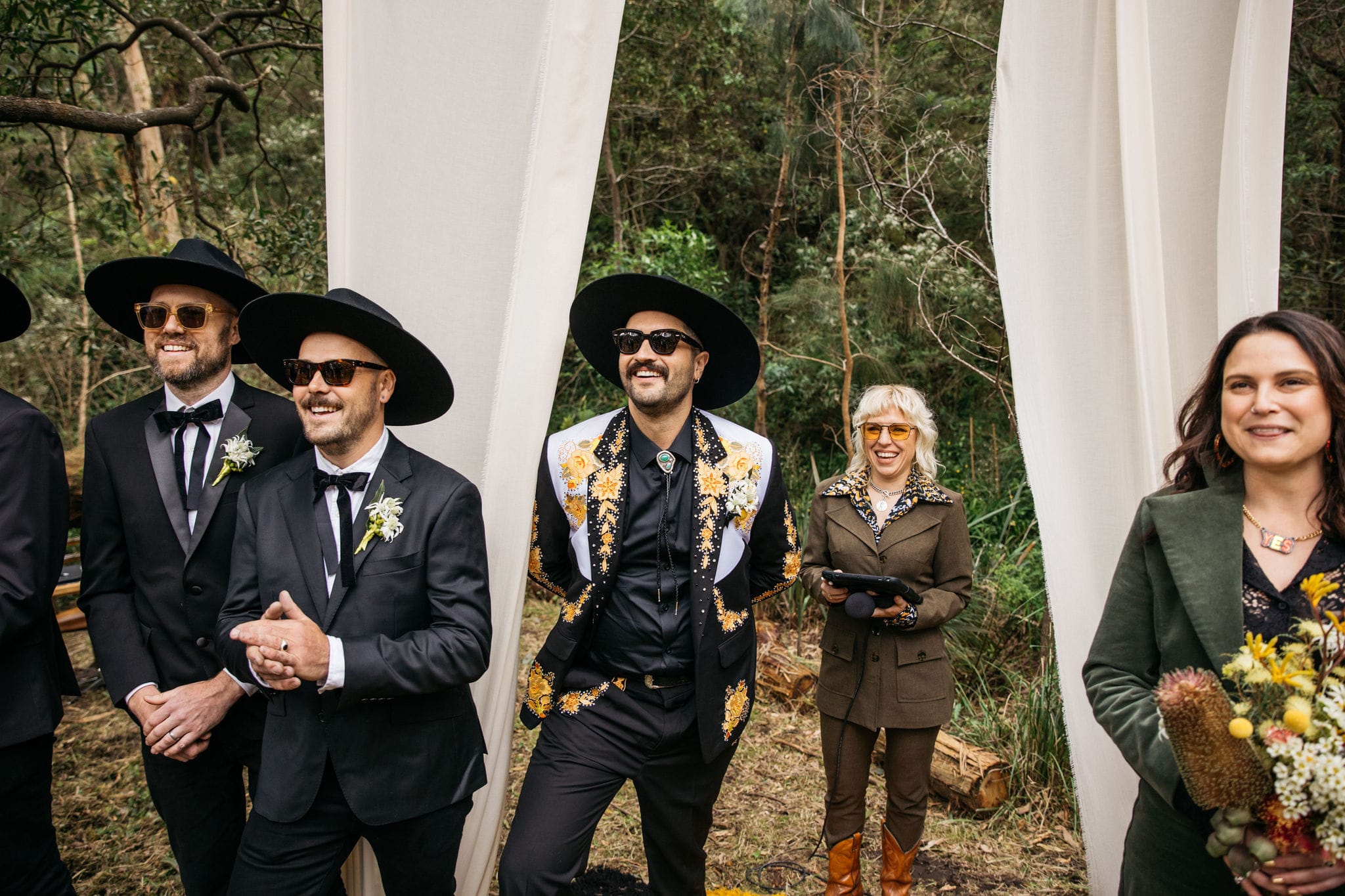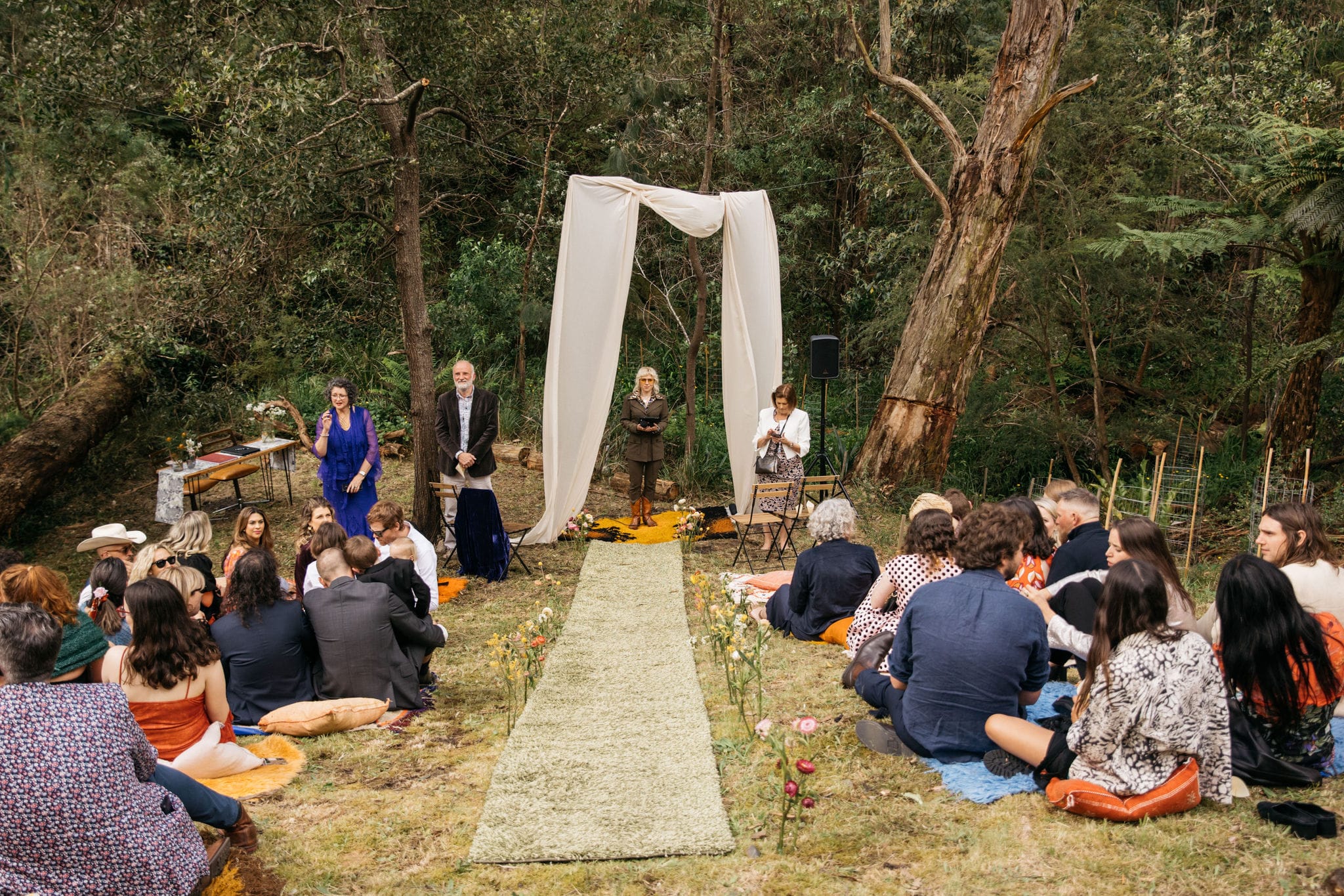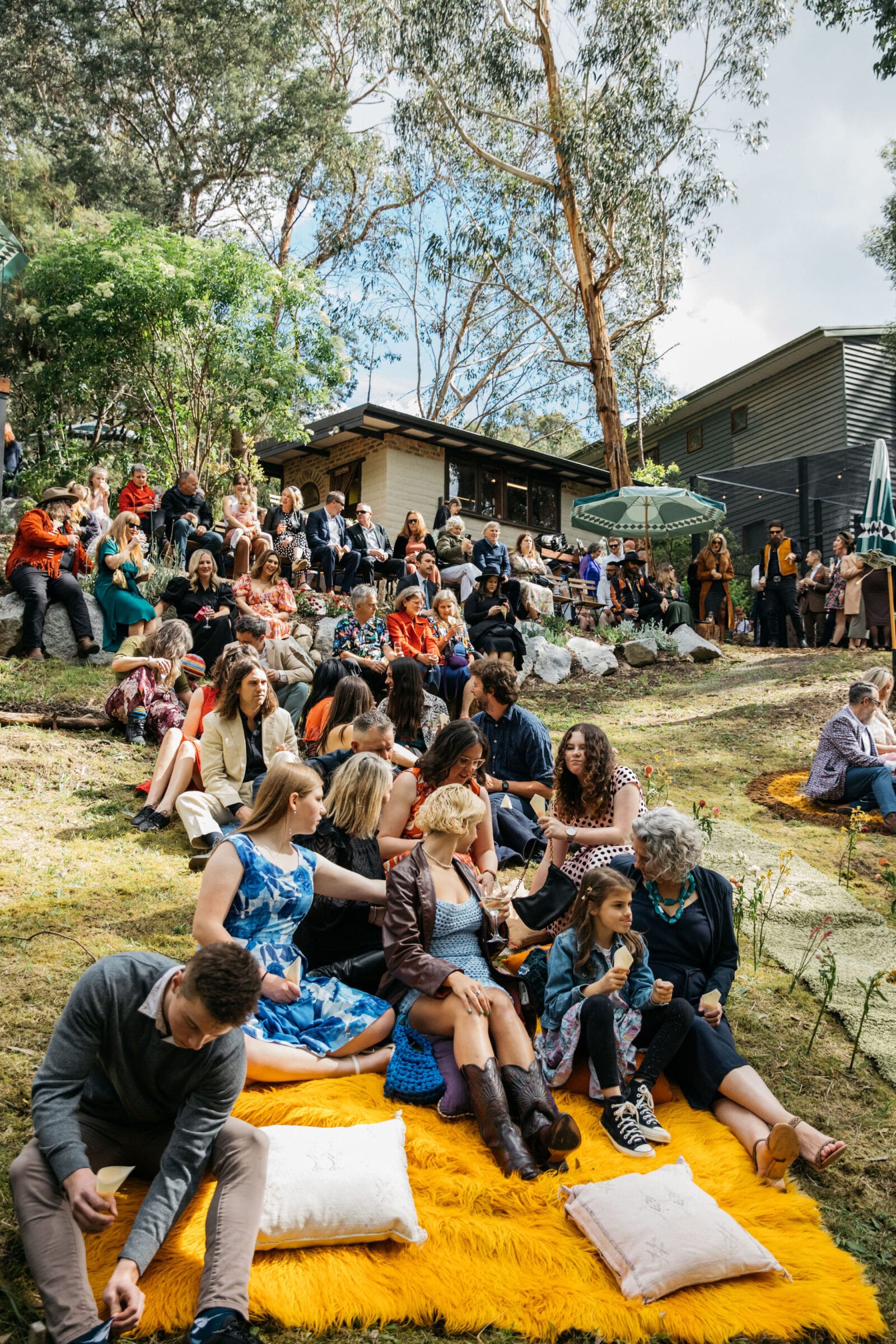 “Our backyard leading down to the creek made a natural amphitheatre, which became our aisle and arbour. Looking back up at everyone’s faces was a really special moment. Amazingly, no one fell over down the aisle; it was a lot steeper than it looked. Tom danced down it because he forgot how to walk normally under that much pressure. The conga line and multiple dance-offs must get a special mention.”