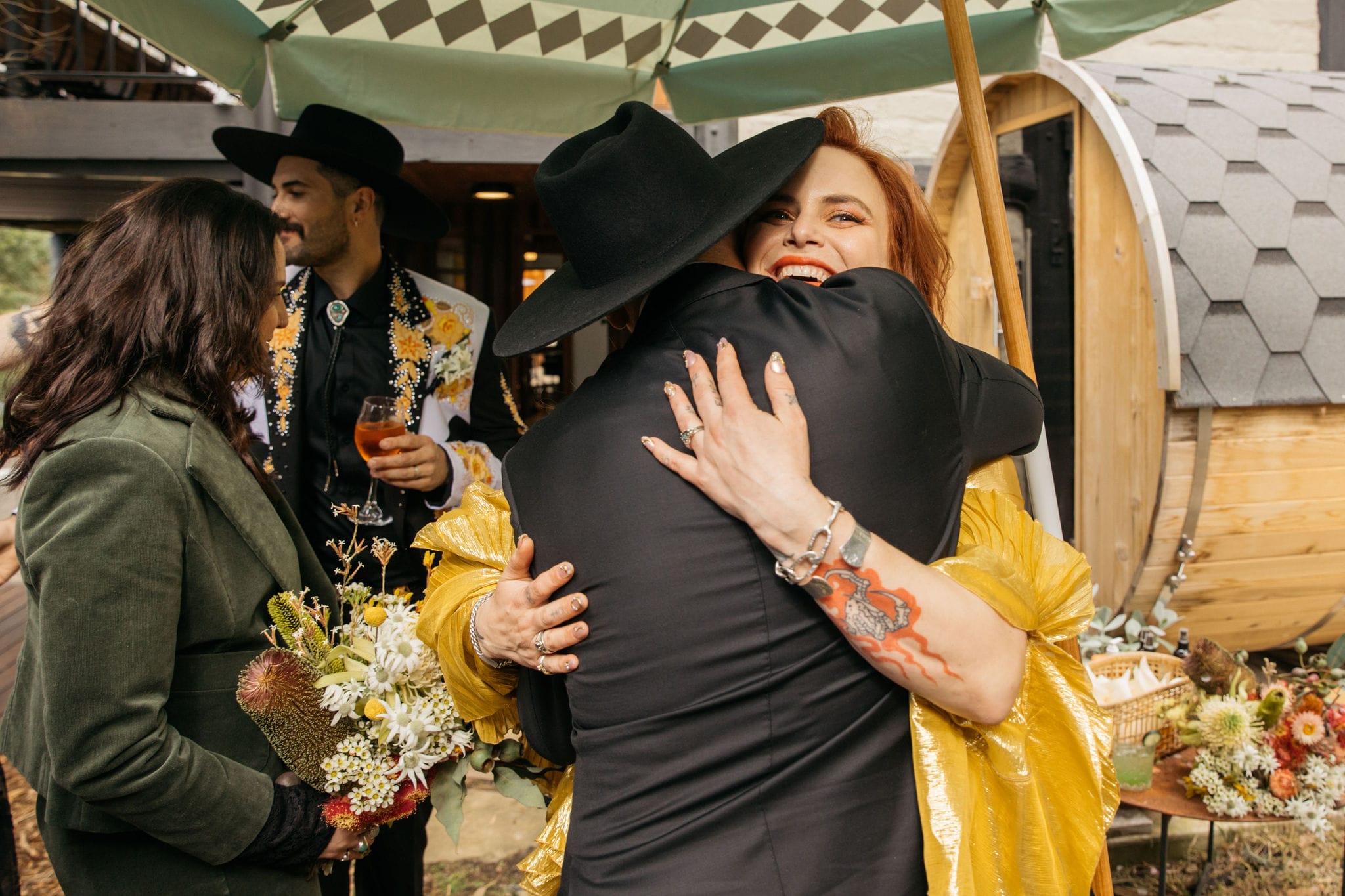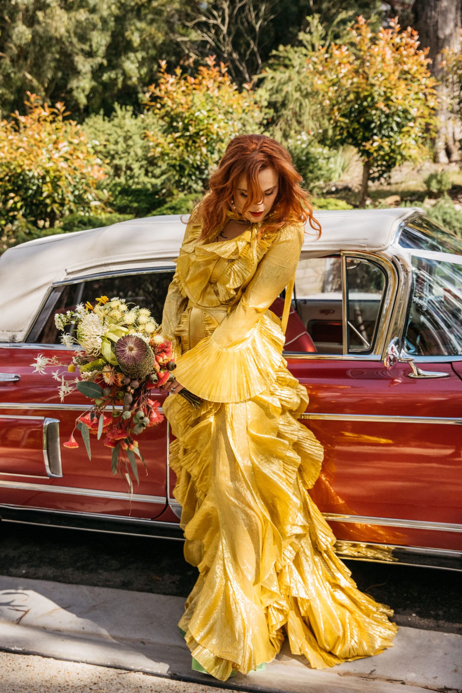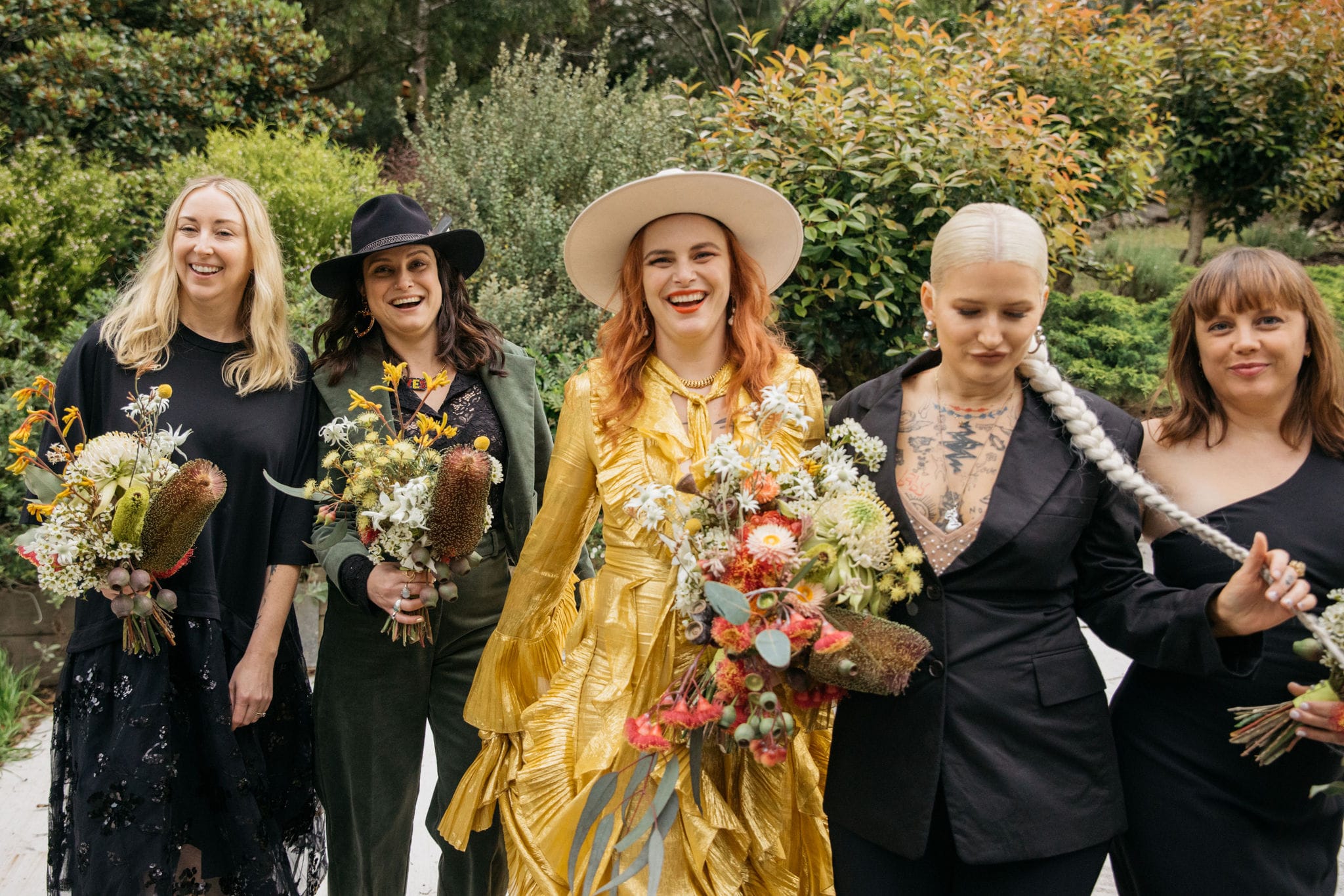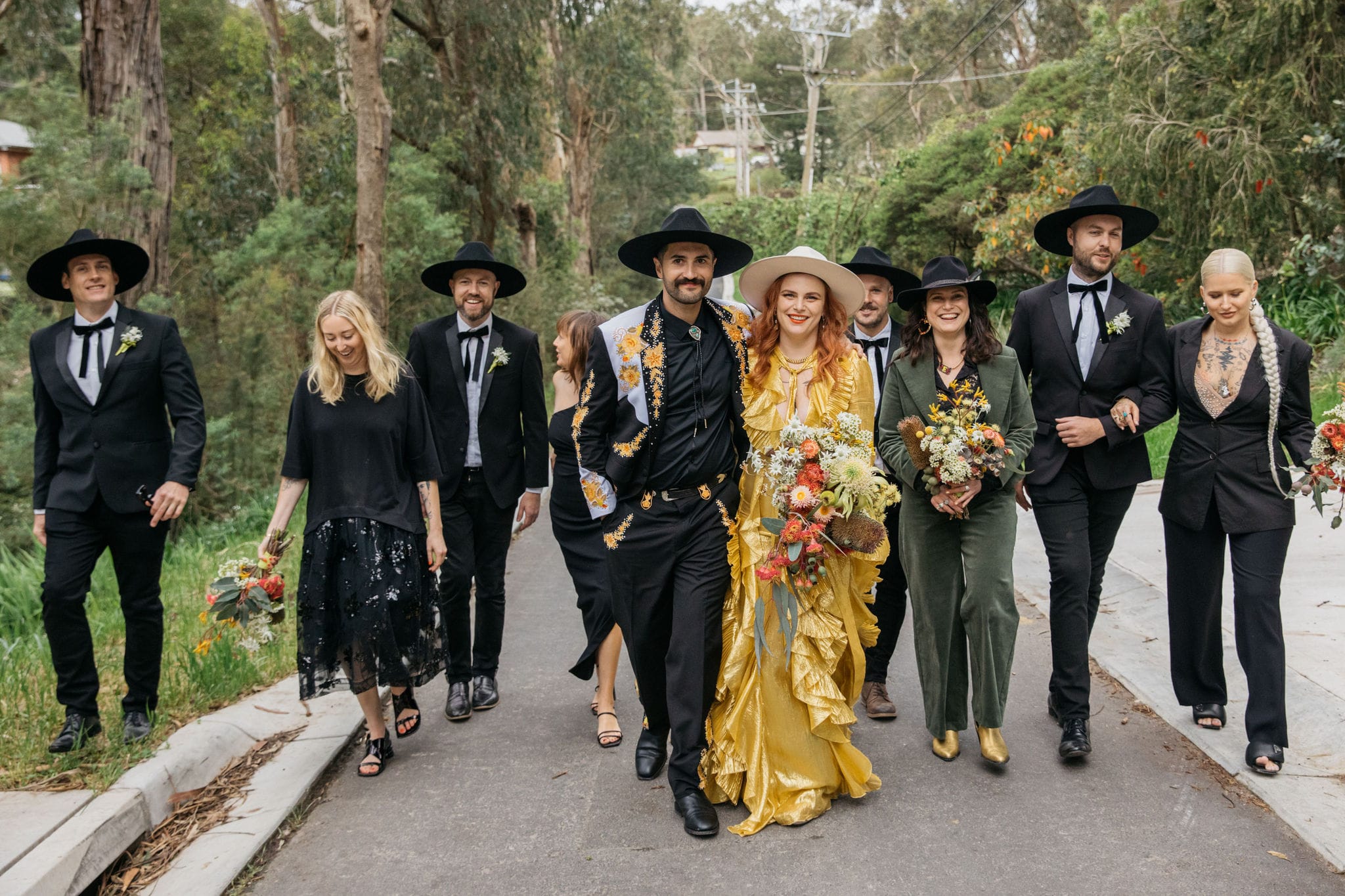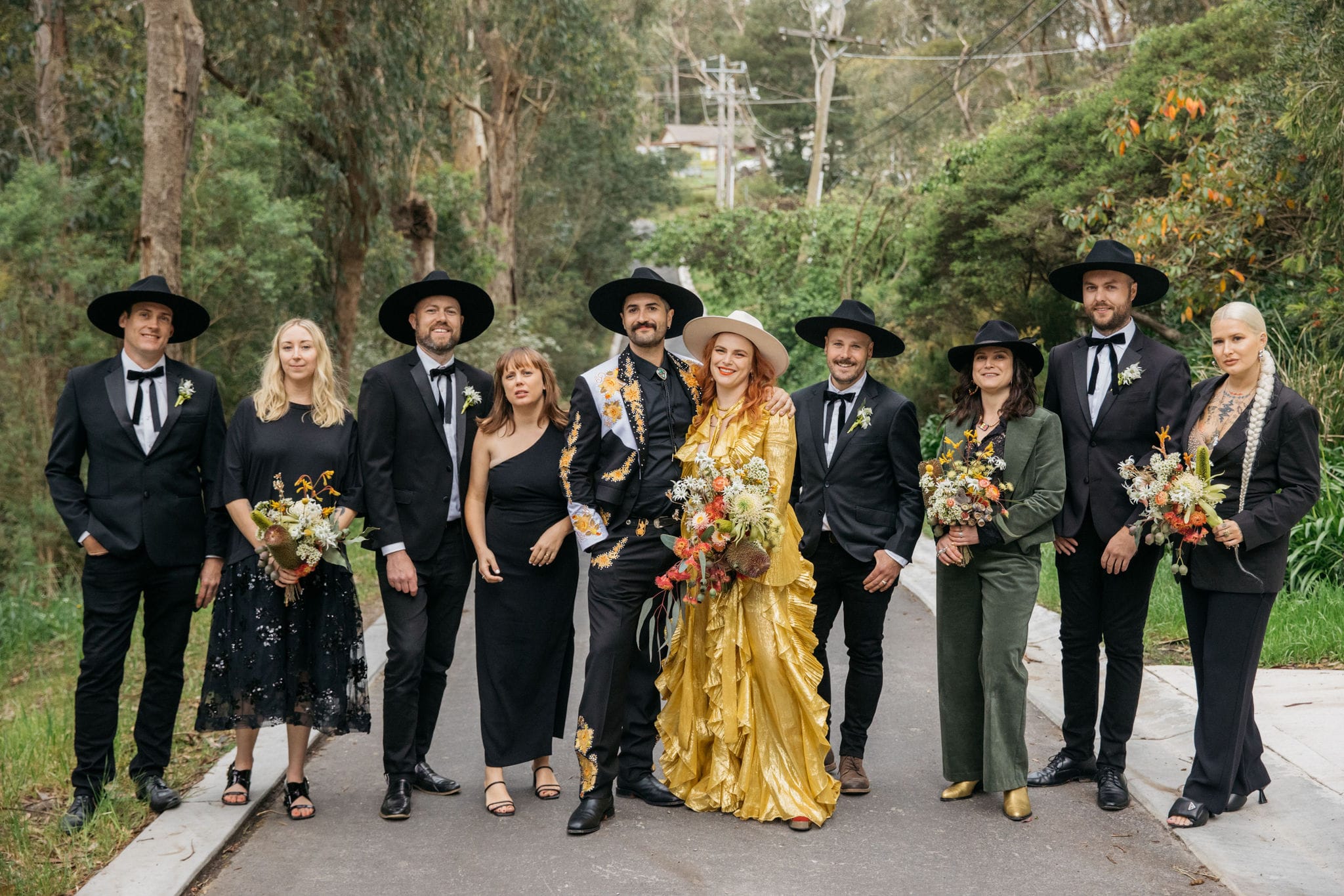 CONTRIBUTING VENDORS Photographer Maple and June Event Planner Emma Currie Flowers Vasette, DIY Stationery The English Stamp Company, Buy Eco Green Venue Private Property Catering The Grecian Kitchen Cake Katie Lou’s Cakes Hire Items The Table Station Entertainment Milo Eastwood Celebrant Renee The Celebrant Rings Stephen Keogh, Susan Ewington, Shelly Jam (Bride) Transport Caddy Man Gardeners AC Trees and Gardens Table Runners & Decor Maggie Brink, DIY THE BRIDE Gown & Shoes Gucci Boutique Vestiaire Collective Robes Utopia Goods Earrings Juan Castro via egetal Hair Gin Castro via Trophy Wife Makeup Margo Regan THE GROOM Suit Reigner Tie Shelly Jam (Bride) Shoes R.M. Williams Hat Stetson
