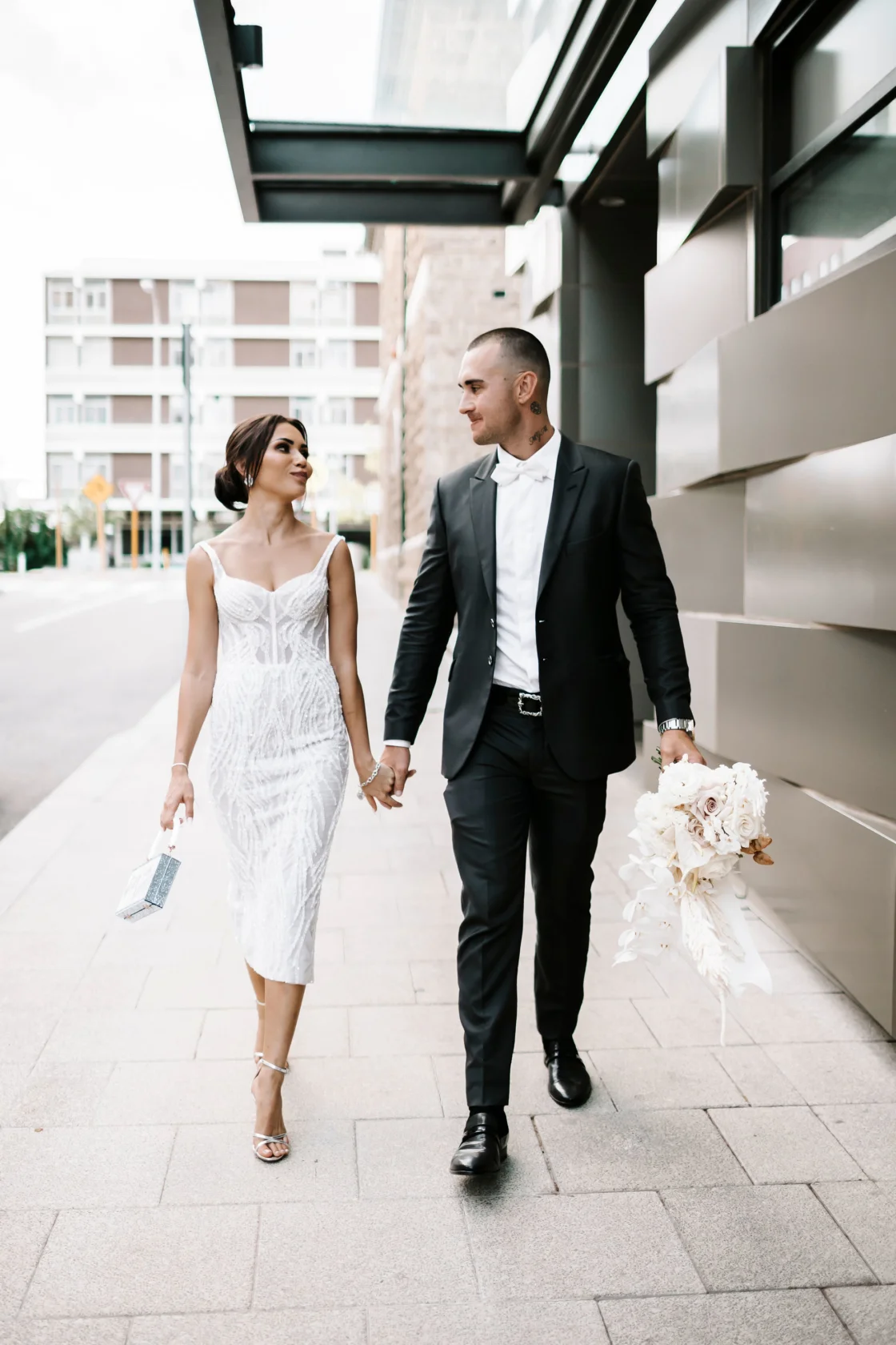 STANDOUT VENDORS “Glam team – Courtney Therry of TXC Collective (makeup) and Shane Woods (hair) – are two of Perth’s best, so I completely trusted them. Photographer, Loren of Nectarine made Mick and I feel so comfortable in front of the camera and really did go above and beyond in every way. [And] Marchesi (Ray Marchesi) was incredible. He is renowned in Perth for his eye for detail, his high-end style and his old-school gentleman touch!”