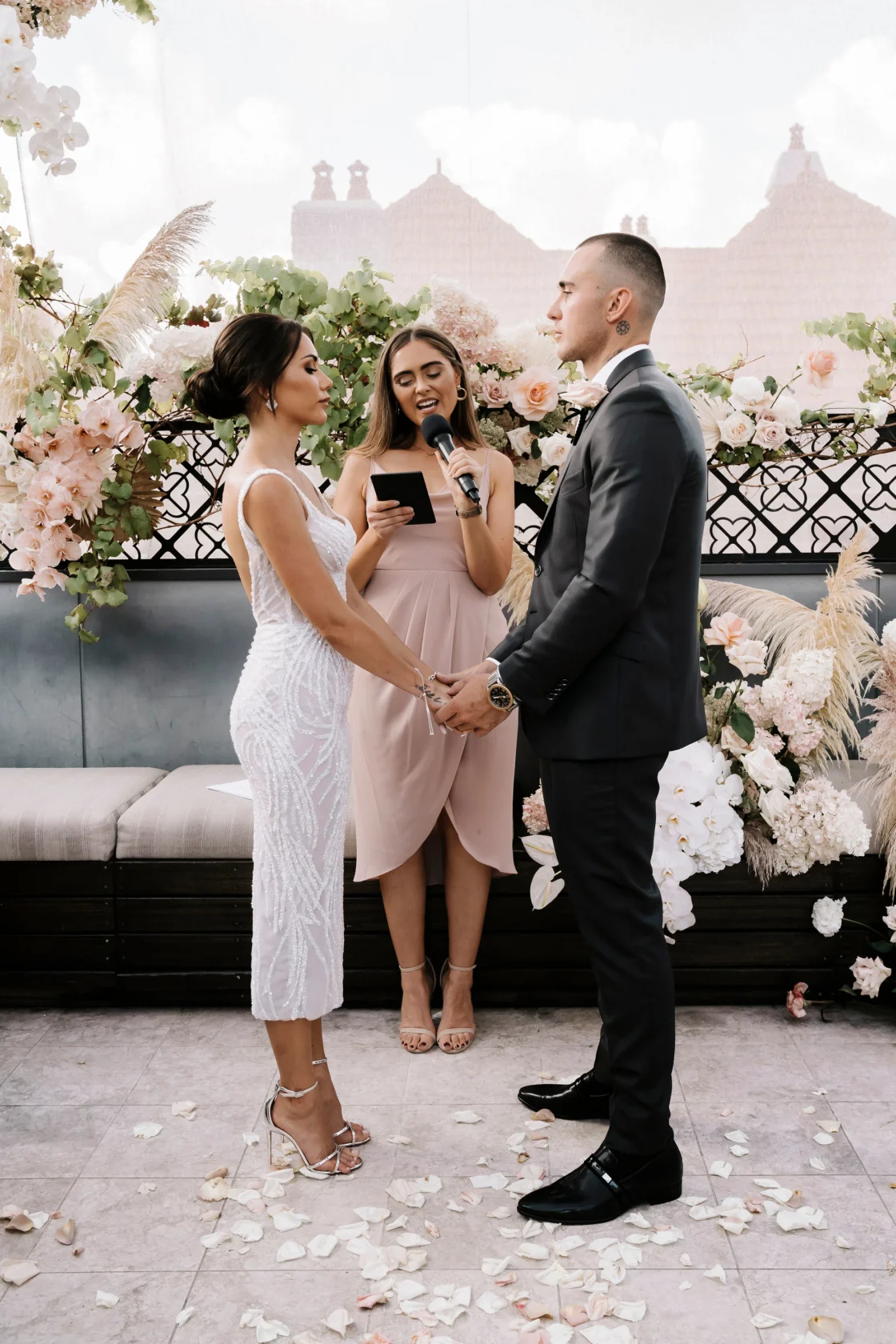 WE’RE GLAD WE… “We are so glad we did personalised vows. We loved including our daughter in part of our ceremony. This was something we were iffy on (as we weren’t sure how Harlow would go). But we decided that she is one of the biggest symbols of our love and wouldn’t have wanted it any other way! We are so glad we booked Simone (via Streamline Entertainment) to play the saxophone alongside DJ Rod Munoz via (Kaviar Bridal Corporate Events) for the reception. It added such an amazing point of difference, it was a total vibe and something we hadn’t seen done before!”