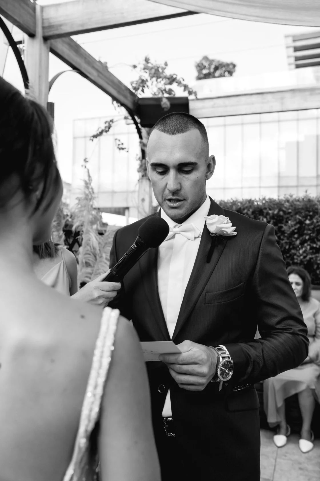 WE’RE GLAD WE… “We are so glad we did personalised vows. We loved including our daughter in part of our ceremony. This was something we were iffy on (as we weren’t sure how Harlow would go). But we decided that she is one of the biggest symbols of our love and wouldn’t have wanted it any other way! We are so glad we booked Simone (via Streamline Entertainment) to play the saxophone alongside DJ Rod Munoz via (Kaviar Bridal Corporate Events) for the reception. It added such an amazing point of difference, it was a total vibe and something we hadn’t seen done before!”