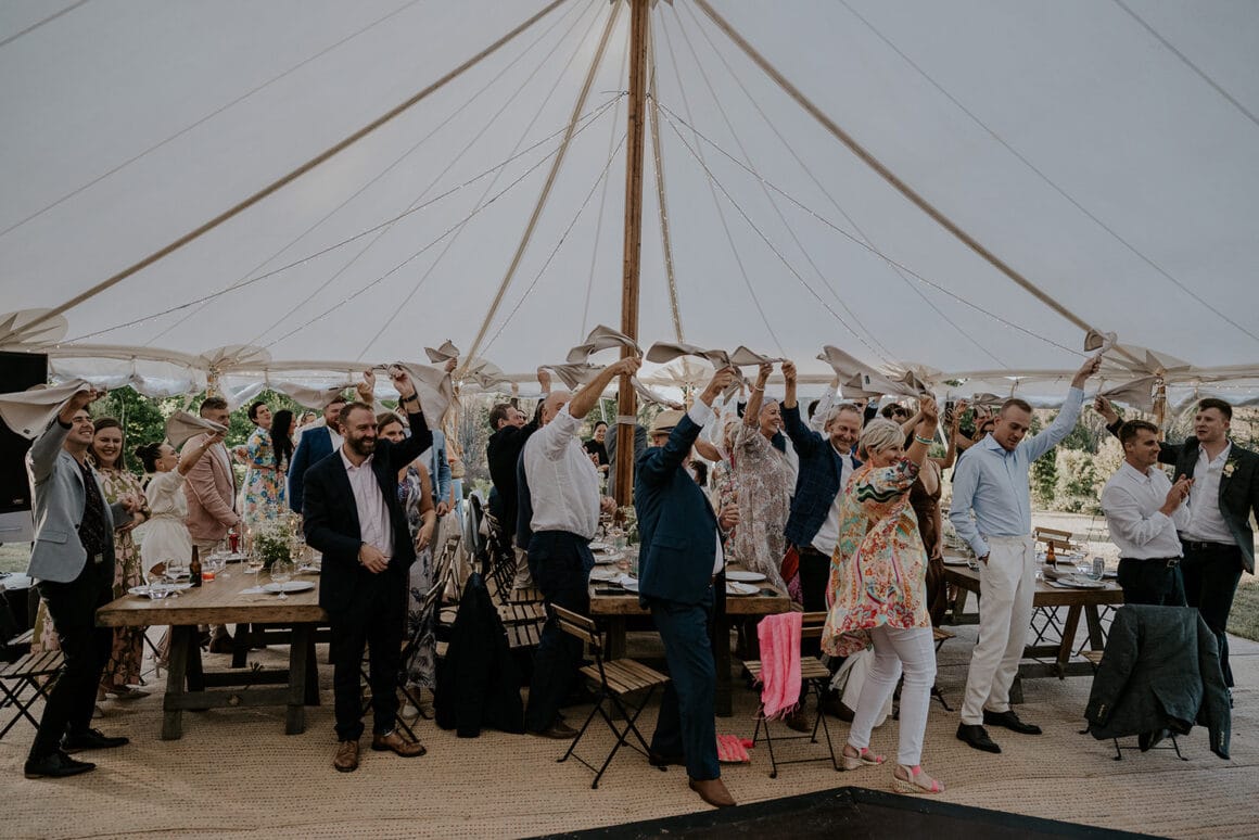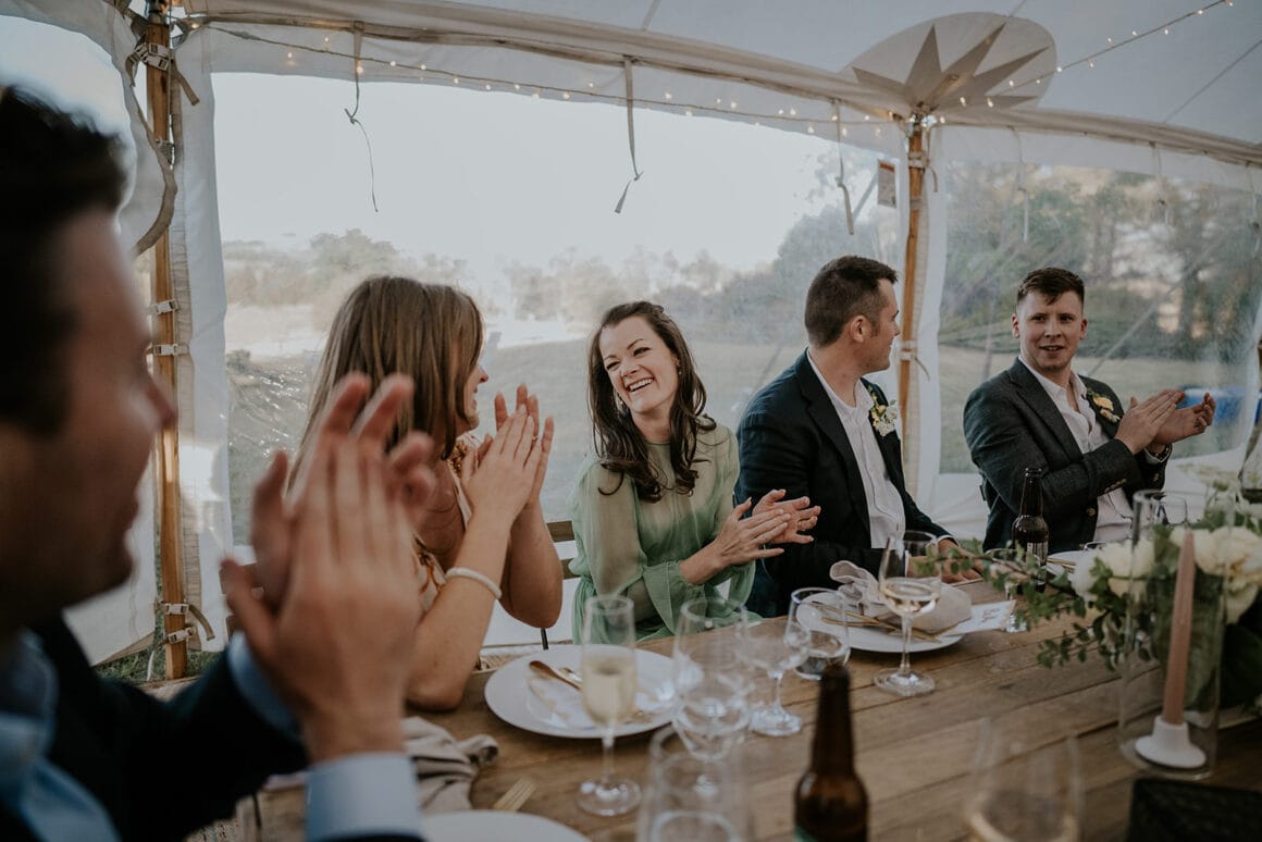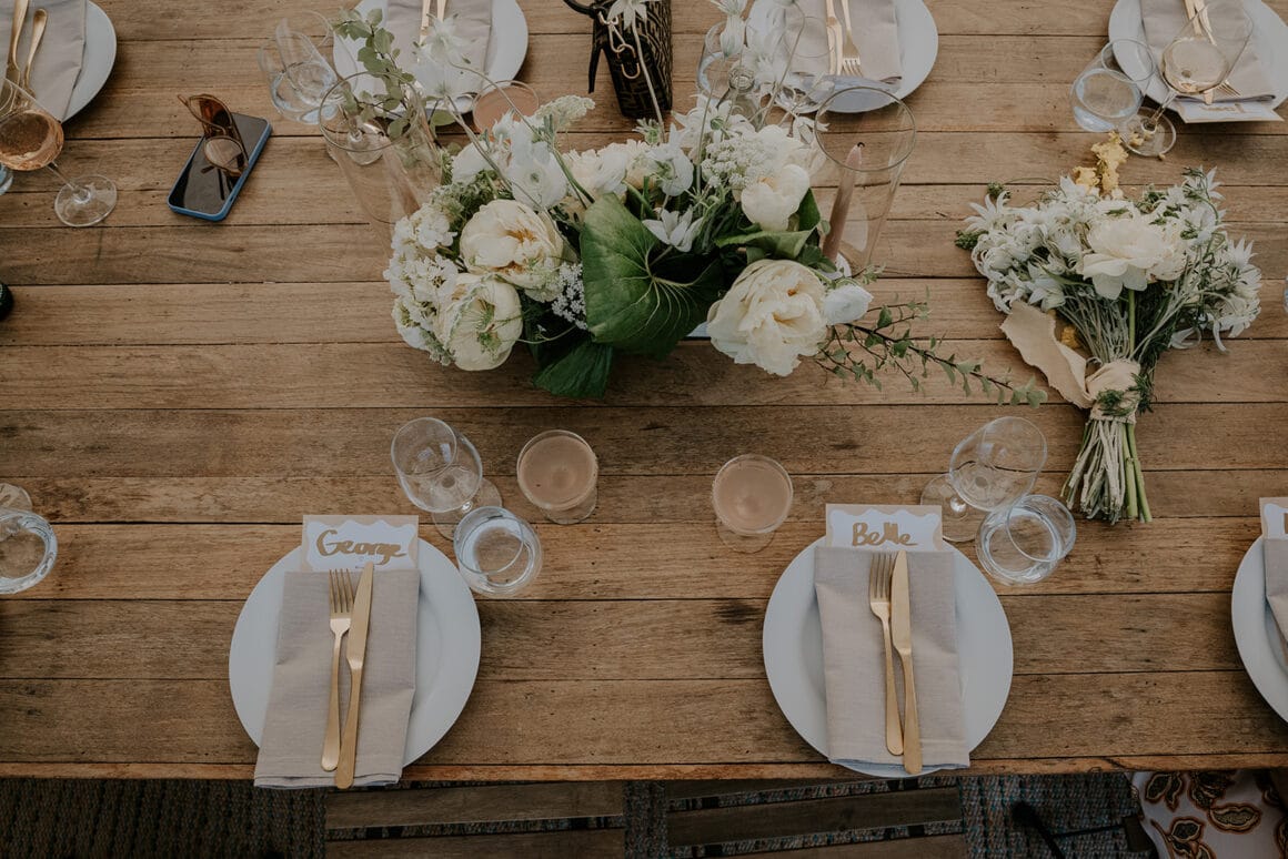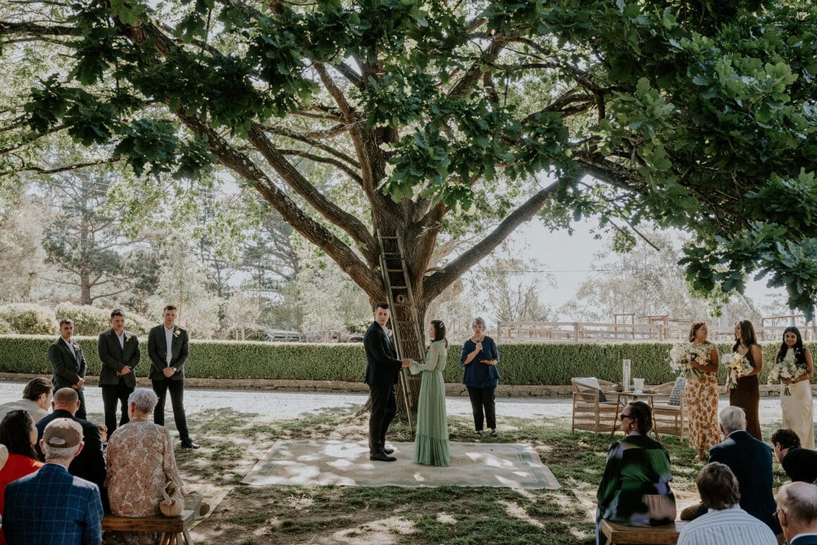 THE VIBE “There was no theme for the wedding, though the garden provided some inspiration for the colours and feeling of the day. Every decision was made together with intention. We were most inspired to have a special celebration for our guests with many close family and friends involved and having roles on the day. The wedding ceremony was held under an English Oak tree in the backyard behind the house. Guests gathered here first and then moved around to the front garden for drinks and jazz before heading into the marquee for dinner, speeches and dancing. We liked that people moved around the property from the afternoon to the evening and didn’t see the tent until it was almost time for dinner – this brought a sense of reveal or staging to the day, which is always my favourite part of a wedding.”