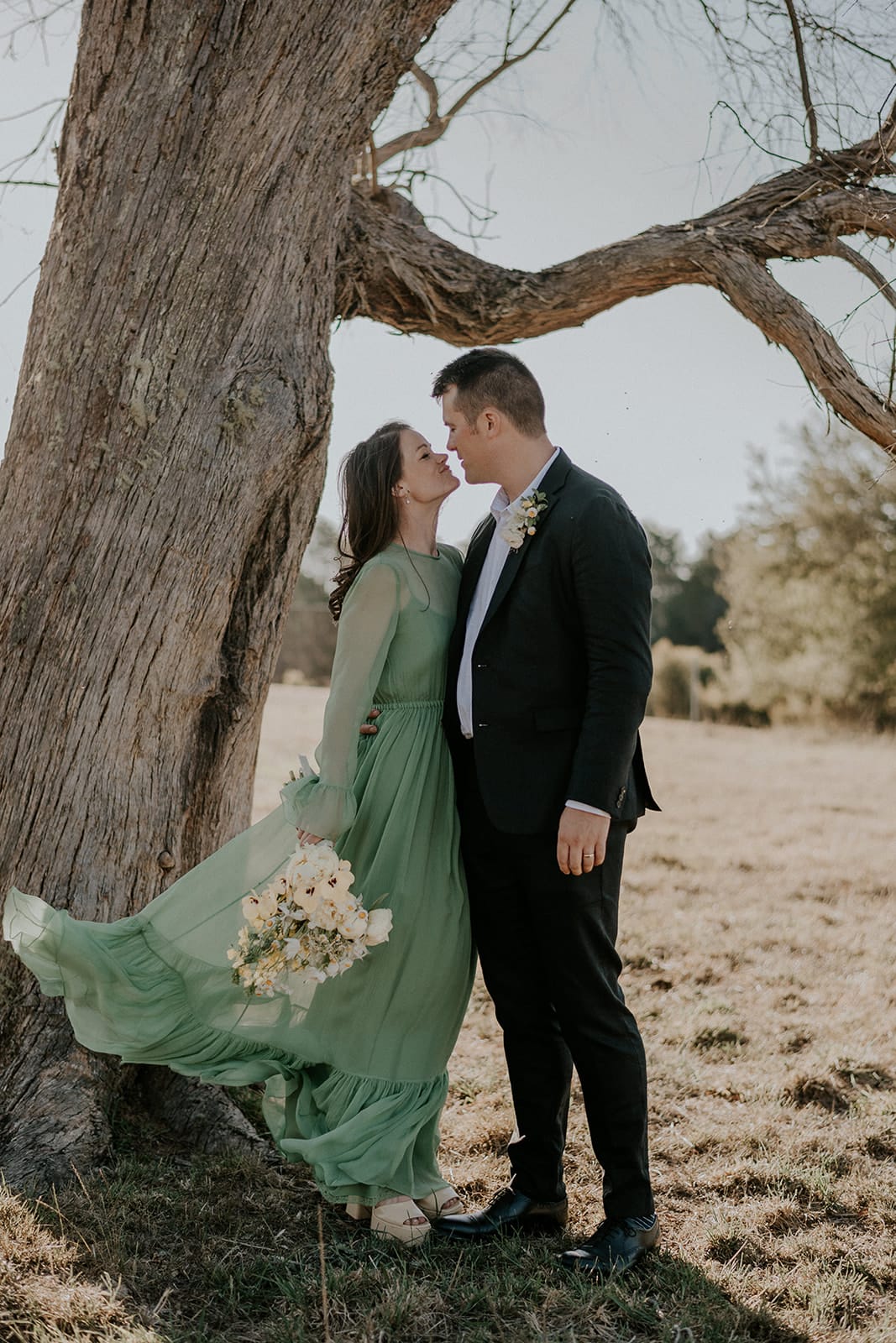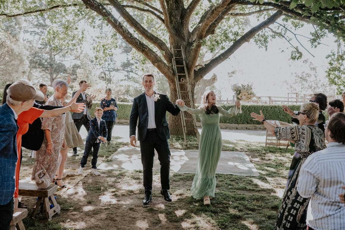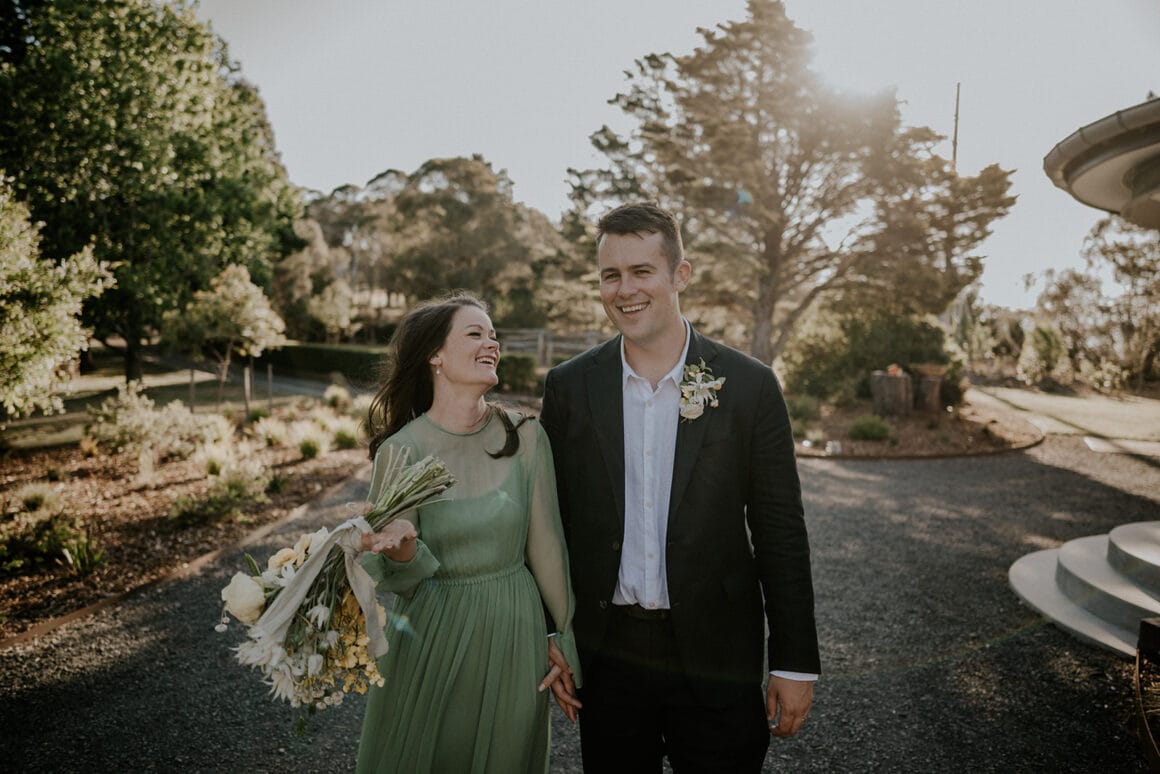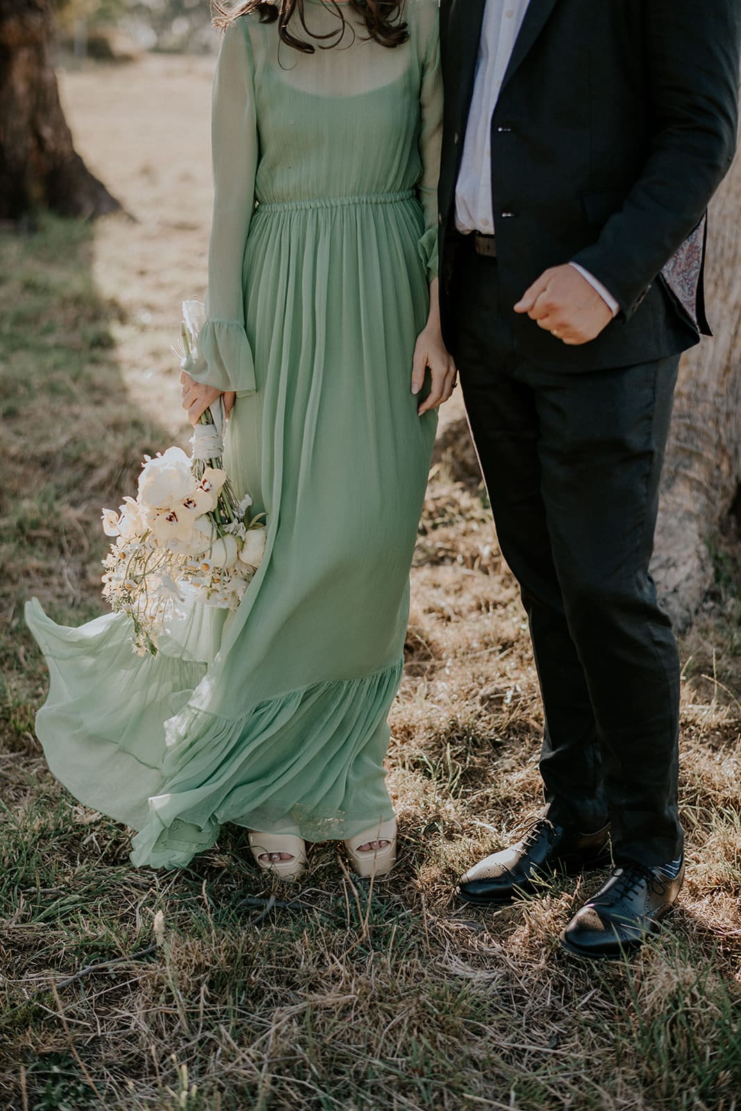 Wholesome garden wedding at home, alert! Belle and George’s is a good one, folks. But this bride and groom admit their vision for the day didn’t start out aligned. Belle (who wore a gorg green Gucci gown) was thinking of something intimate and overseas, whereas George (classy-AF in custom InStitchu) was keen for his UK friends and fam to experience a big Aussie wedding. Both great options! In the end, getting hitched at Belle’s parents’ Southern Highlands home was “the way to go”. The newlyweds told us that the process of co-creating a celebration that reflected elements important to them both brought the pair together and “was an apt way to start our marriage!”