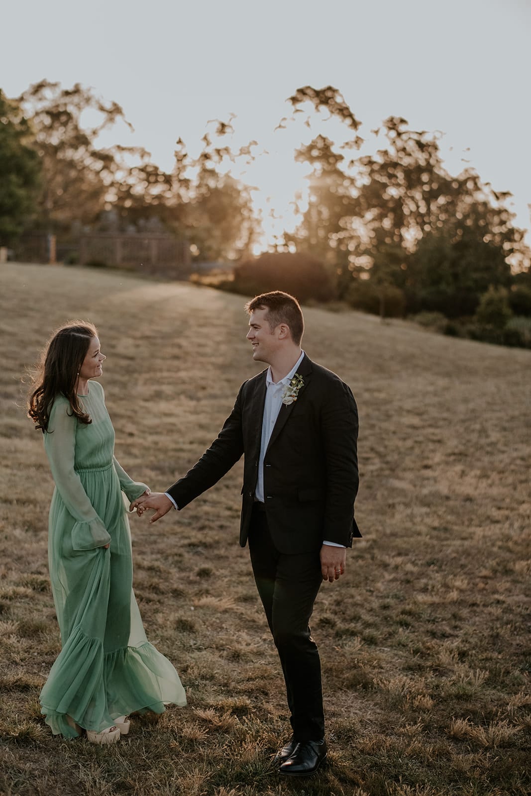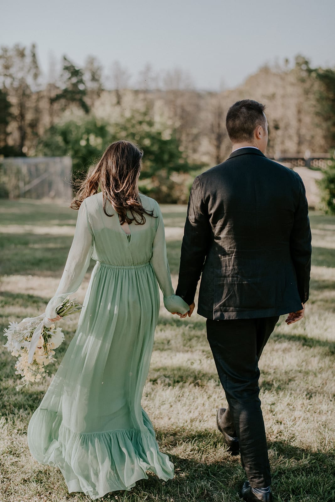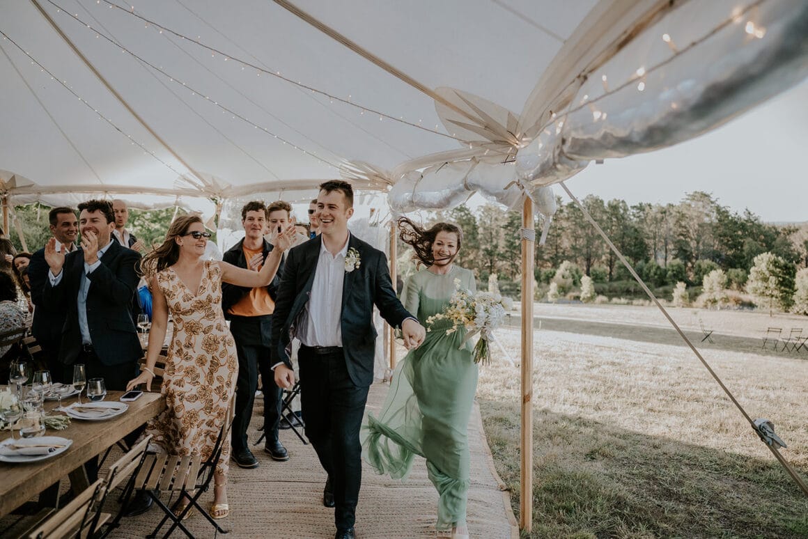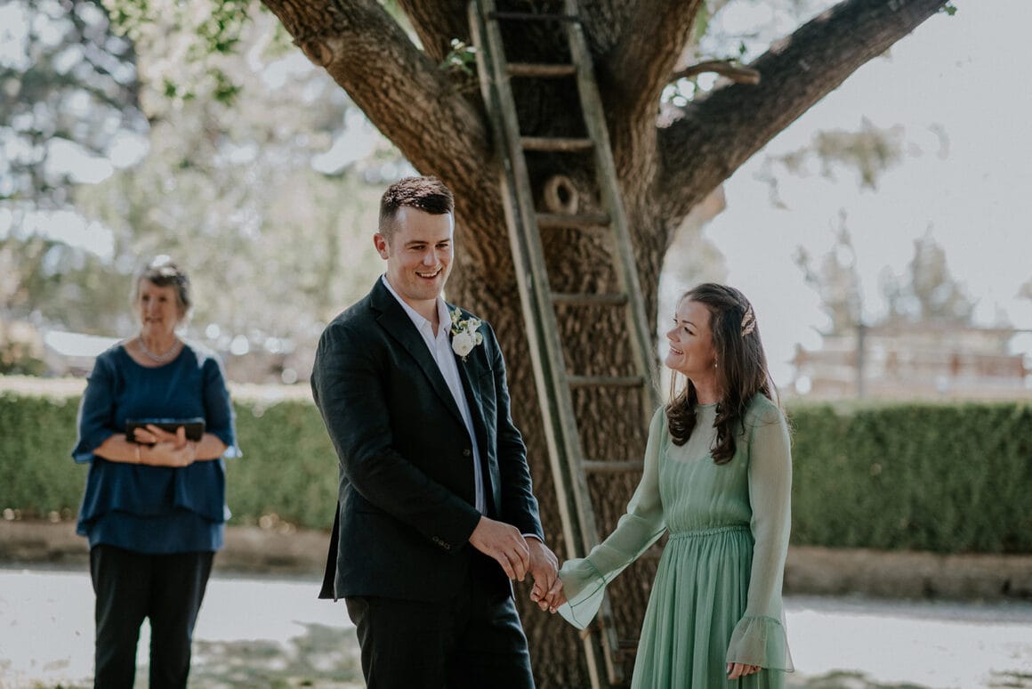 Wholesome garden wedding at home, alert! Belle and George’s is a good one, folks. But this bride and groom admit their vision for the day didn’t start out aligned. Belle (who wore a gorg green Gucci gown) was thinking of something intimate and overseas, whereas George (classy-AF in custom InStitchu) was keen for his UK friends and fam to experience a big Aussie wedding. Both great options! In the end, getting hitched at Belle’s parents’ Southern Highlands home was “the way to go”. The newlyweds told us that the process of co-creating a celebration that reflected elements important to them both brought the pair together and “was an apt way to start our marriage!”