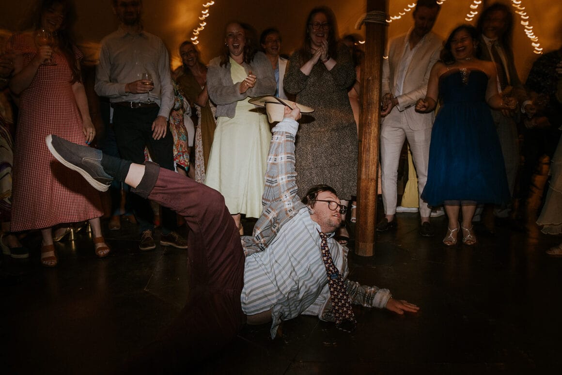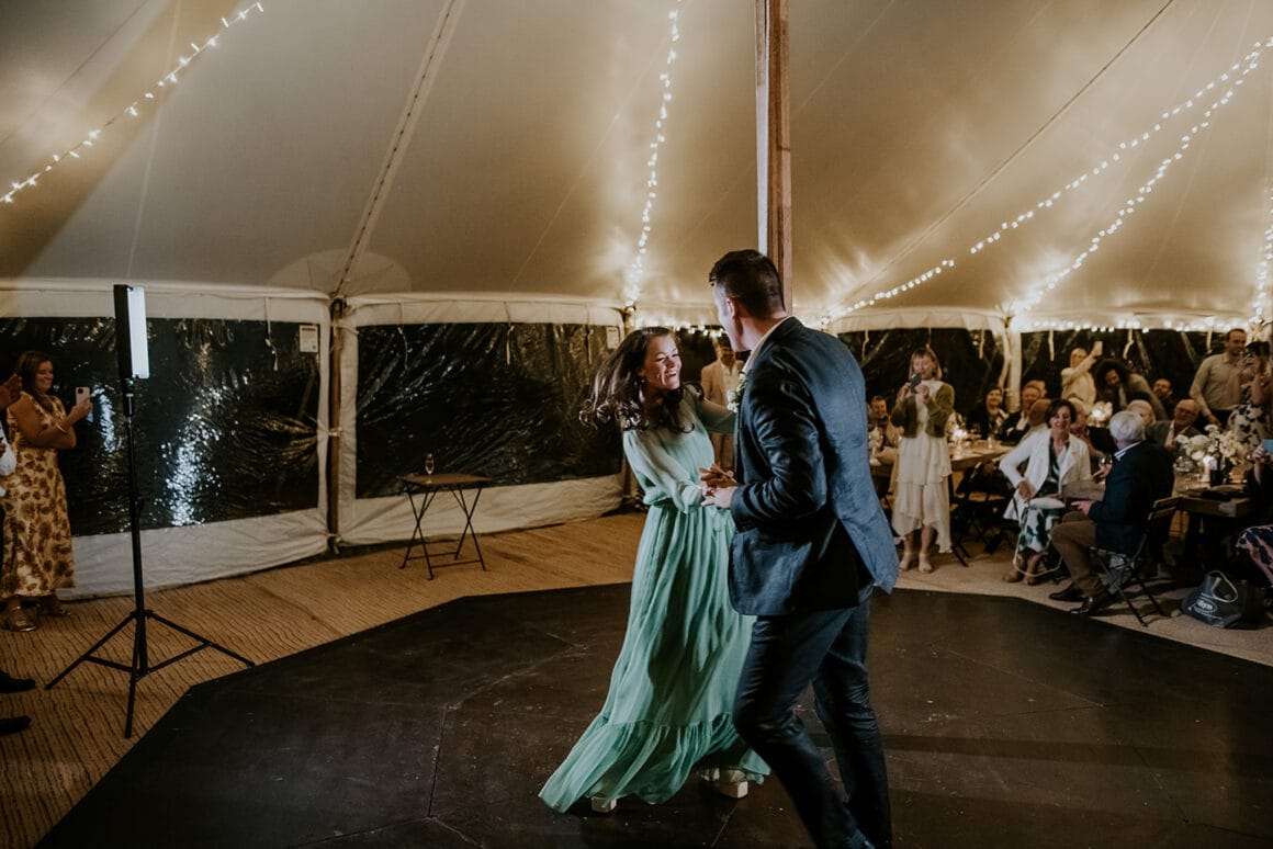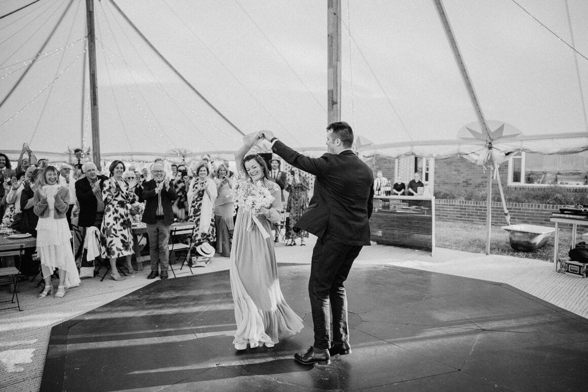 FAVE DETAILS “Belle’s Dad drew a sketch of the house and garden for our wedding booklet, Belle organised a surprise performance, which was an acoustic version of ‘Summer Rain’ by Belinda Carlisle sung by our friends Peter and Steph with guitar by Belle’s brother Paddy. [Also], the dance floor. One of Belle’s brothers’ friends, Tim, was the DJ. There was non-stop dancing from when it started until the end of the night.”