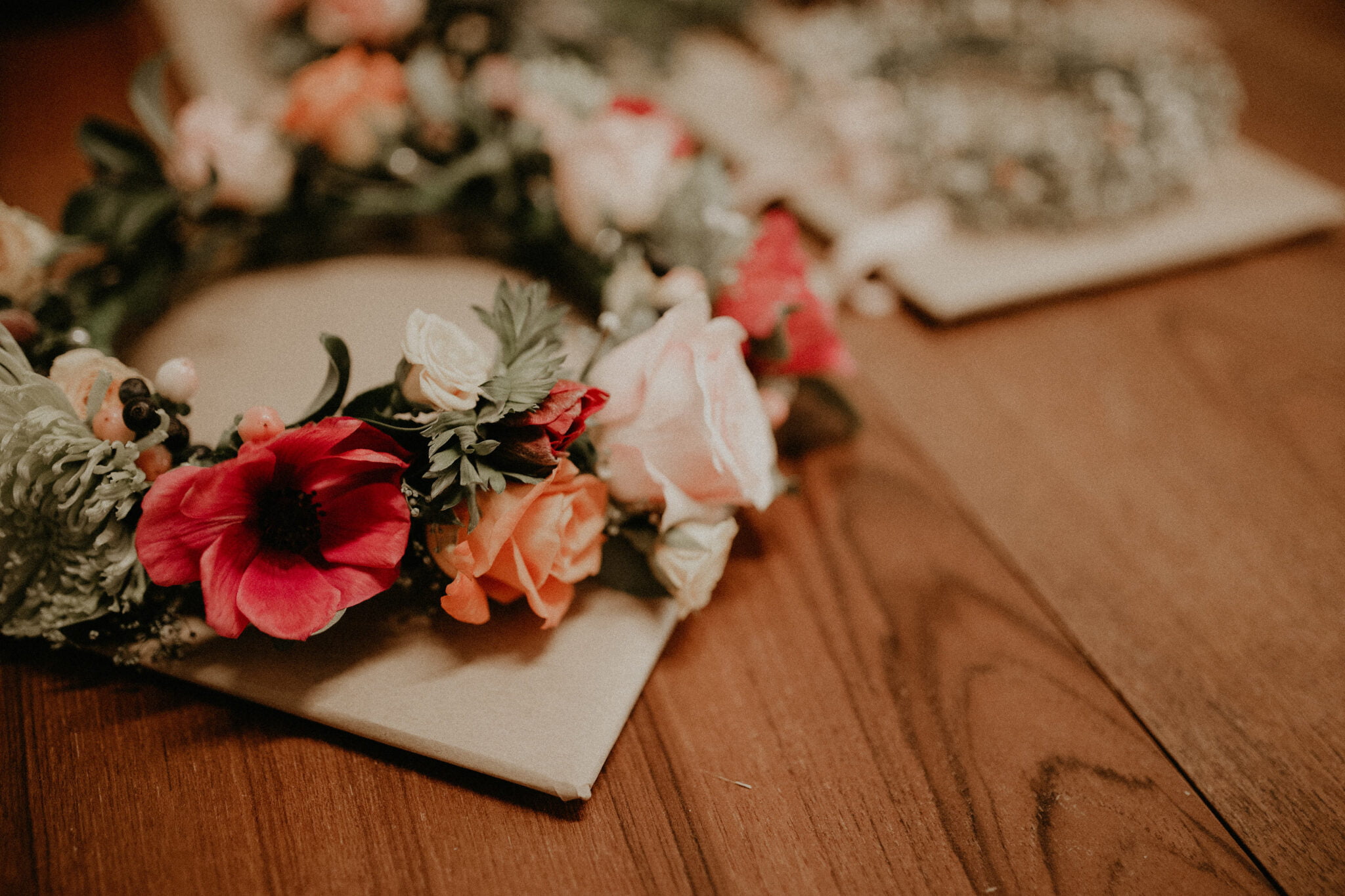FAVOURITE DETAILS “Our favourite details were definitely the magical flower crown creations that we both wore and the Viking style cloak that I made for Cam. The cake was also a highlight! It was a 3 tiered chocolate vegan cake that my beautiful sister Amber made for us.”