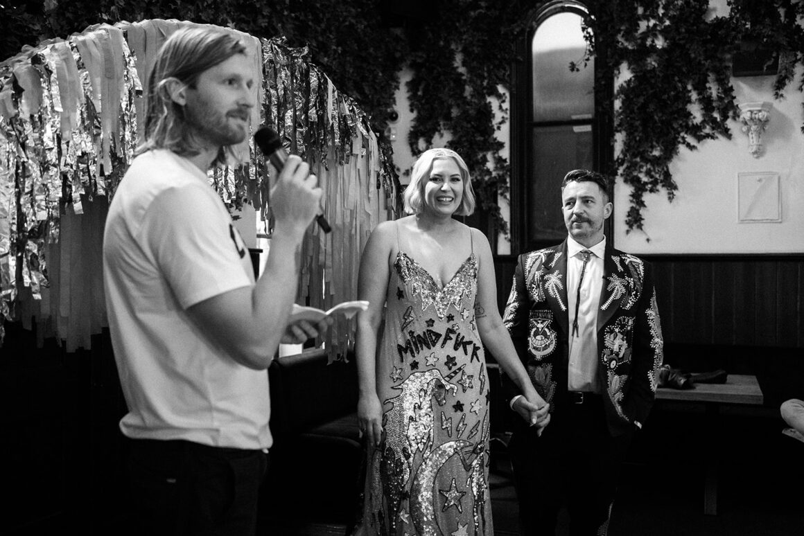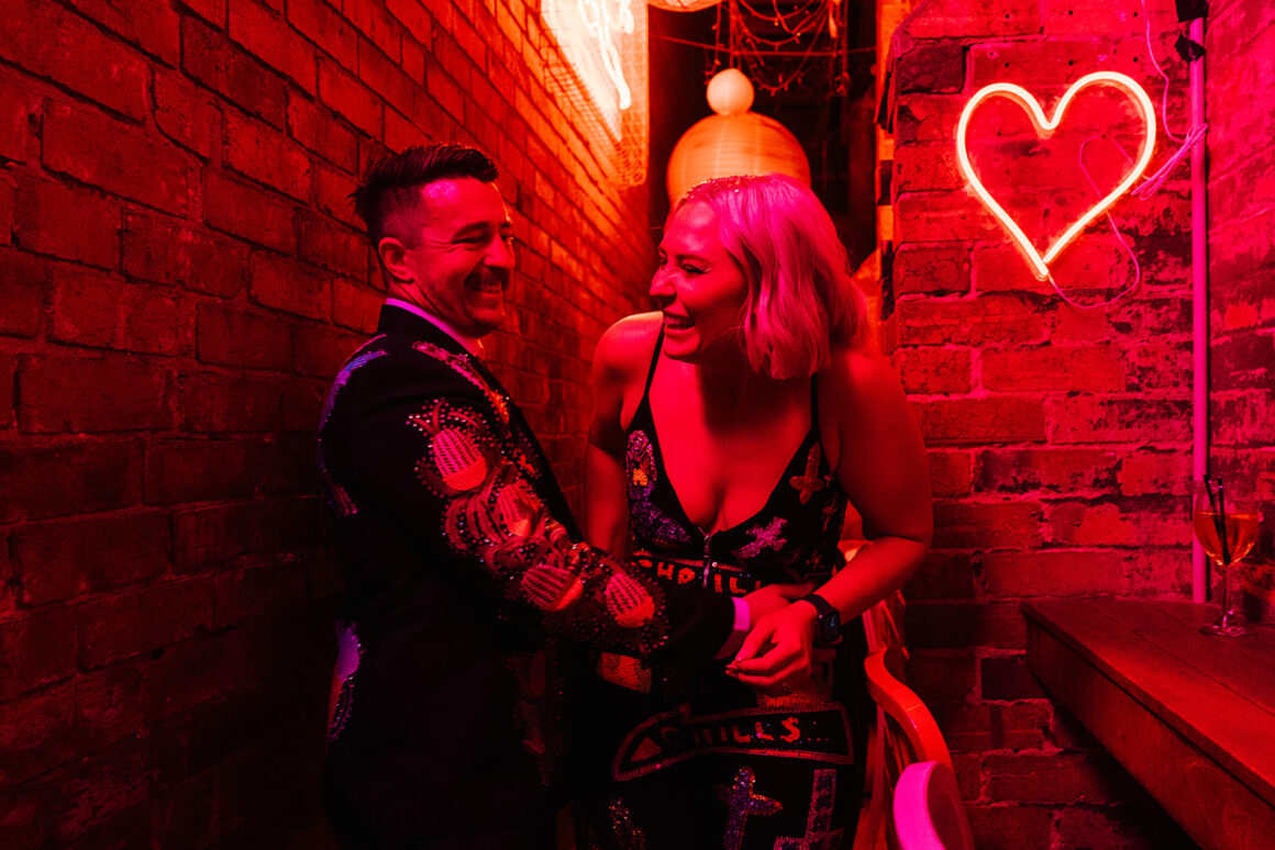 Read on for the newlywed’s advice, their favourite details, and enough sequins to bedazzle the whole of Brunswick.