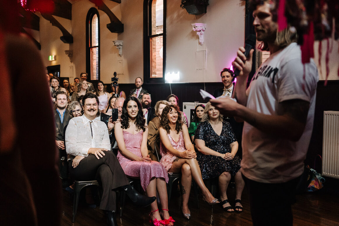 Browsing past wedding pics taken at the venue, the couple stumbled upon their photographer, Dee from Finder Seeker, who captured the party impeccably. “[I] immediately vibed and contacted her,” shares the bride. Keeping things local, they also chose Melbourne’s Corky Saint Clair for their wedding rings – great call.
