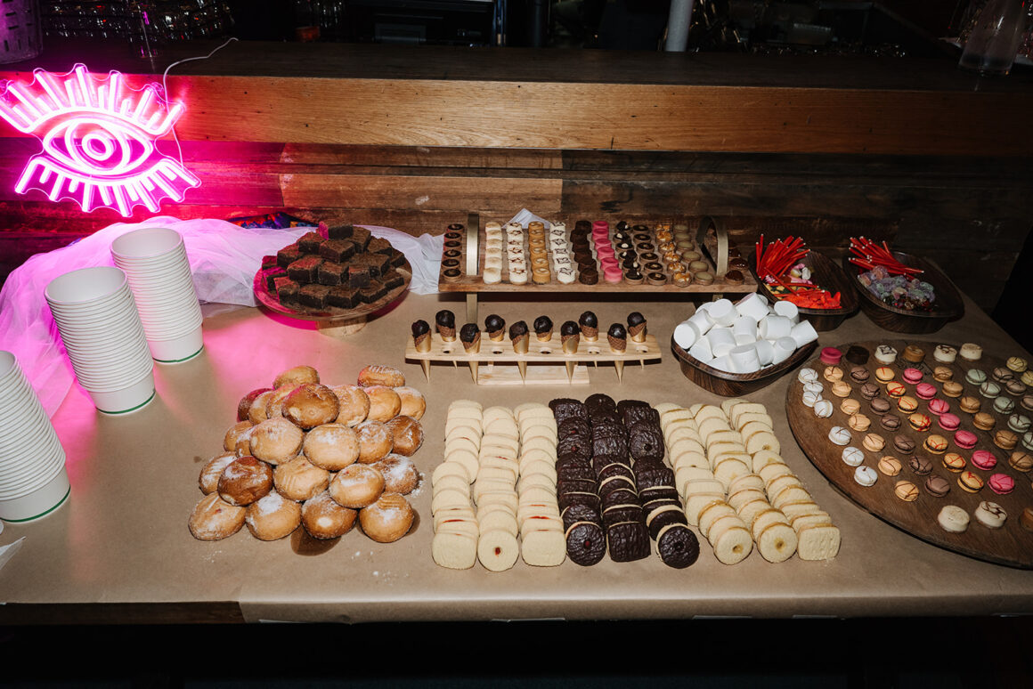 “The styling and details for the day were quite minimal as The venue was already pretty perfect. I got Banging Hangins to come in to add a sparkly touch and bought a couple of neon signs to hang around the venue. And that was it! My favourite detail was the Off The Hook audio guest book where guests were able to leave a message. It was the absolute best listening to all the lovely (and funny) messages a few weeks later when you got the post wedding blues.”