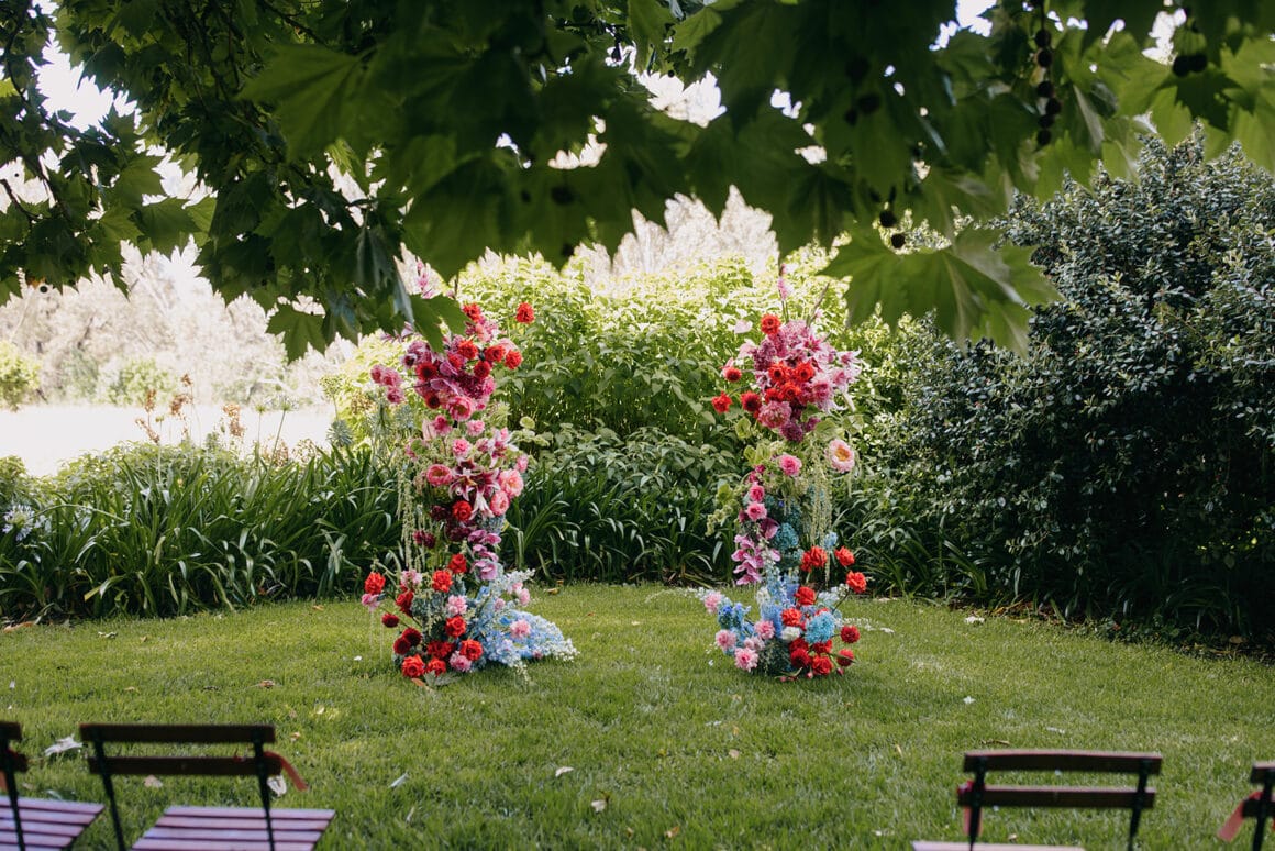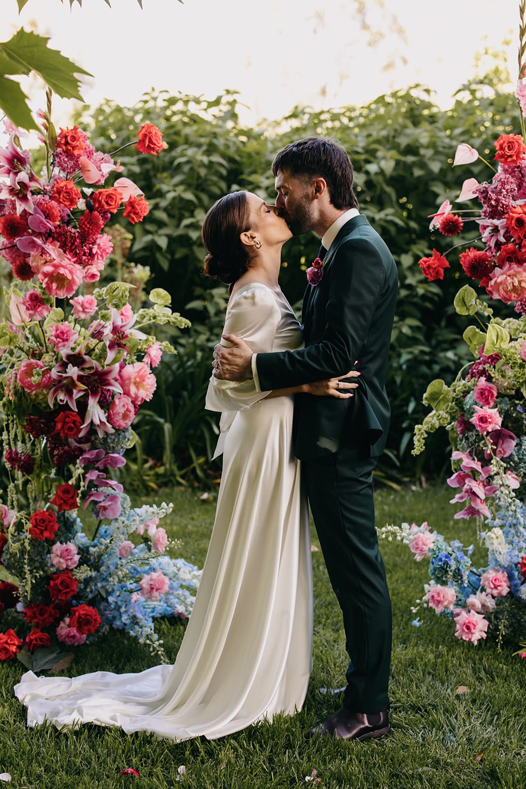 Take it from Taylor and Declan – “Don’t lose sleep stressing about the weather, and always have a contingency plan.” You see, you’d never guess it by looking at their colourful summer wedding album (by Kyra Boyer Photography, btw), but just 40 minutes before the duo were due to say ‘I do’, a HUGE hail storm made a surprise appearance, setting off a “scramble” to get all the elements of their outdoor ceremony undercover. “Because of the severity of the hail and wind, everything still got soaked,” the newlyweds explain, “but after the 10-minute storm, the sun came back out and you never would have known. It was beautiful and we still had the wedding of our dreams outside at Euroa Butter Factory!”