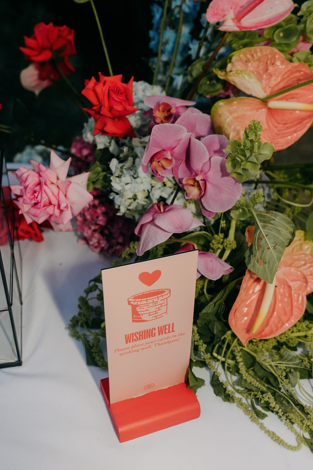 DIY “Since Declan is a graphic/digital designer by trade, he did all the stationery and [we] managed the printing ourselves. Whilst it was Dec who was on the tools, he was definitely heavily art directed by me – don’t think he would have come up with the pink and red colour palette without encouragement!!”