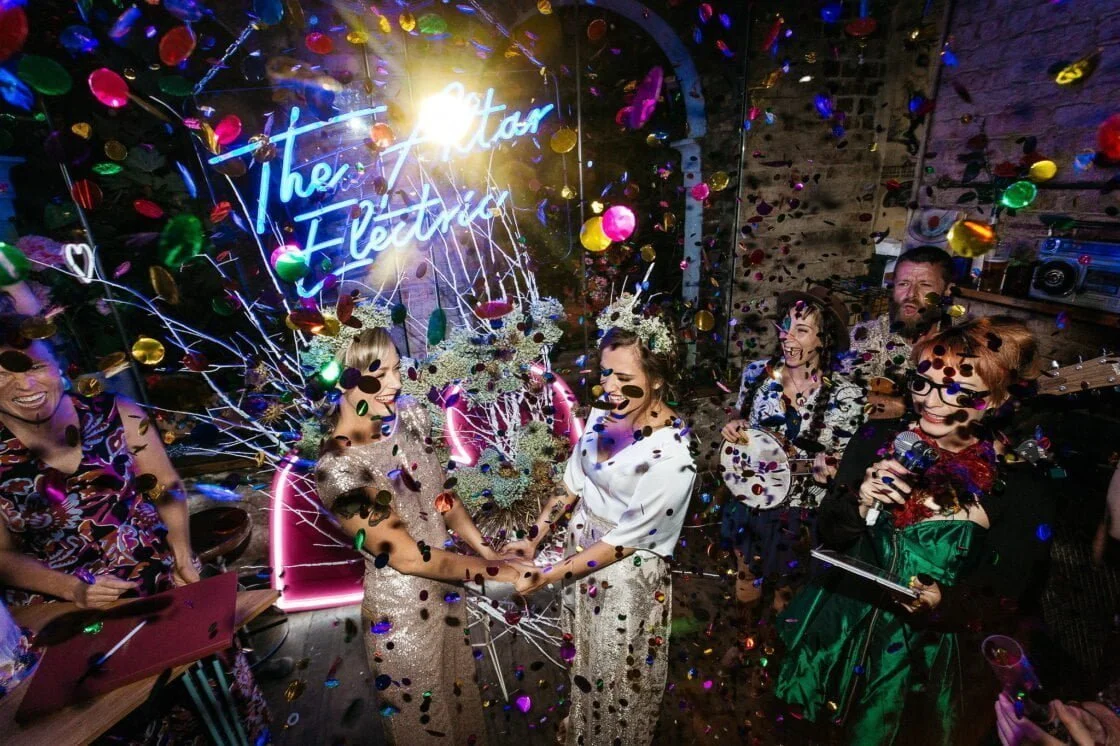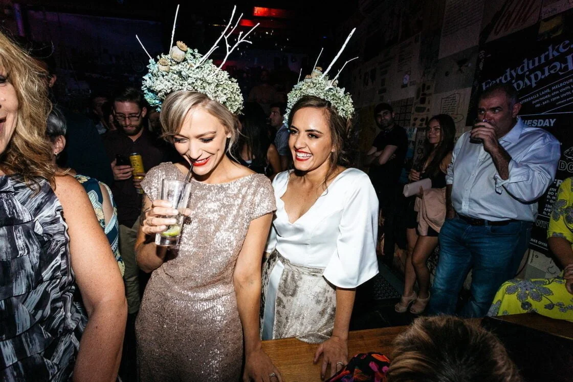 MEMORABLE MOMENT Dee made a very powerful speech about the LGBTQ community’s fight for equality and how deserving this moment in history was. Everyone was cheering during particularly powerful statements and so many of our friends and family were crying during that moment. Then we all counted down from 10 to the stroke of midnight and the confetti canons went off and Dee read the legals of the ceremony and said “marriage in Australia is between two people” and again, everyone was cheering and crying – the overwhelming feeling of pure joy was incredible. This was a celebration for not just us, but for our entire community. It was an acknowledgement of the years and years of tireless work from LGBTQ people and our allies. And it was all topped off when we all sung along to Fidel and Sarah playing ‘I Fought the Law’, but we changed the lyrics to ‘I fought the law and I won’.