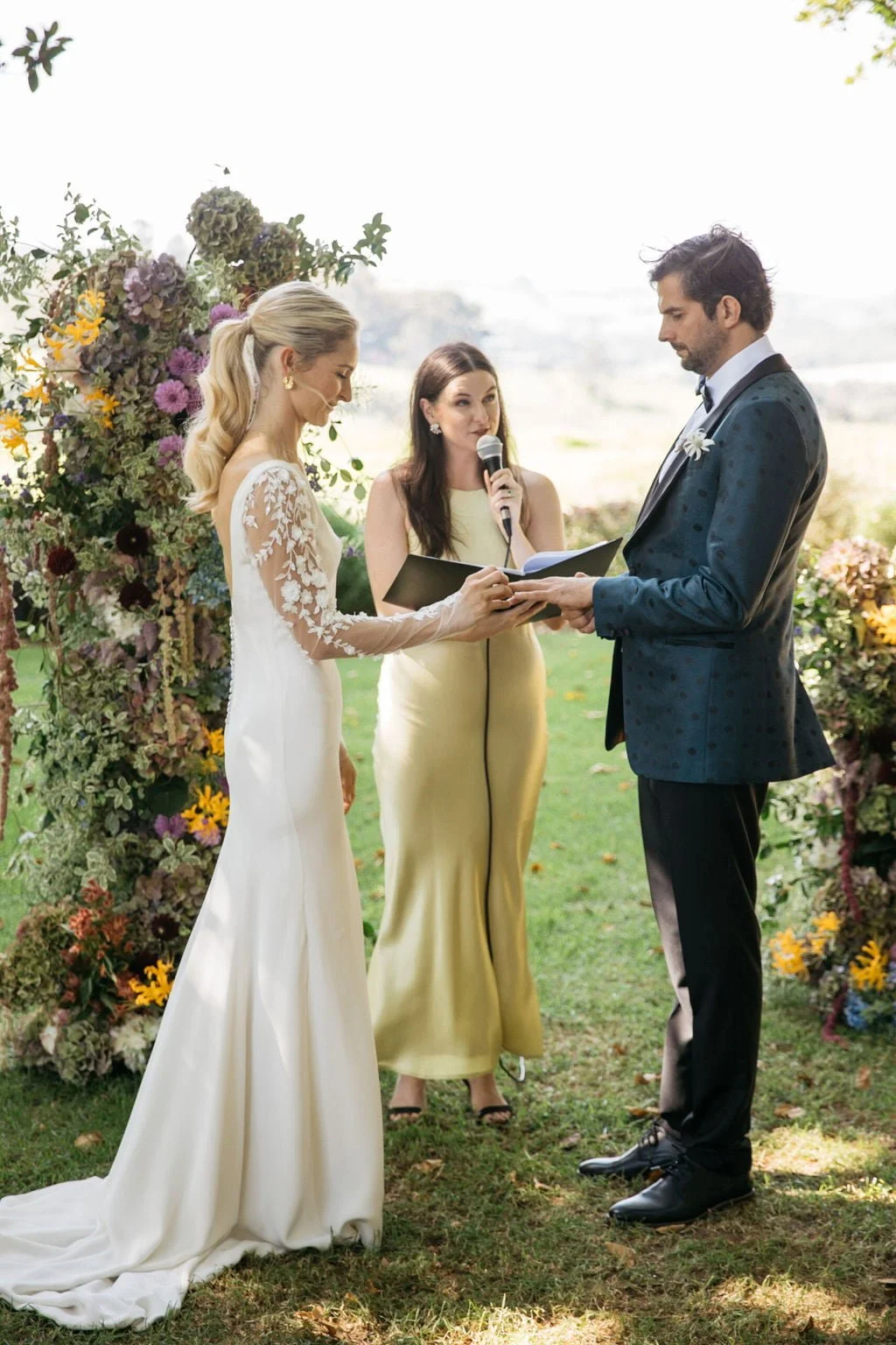 CONTRIBUTING VENDORS Photographer Maple and June Ceremony & reception venue Greyleigh, Kiama Stationery & signage Villa Studio, Bohemian Lane Catering Garnish Creative Catering Bar service Henry CliveFlorist Fritillerie Entertainment The White Tree Transport Kiama Coaches Rings AE Design, Sarah and Sebastian THE BRIDE Bridal gown designer Helen English Bridal Hair & Makeup The Future Mrs, Salon Naydene THE GROOM Suit Rochefort