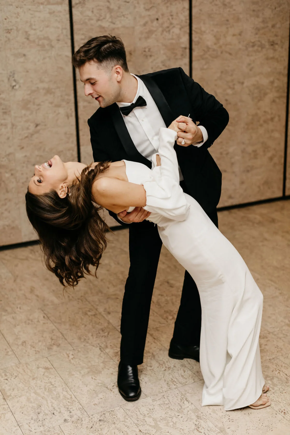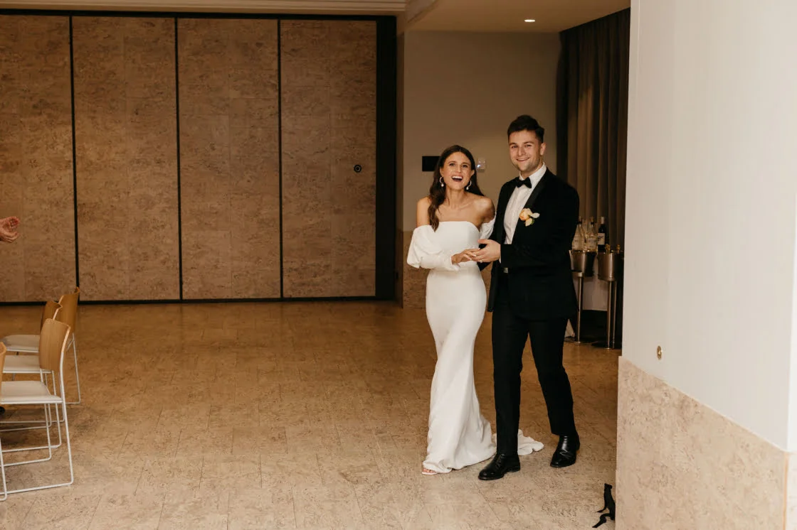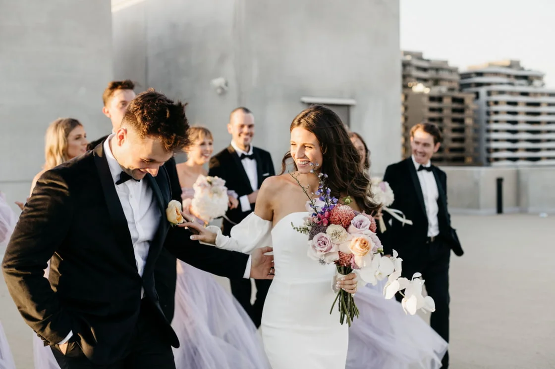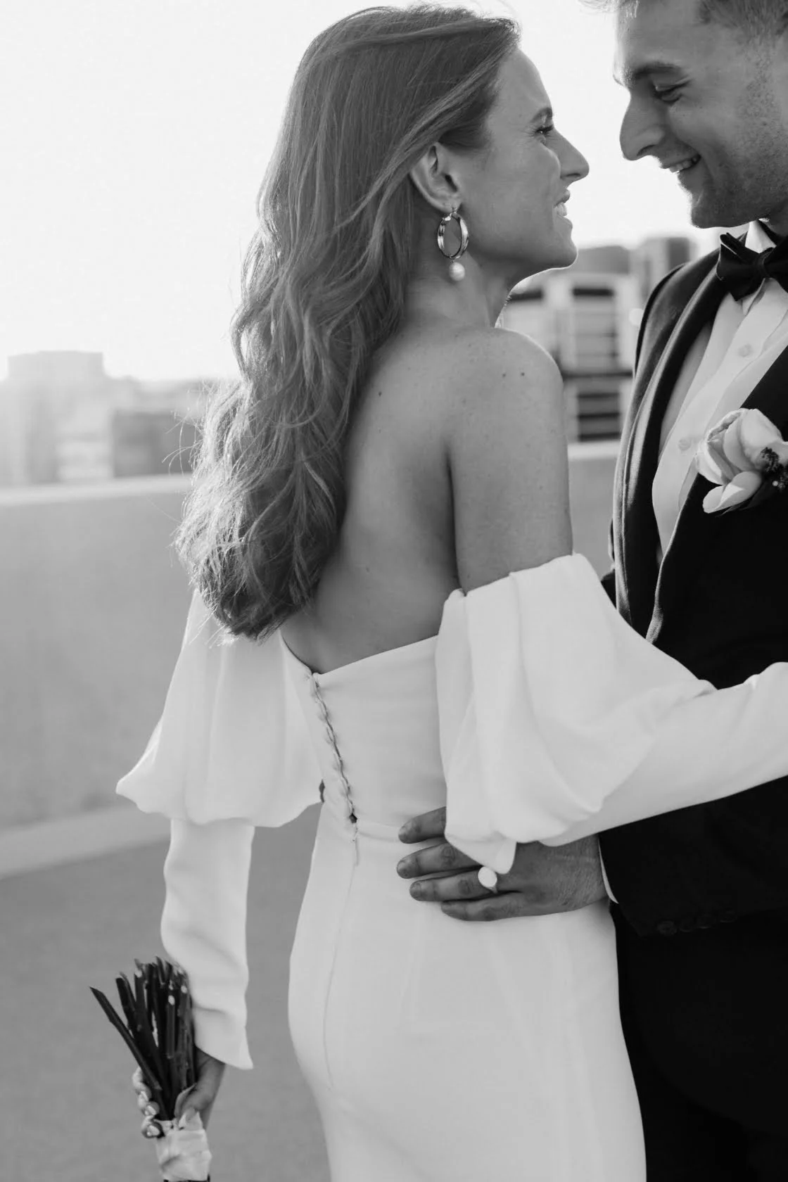 These two got married twice. They eloped during COVID (“it turned into a viral Tik Tok reaching 500k views, then got picked up by Daily Mail Australia and the rest of the world,” says the bride) but the one we are bringing you today is this urban delight, six months later. The stunning Prea James Bridal gown was bought from one of our go-to QLD bridal boutiques, Sphere Bridal Gallery and the pics are by the talented photographer/ videographer Milk and Honey Creative. Scroll down for more…