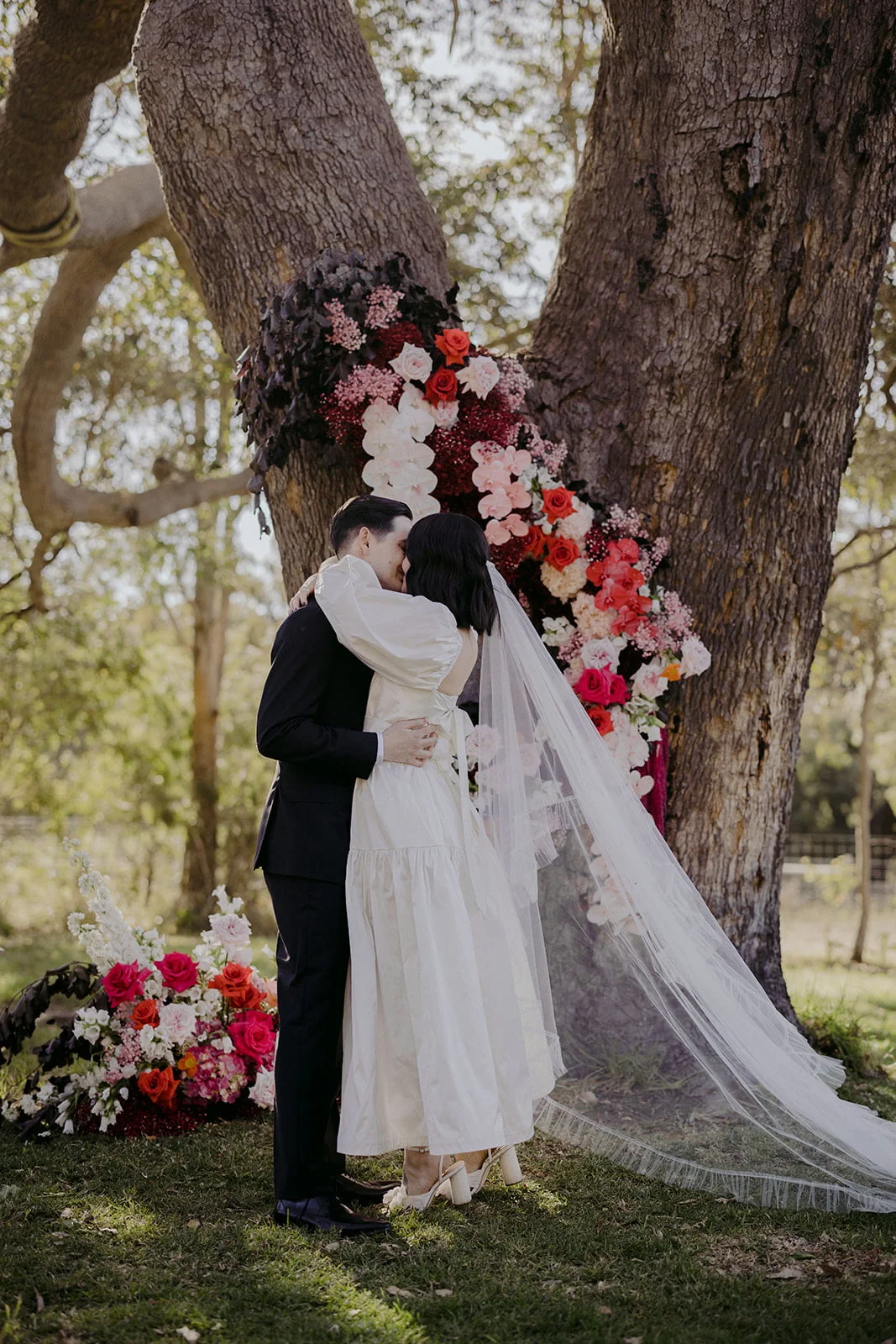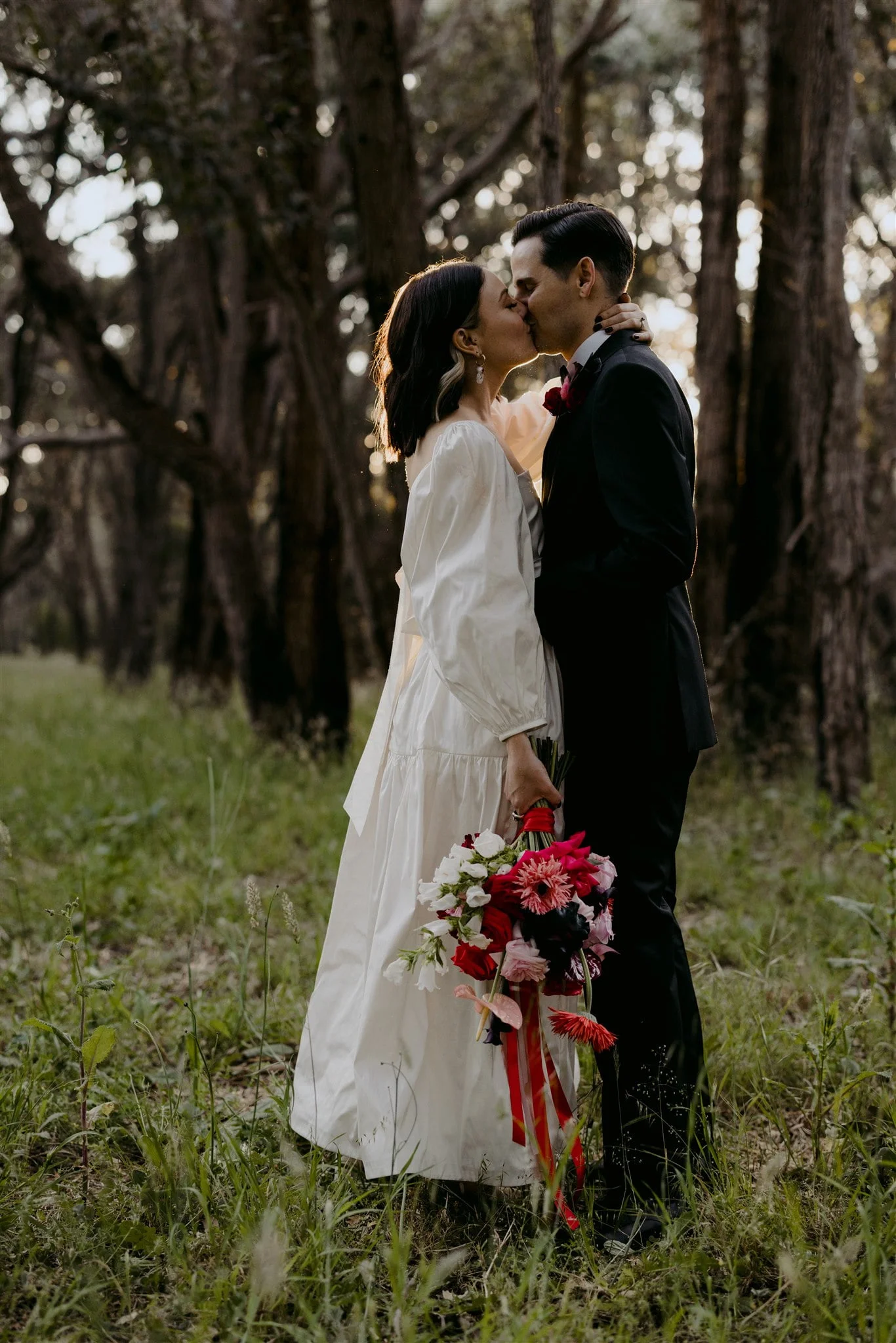 FAVE DETAILS “Our florals (!!!) by Eden at Freakhaus and styling by Jess and her team at Bertie Does. I’d followed Eden for a few years on socials and fell in love her strong vibe, so I had complete trust in her. On the day we had so many lovely comments about our flowers and our dreamy tree-scape! Jess was a dream to work with and answered every silly question we had with a personable, professional approach, and was a curative genius on the day. The best decision we made six months into planning it on our own was to get a planner and if it is within your budget, it is definitely worth it.”