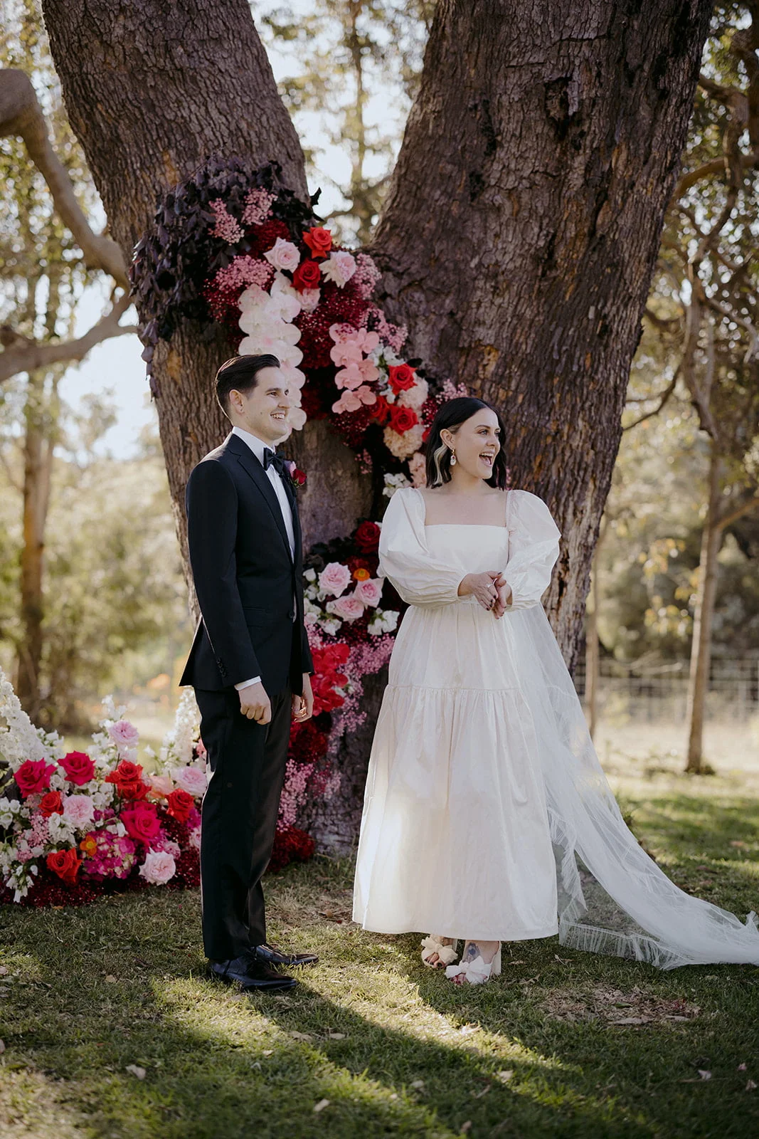 Every Thursday we throw it back to one of our favourite weddings from the print archives, so we can share the love online, too. Today, we have Genevieve and Kyle’s gorg Perth wedding, which appeared in issue 38 (you can shop your copy here). “Pink, red and peach tones mixed with whimsical, bold, unique and modern flavours” was the inspo for this stunner of a day, shot by Flossy Photo. “Floss was killer, and made the world’s most awkward feel at ease and captured really natural moments from the day, effortlessly,” says the couple. Scroll on to see the beautiful photos…