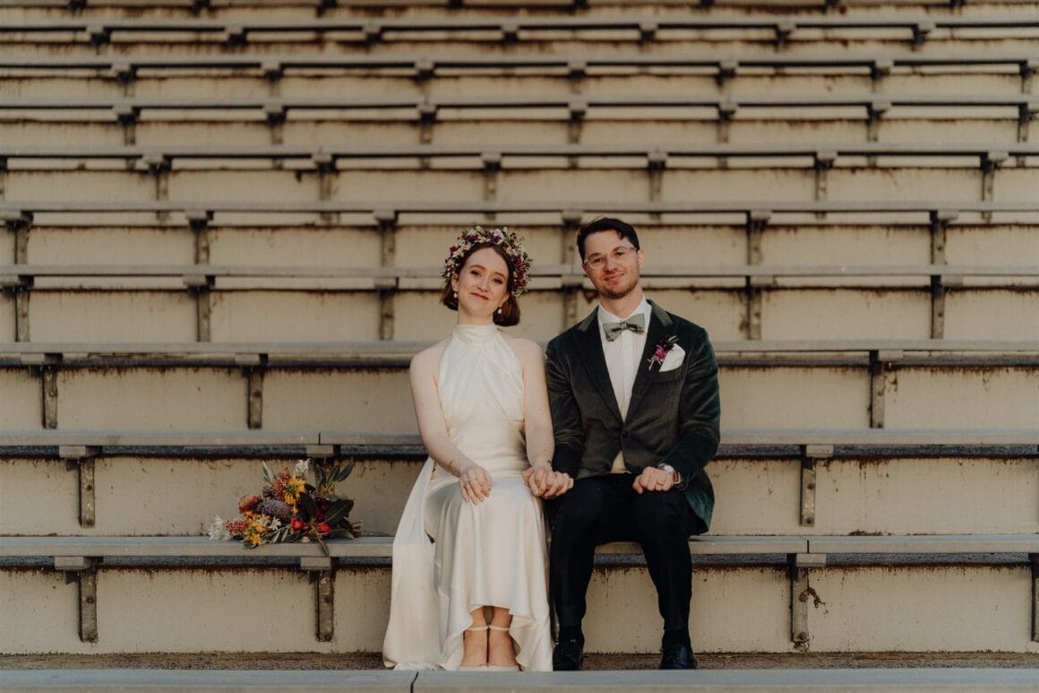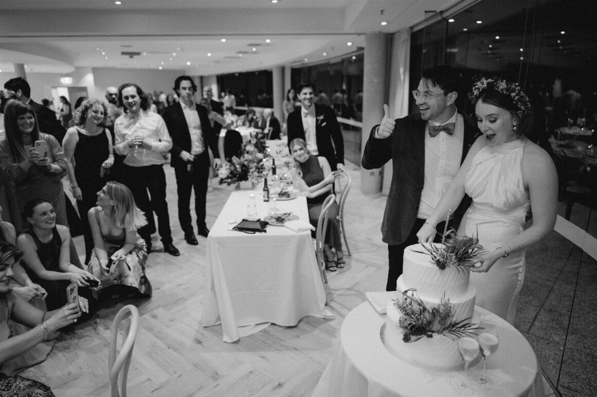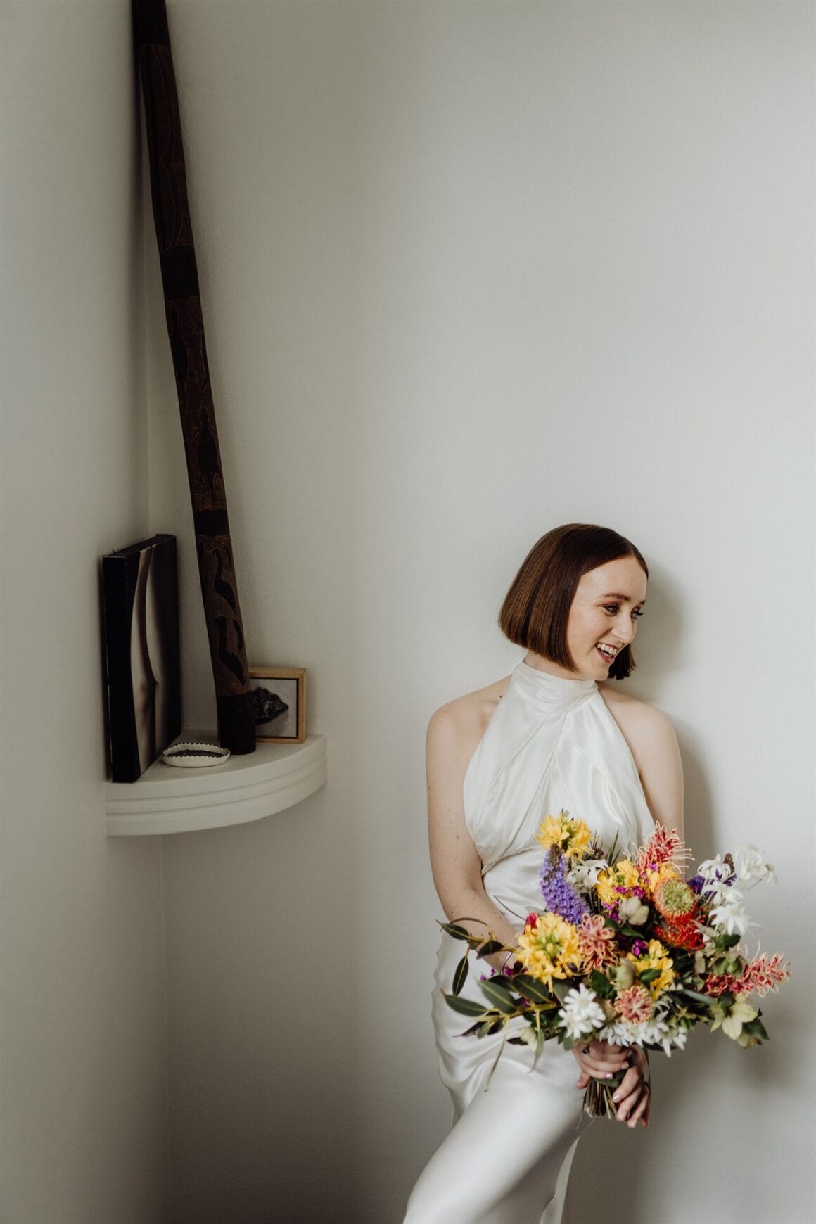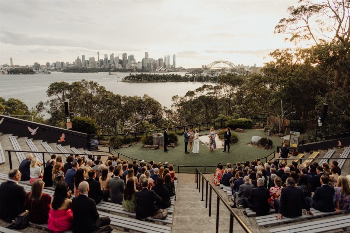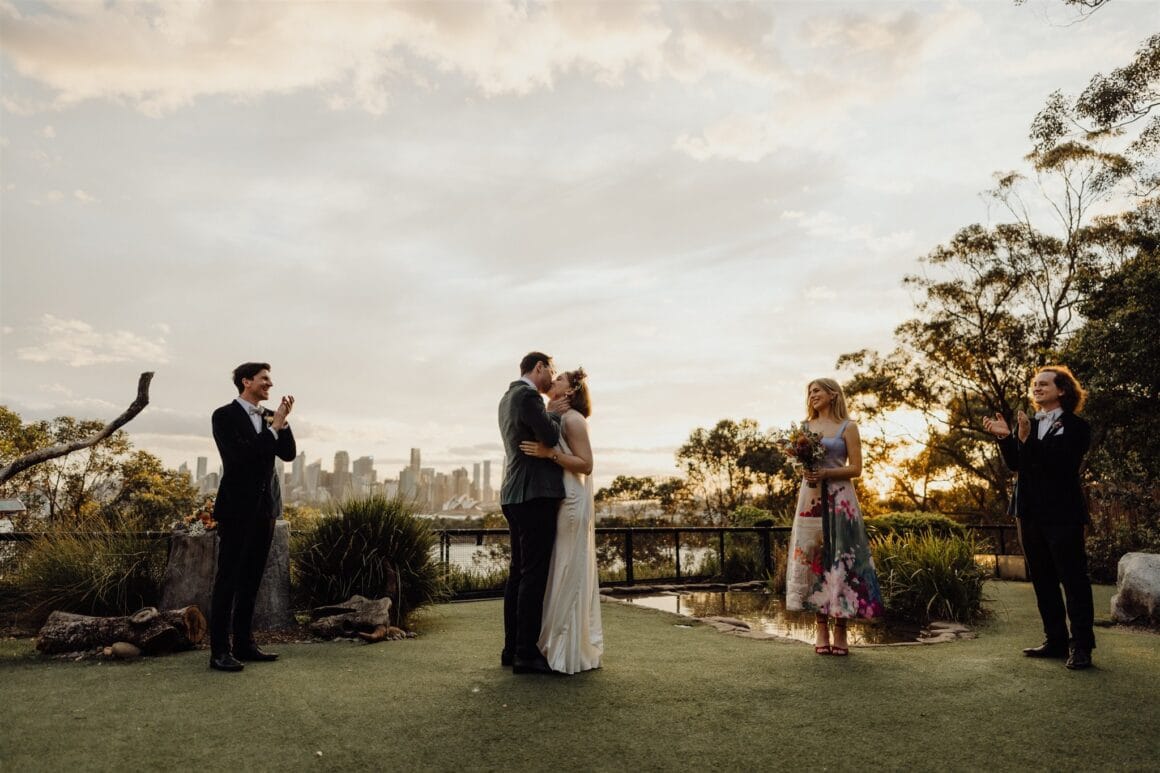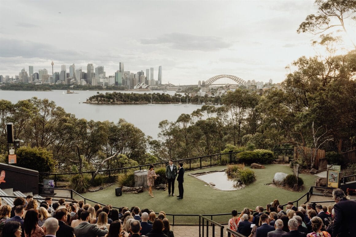 MEMORABLE MOMENT “We had a first look and three or so hours of photos in Bradley’s Head and the zoo with our bridal party (our siblings), which was super fun, and felt very personal and special. It was so nice to have time together in the day, which was otherwise a bit manic, and walking through the zoo in our formal wear was very entertaining. The highlight was definitely our ceremony, though. There was a perfect sunset, and the atmosphere was just magic. We were both in tears almost immediately, and it was incredibly moving.”